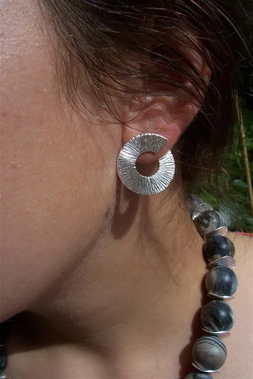 Achat-Kugel Collier mit Silberzwischenteilen und Doppelkreis-Schließe, Ohrring Silber