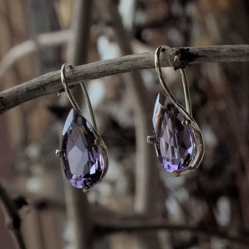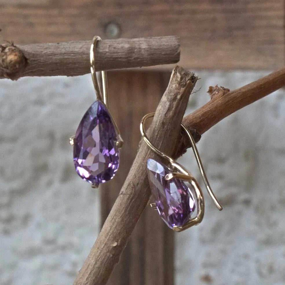 Ohrhänger Gelbgold mit tropfenförmigem Amethyst