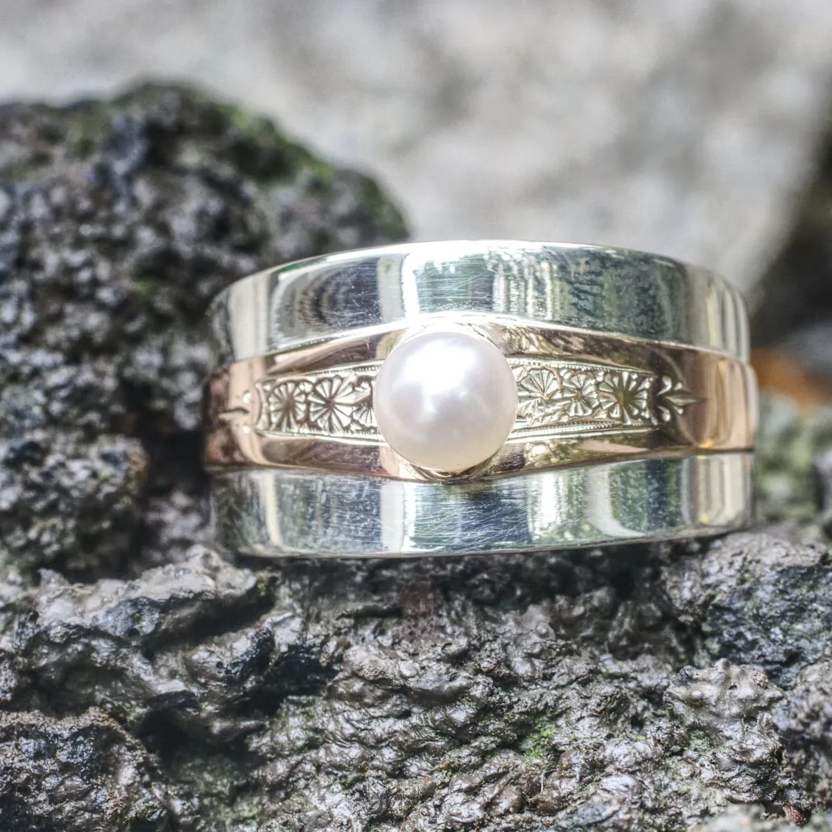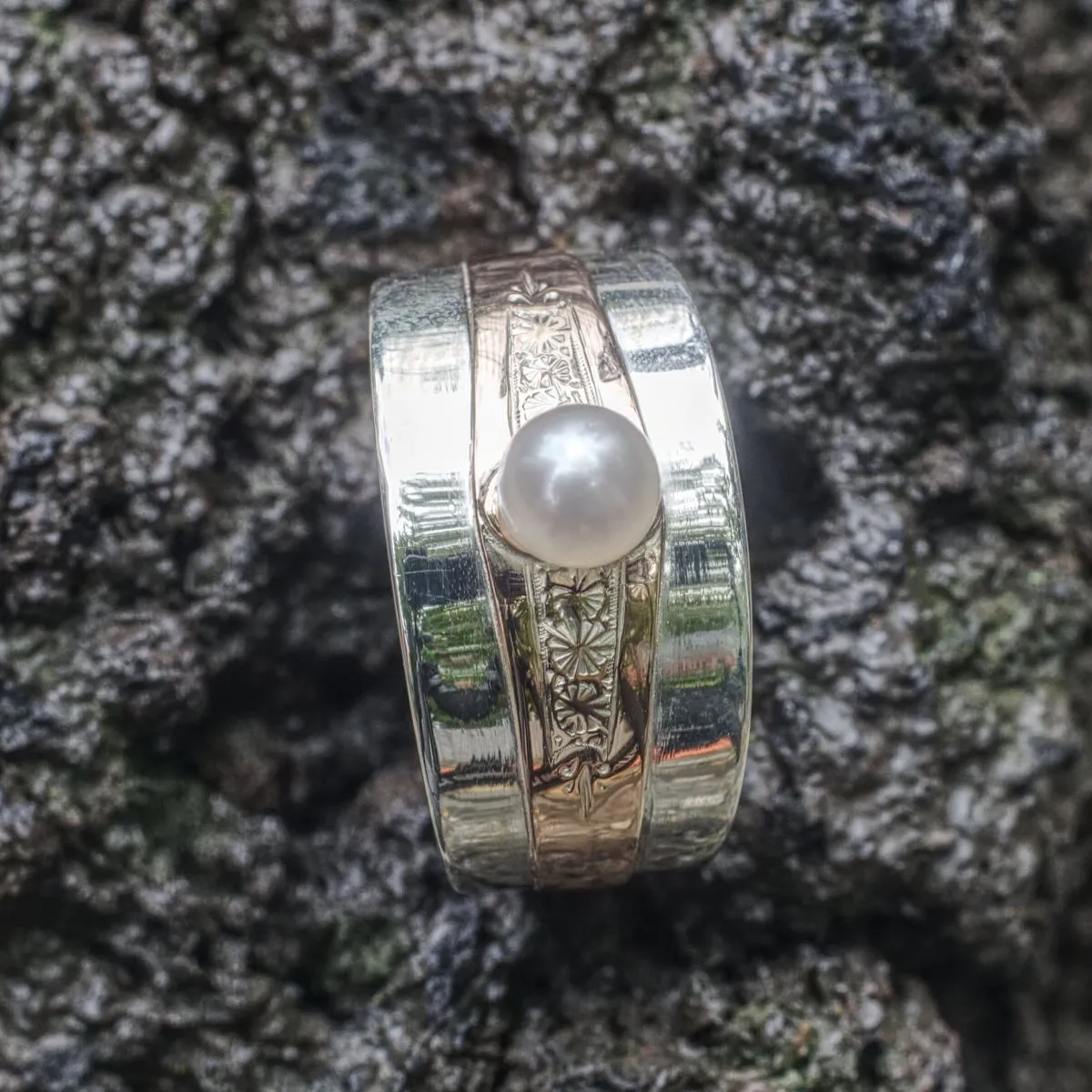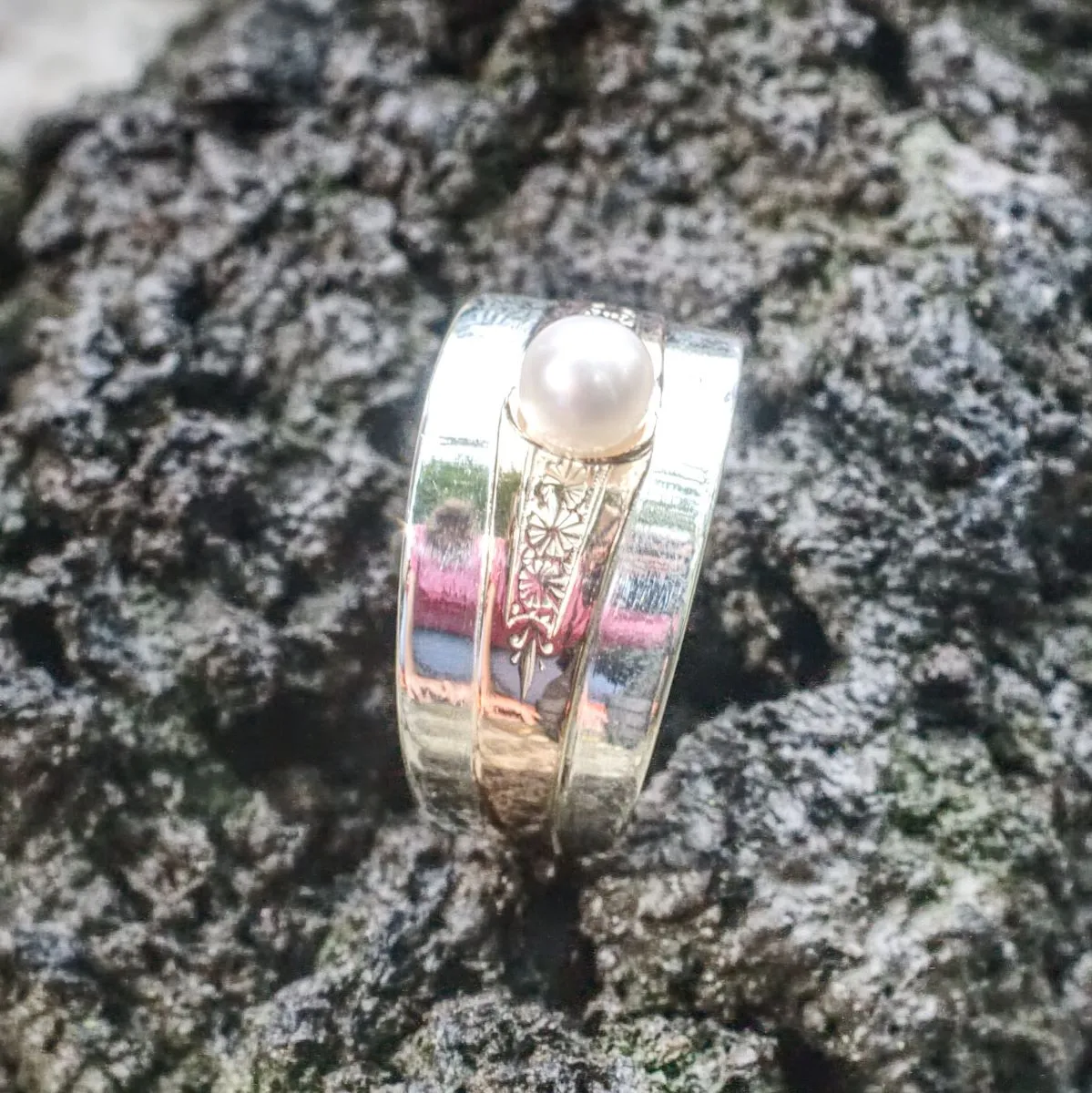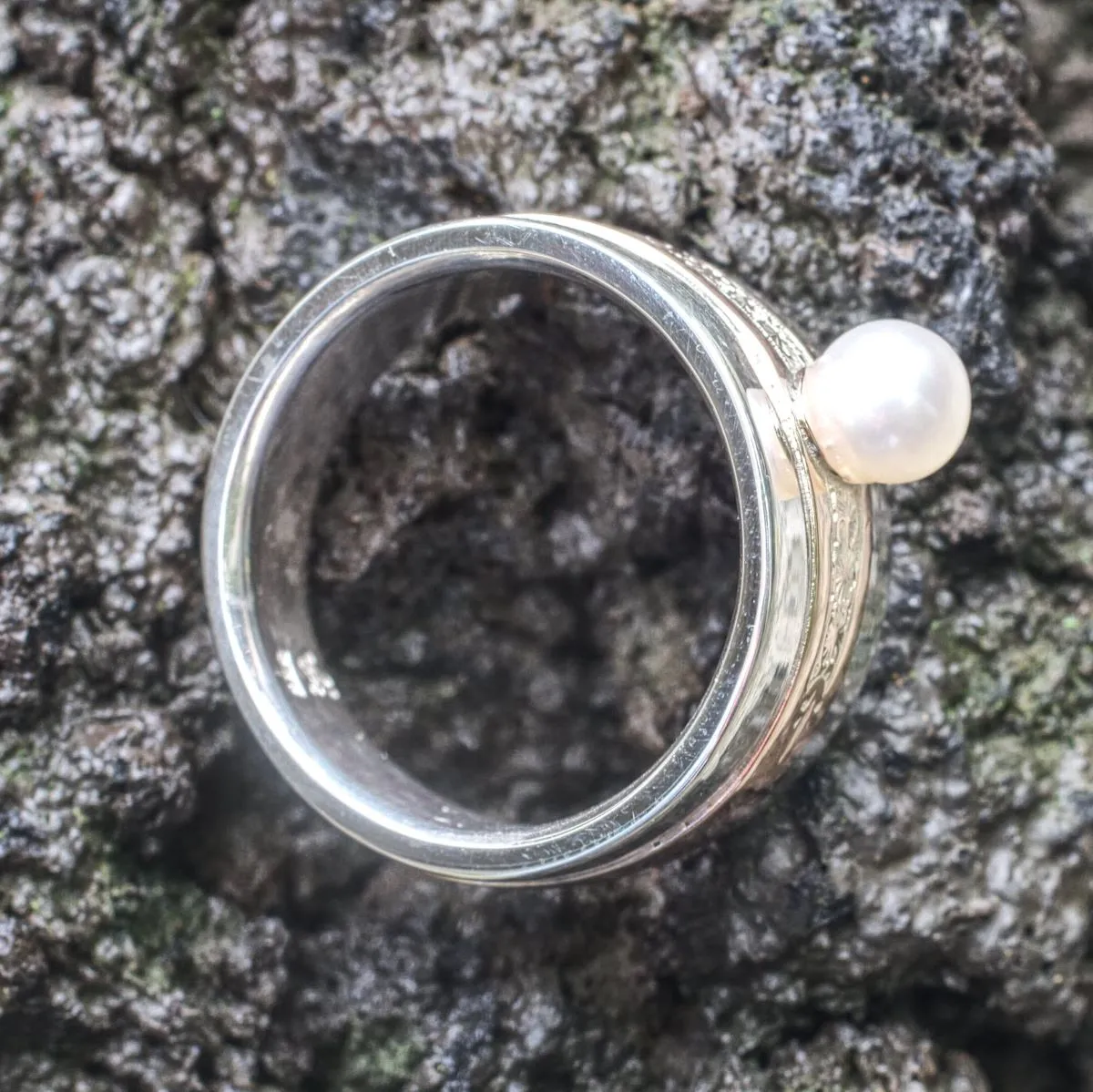 Anfertigung eines verlaufendenden Silberrings mit vergrößertem aufgesetztem Kundenring und Zuchtperle