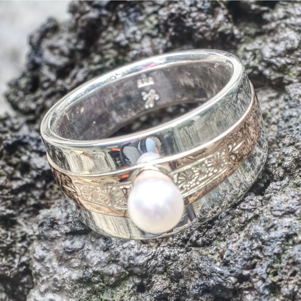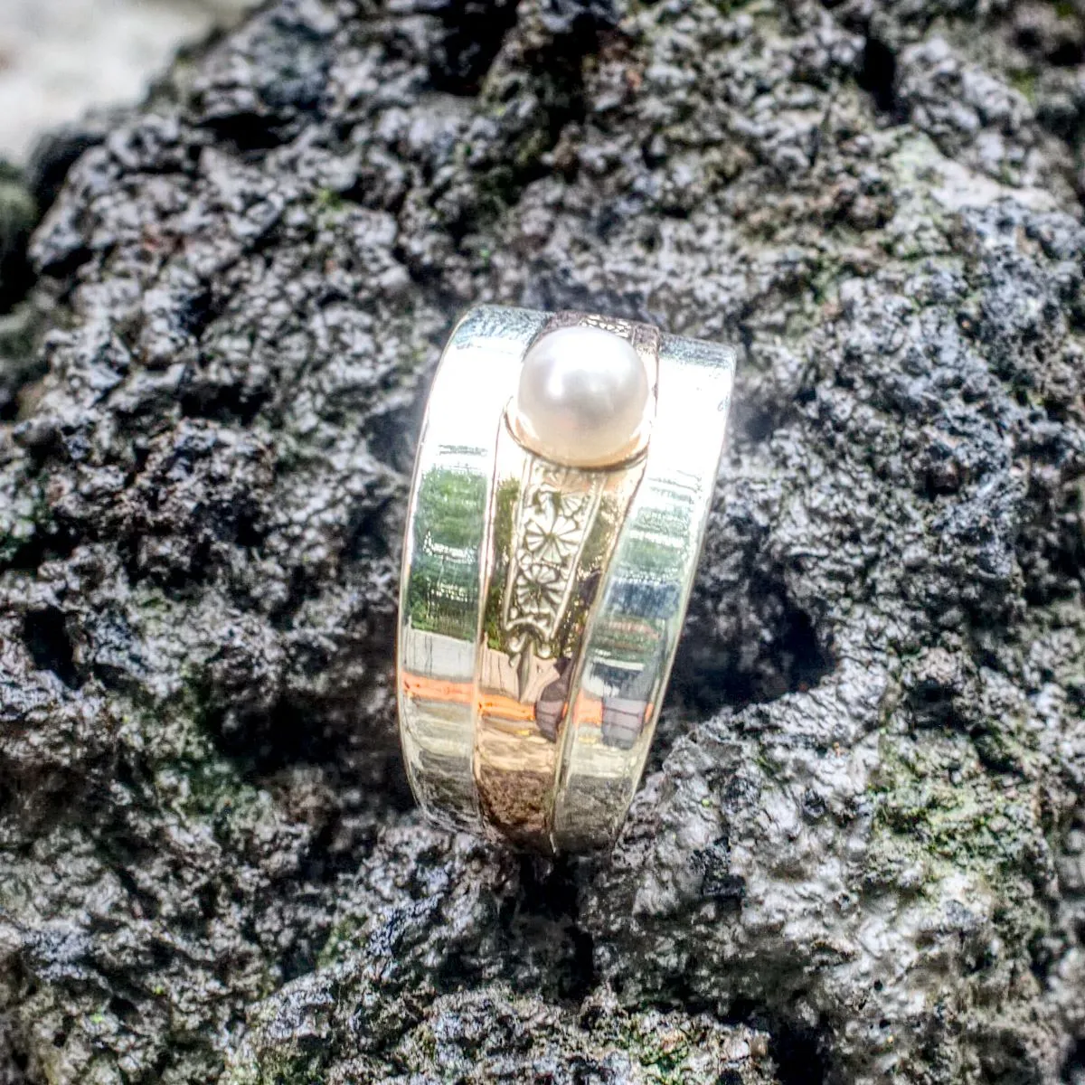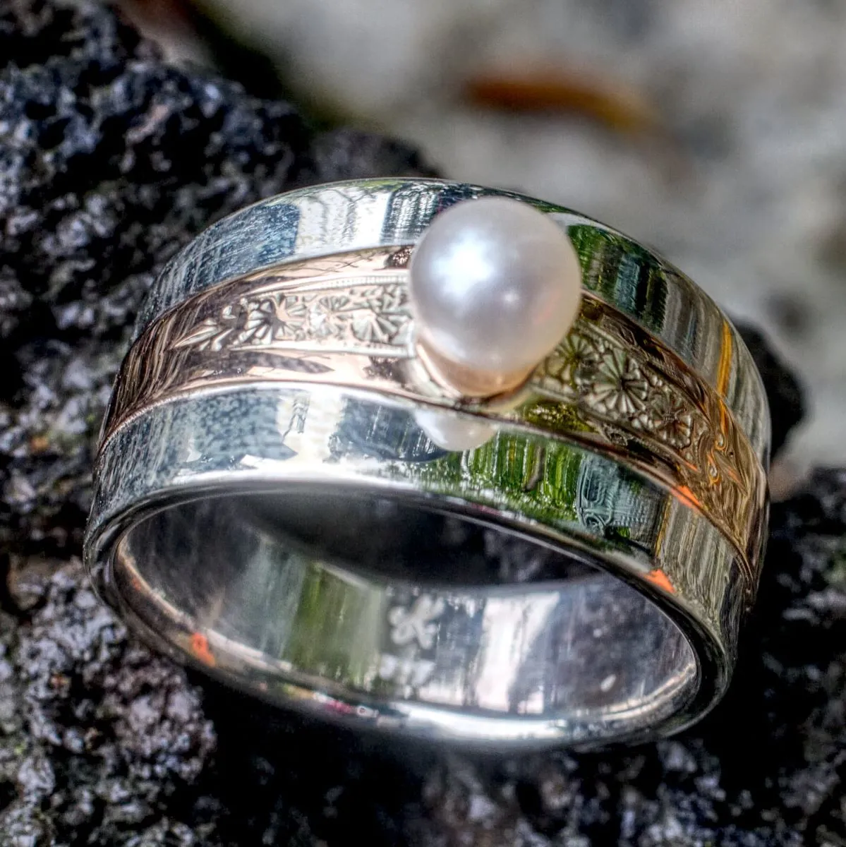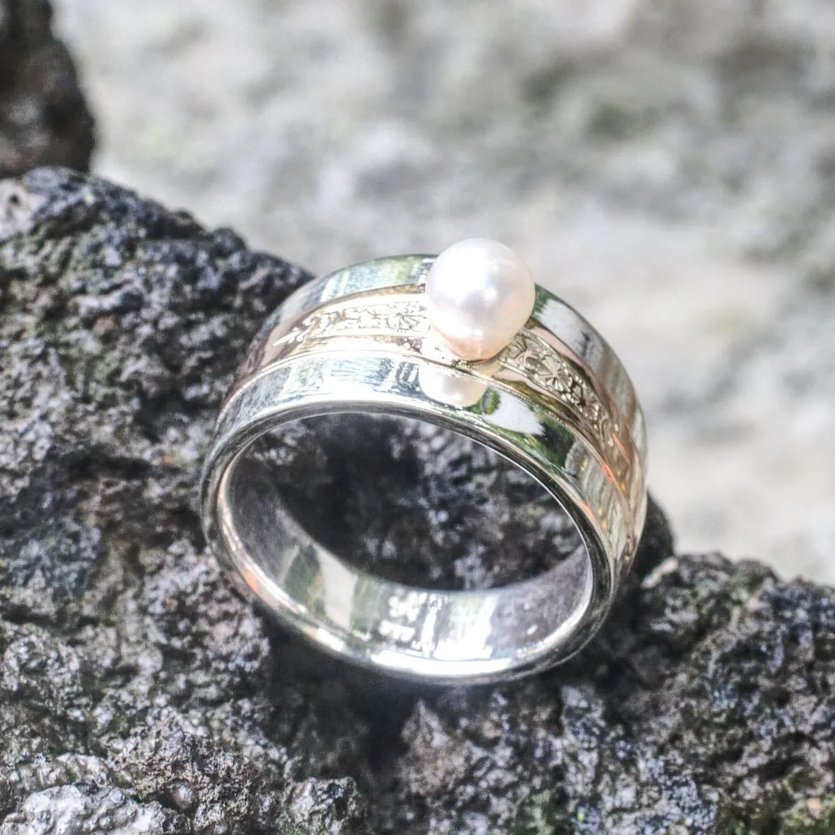 Anfertigung eines verlaufendenden Silberrings mit vergrößertem aufgesetztem Kundenring und Zuchtperle
