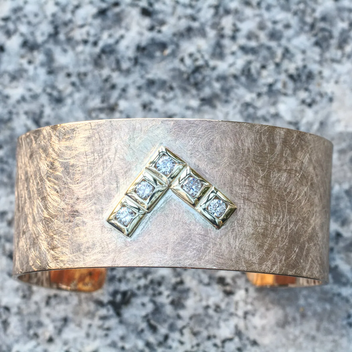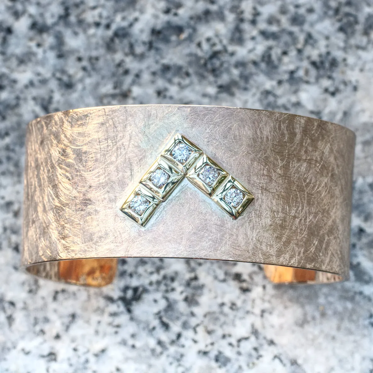Armspange aus Gelbgold mit 5 Brillanten in Quadratischer Fassung im Dreieck angeordnet