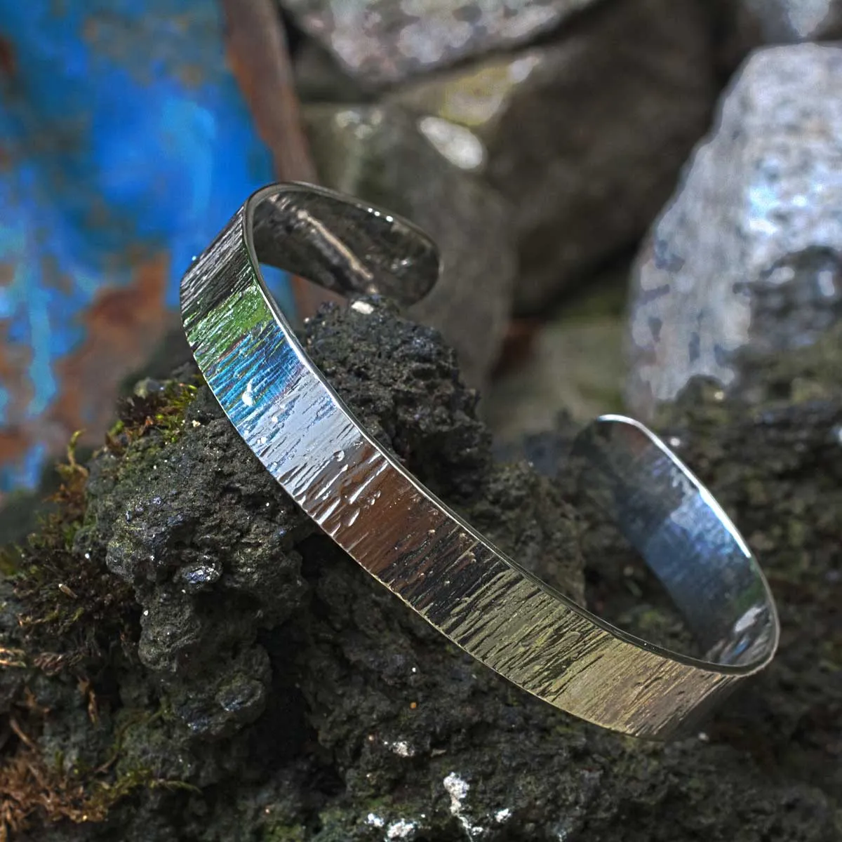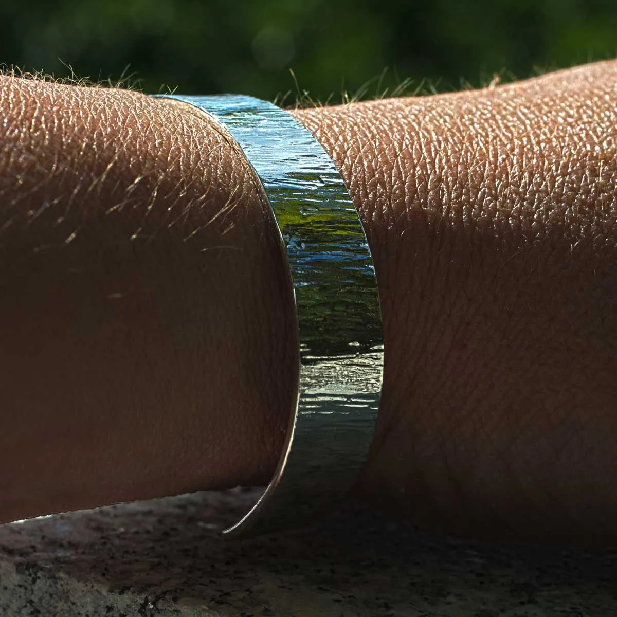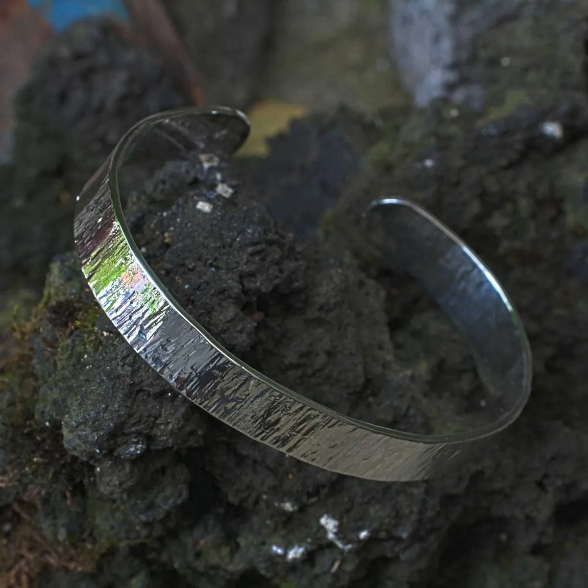 Armspange aus Silber mit Baumrindenstruktur
