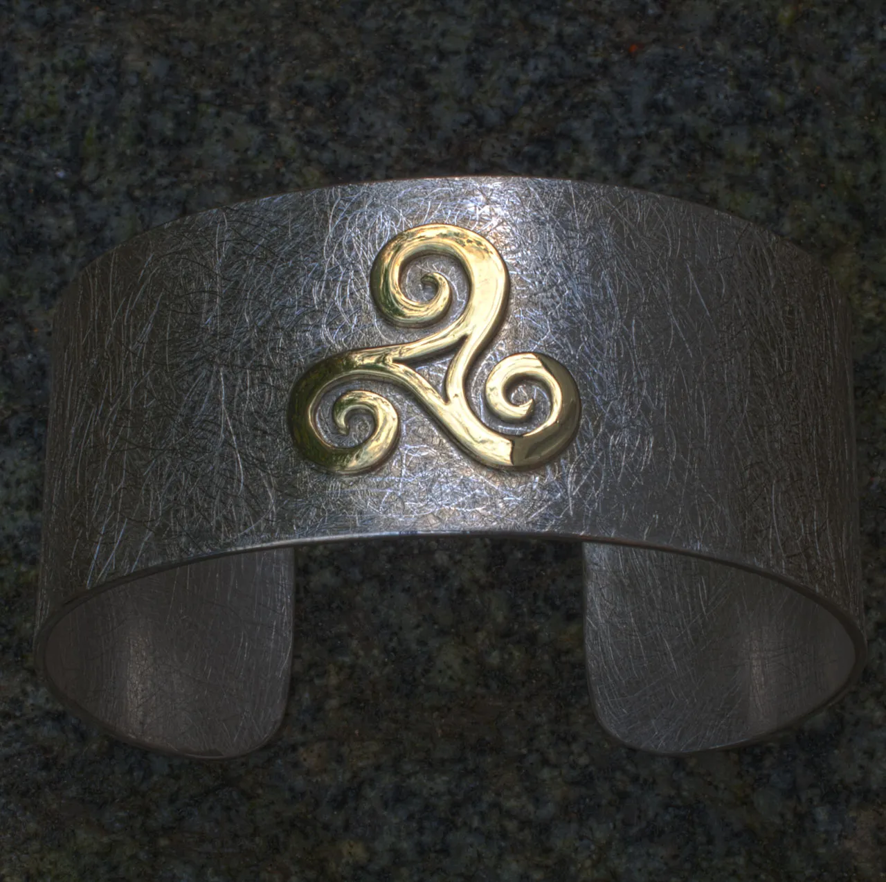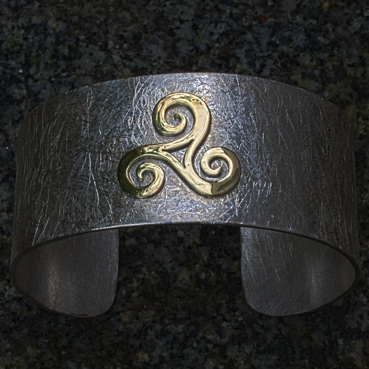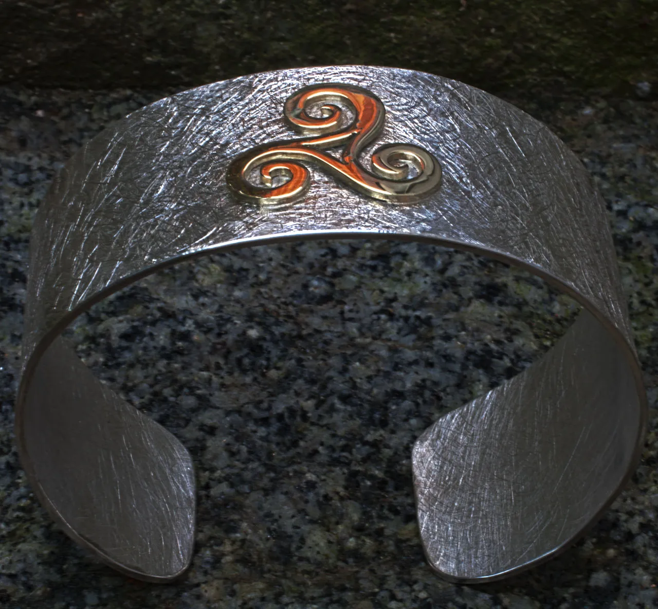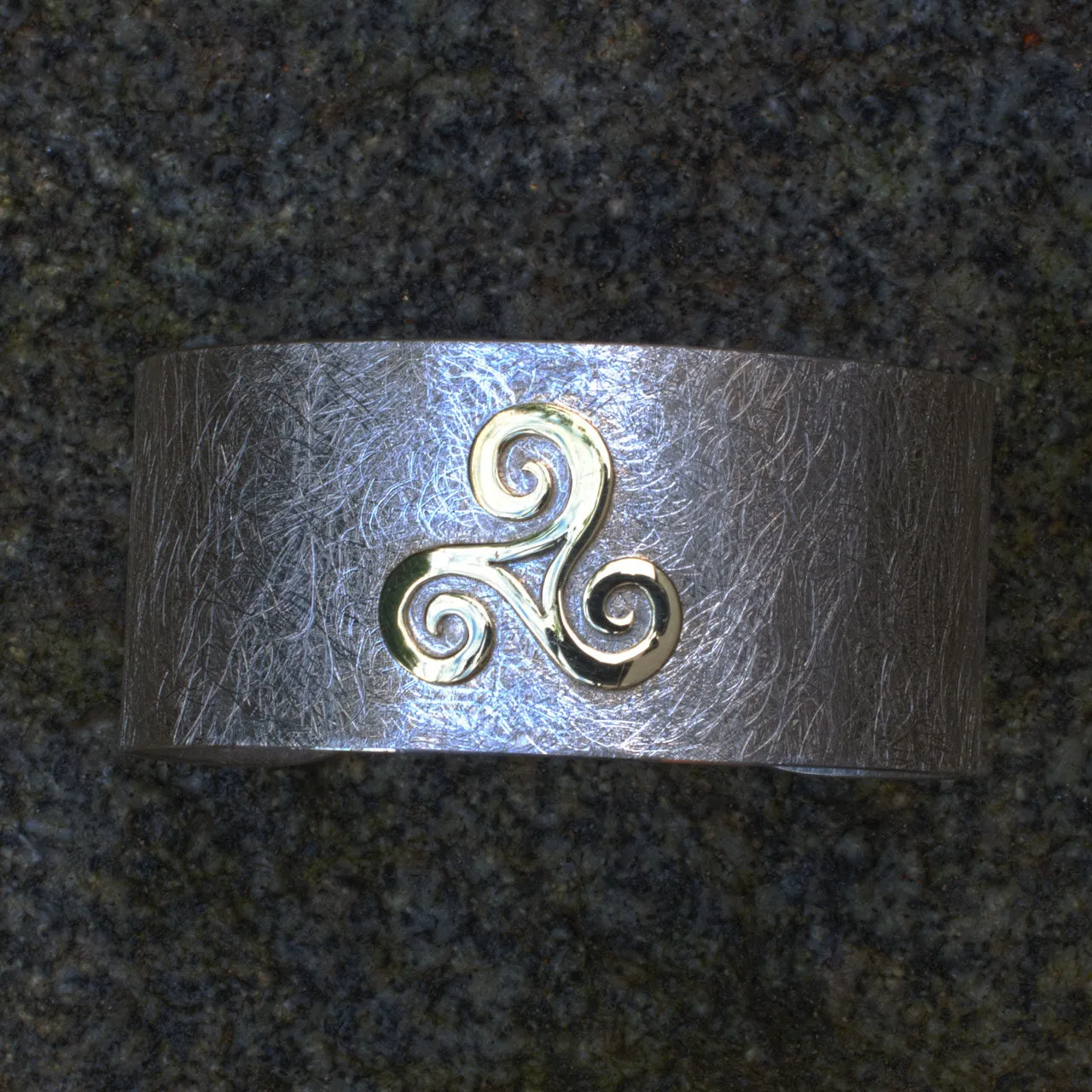 Silberarmspange mit gelbgoldener, aufgesetzter Triscele