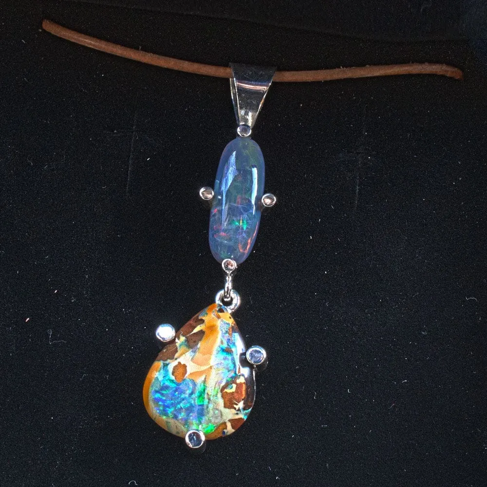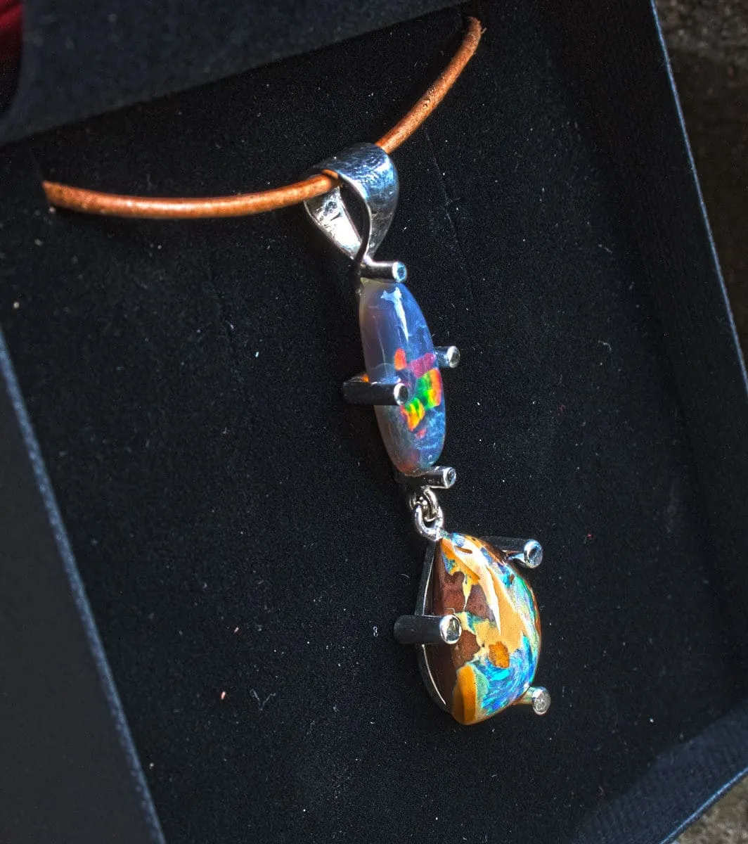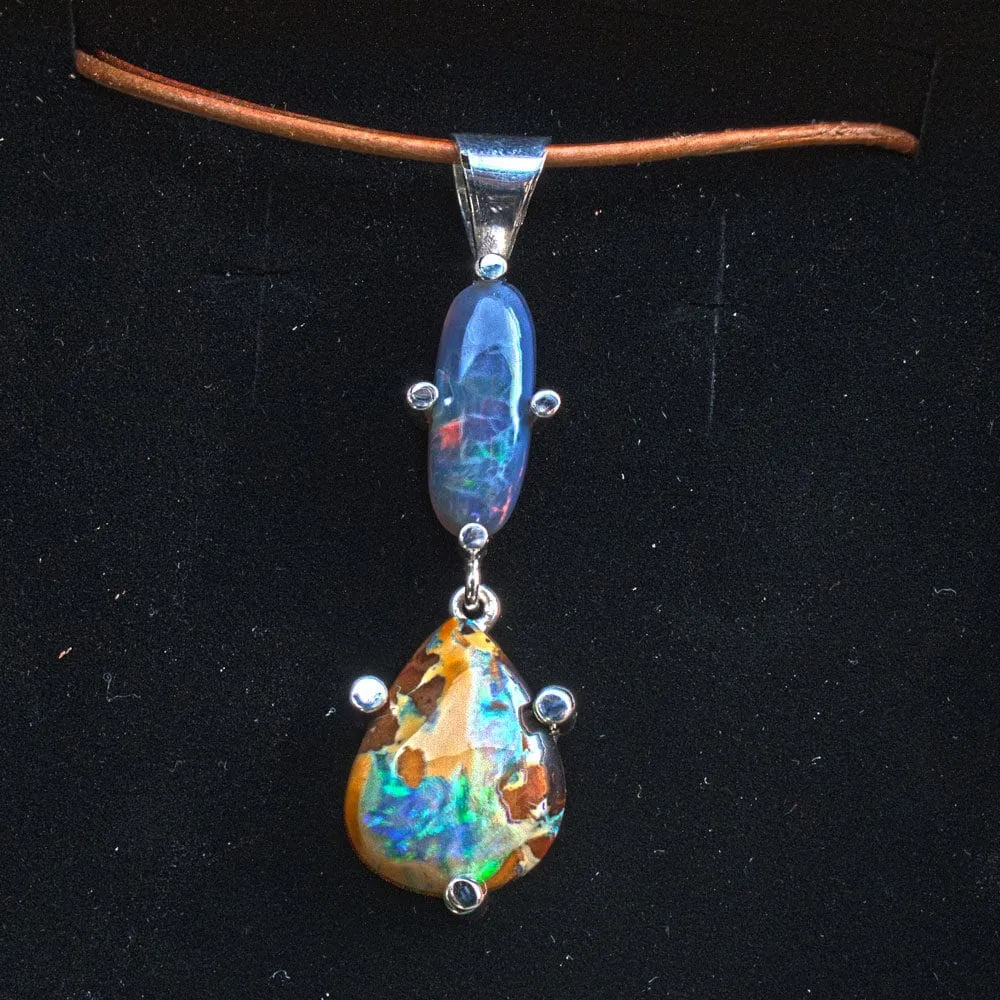 Silberanhänger mit zwei untereinander angeordneten Bolder-Opalen in Krappenfassung