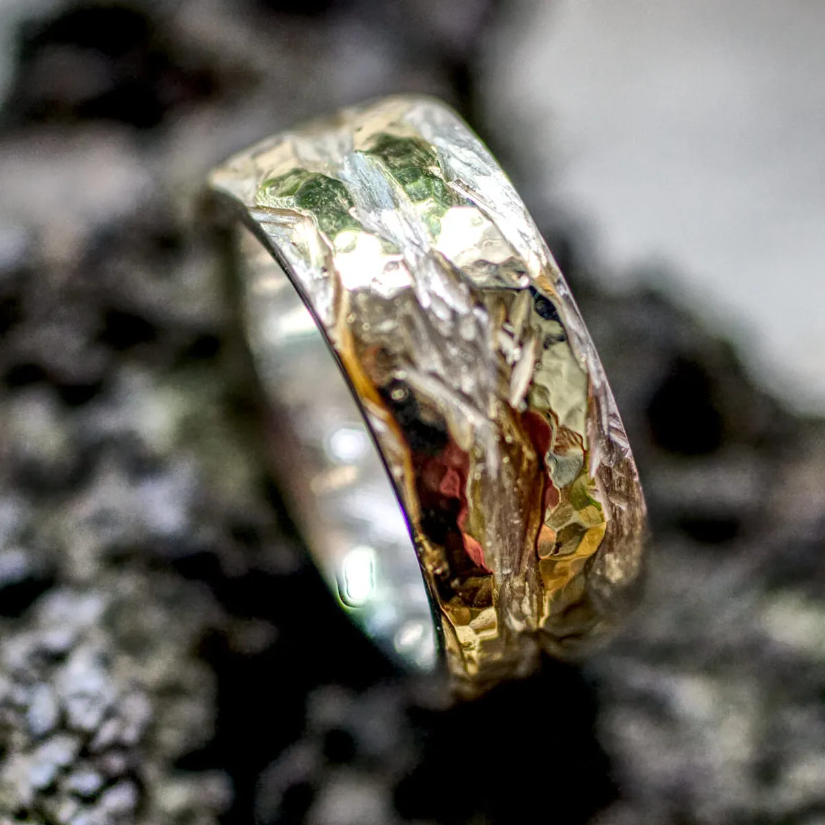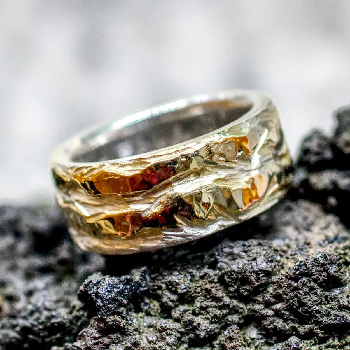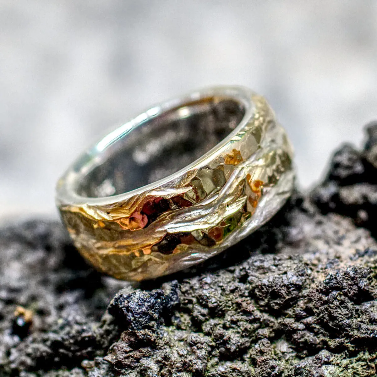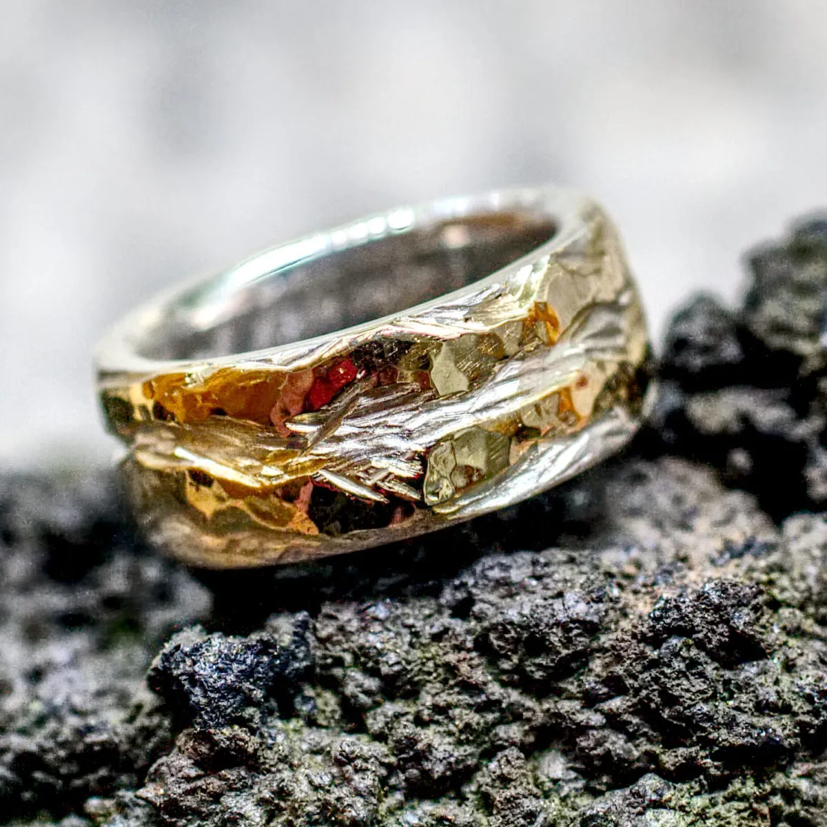 Silberring mit zwei unregelmäßigen eingearbeiteten Goldstreifen aus den ersten Eheringen