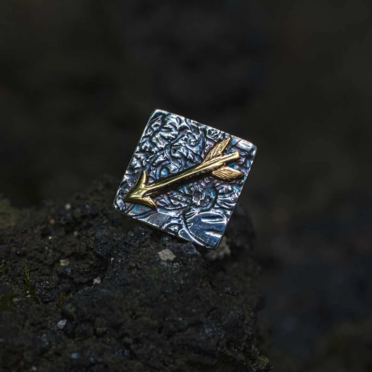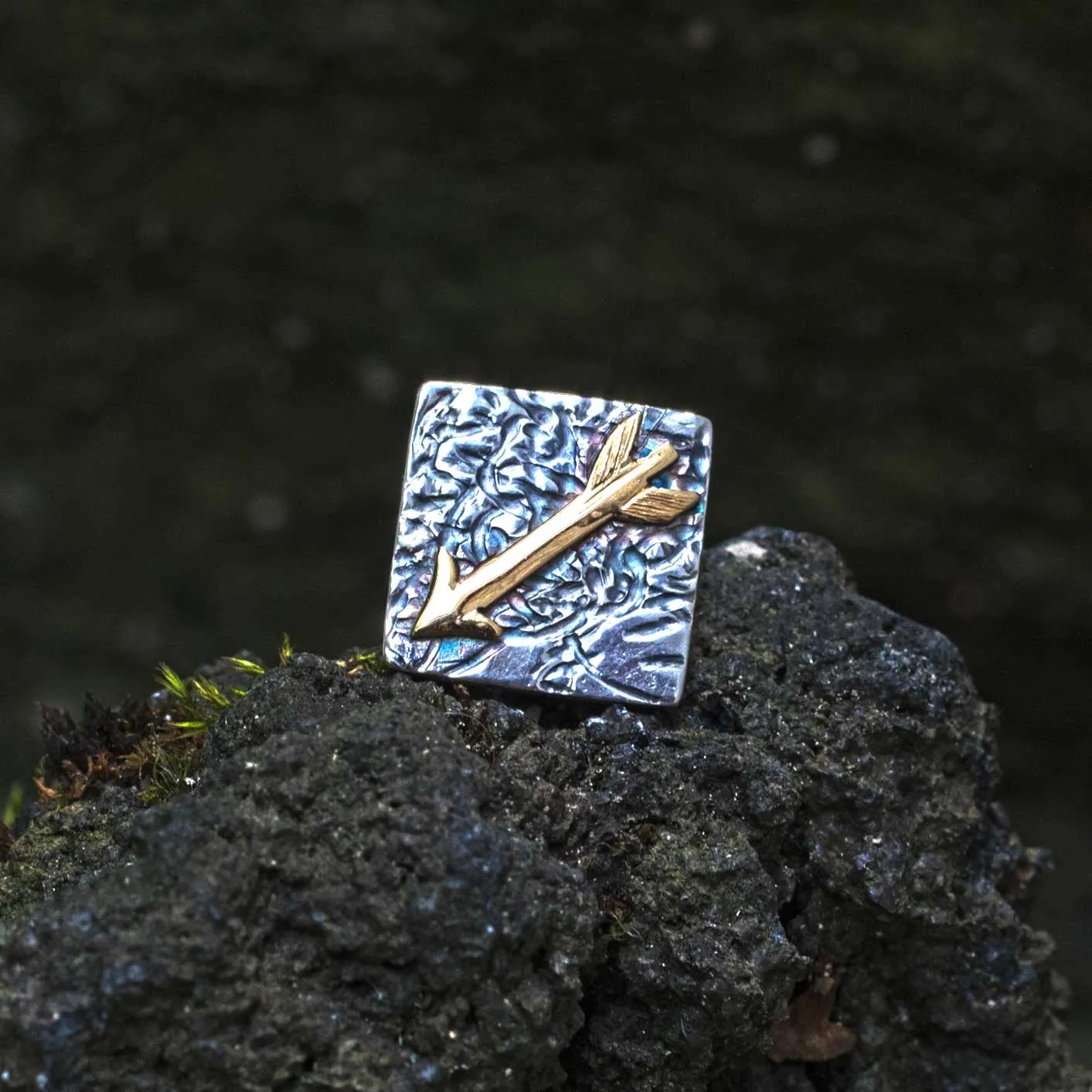 Ohrstecker quadratische Platte aus Silber mit gelbgoldenem aufgesetzten Pfeil