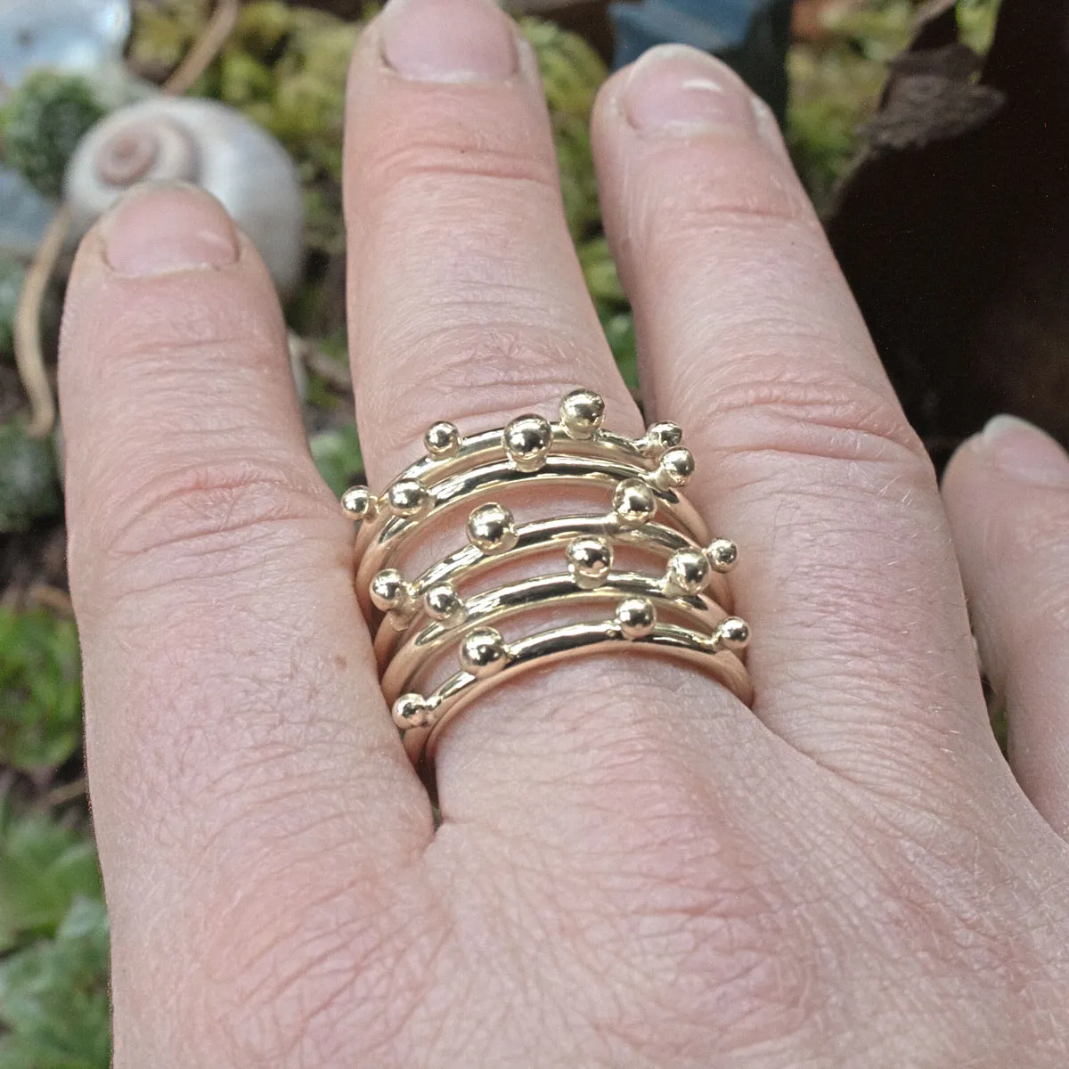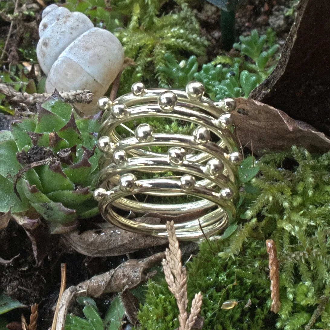 Wickelring aus Gelbgolddraht mit aufgesetzten Goldkugeln