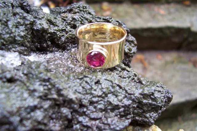 Gelbgoldring mit Turmalin in Zargenfassung Solitär