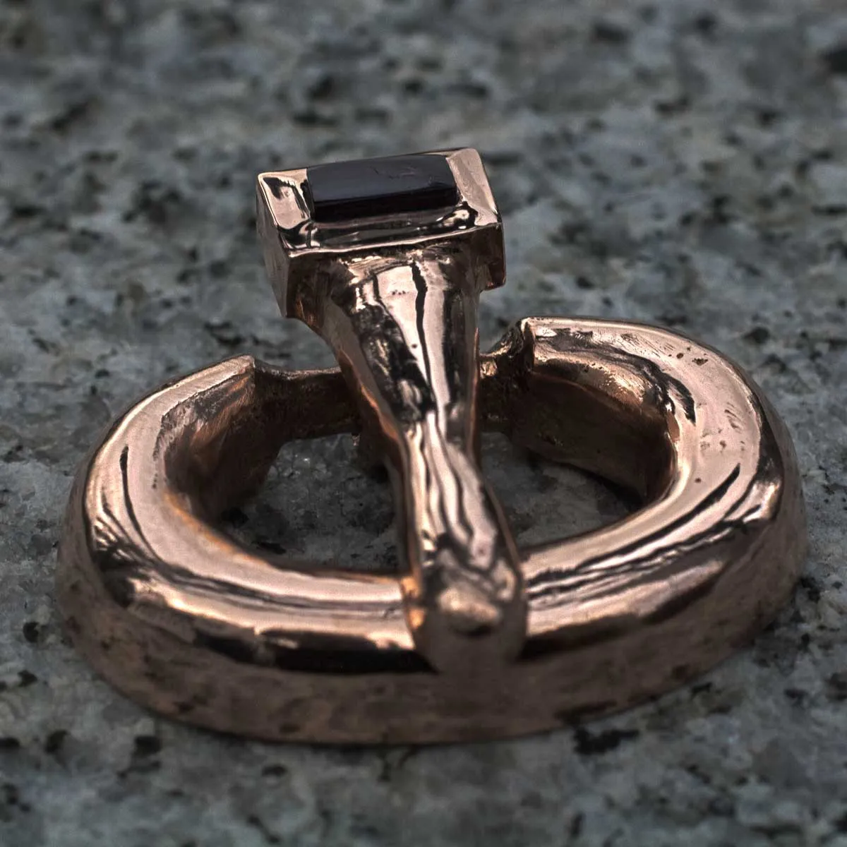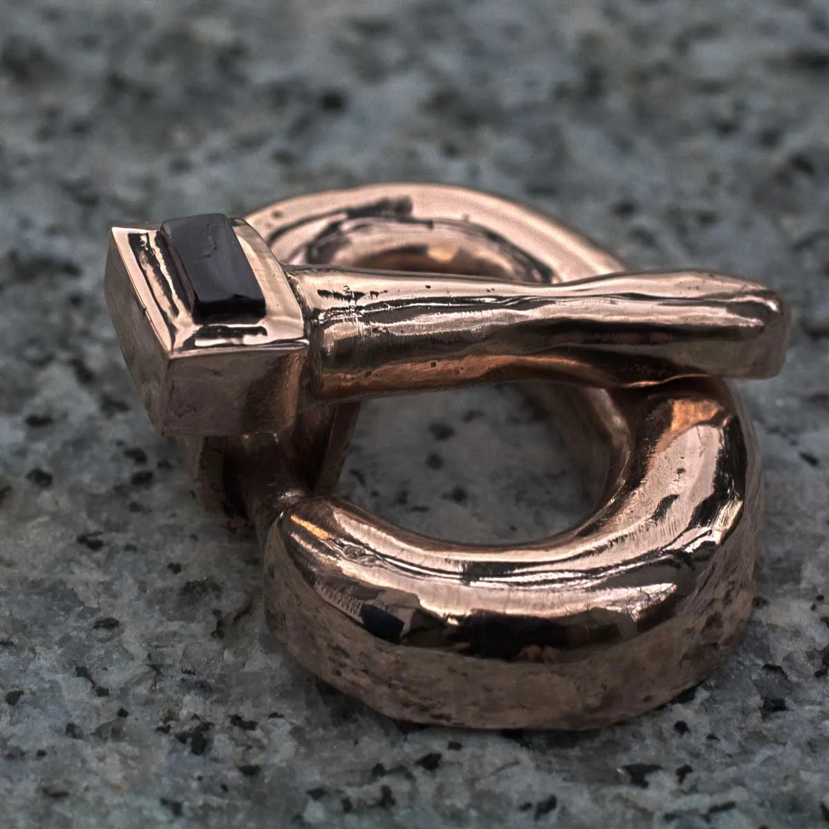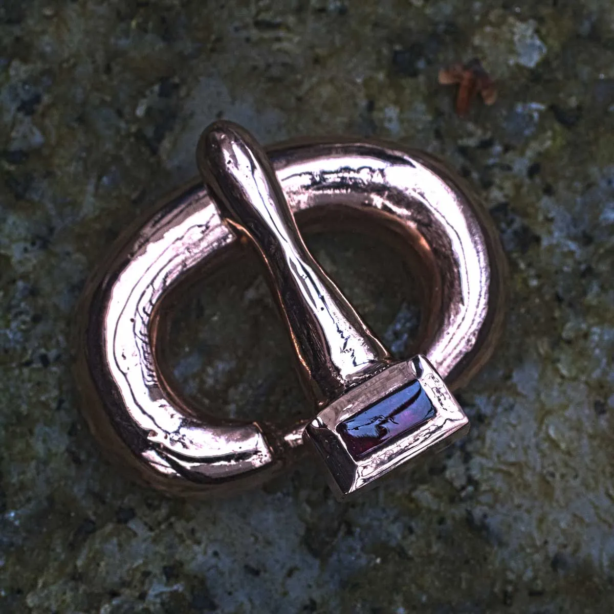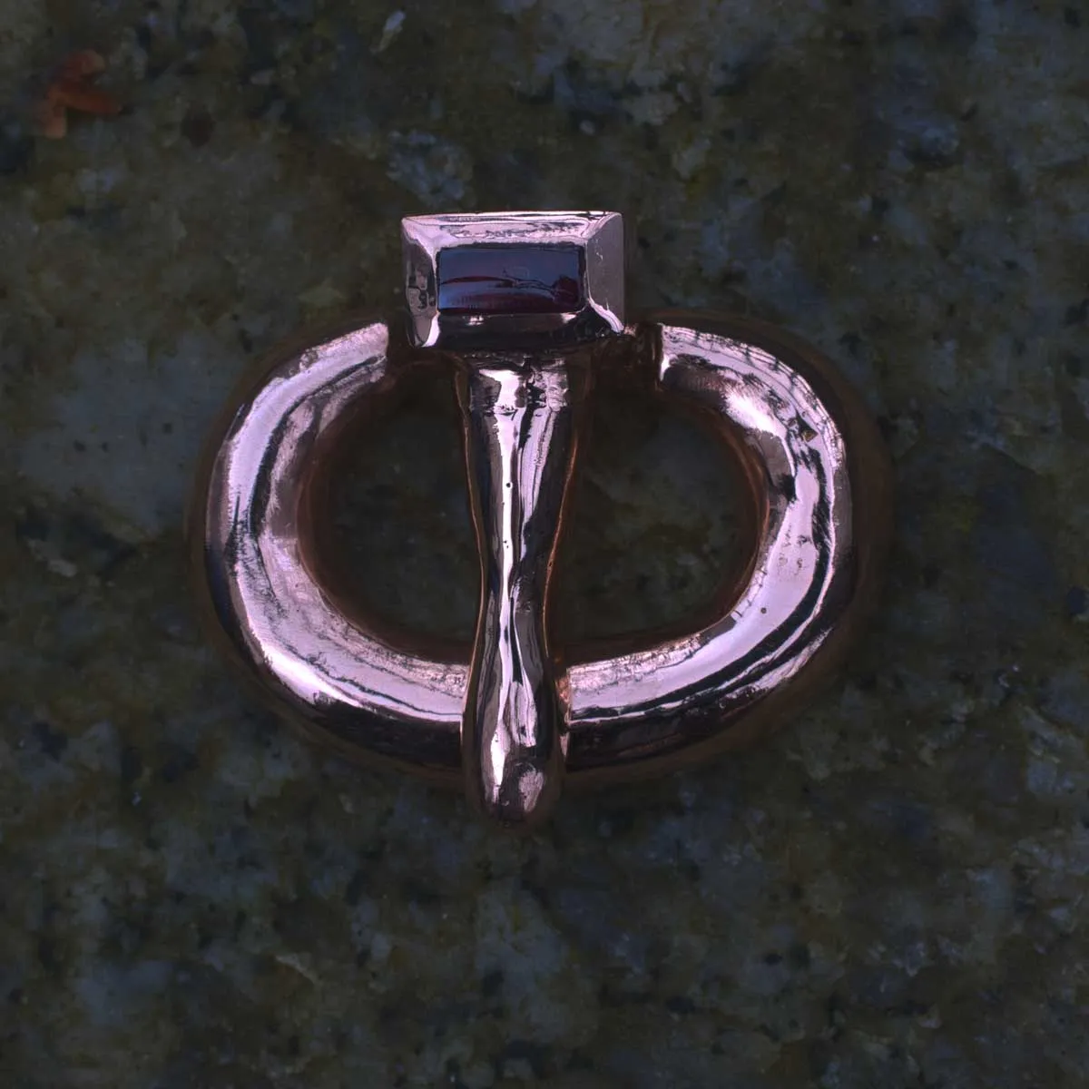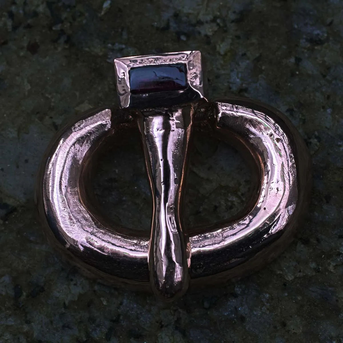 Gürtelschließe aus Bronze von Manuel Schmidl mit eingeschliffenem Granat