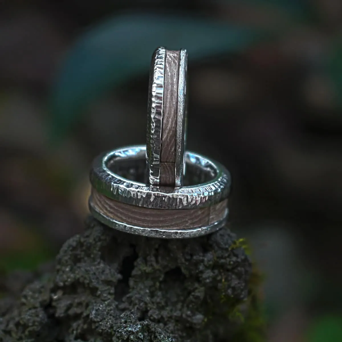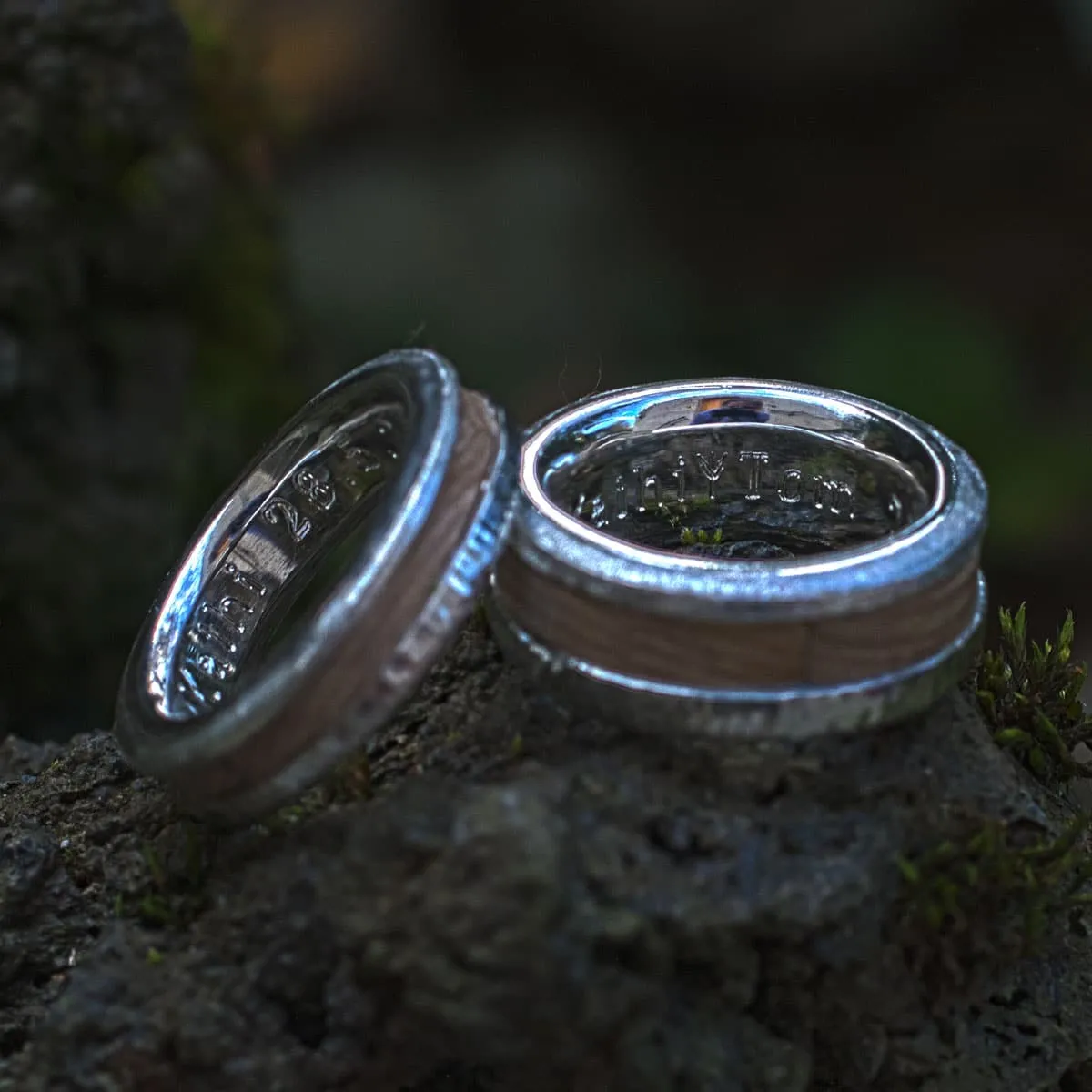 Silberringe mit eingelegtem Streifen aus versteinertem Holz