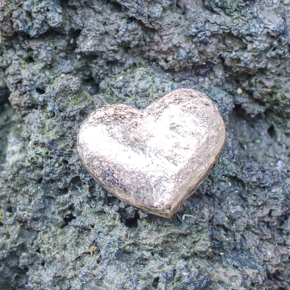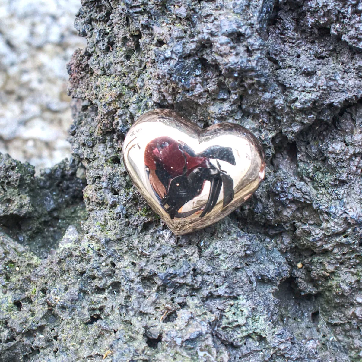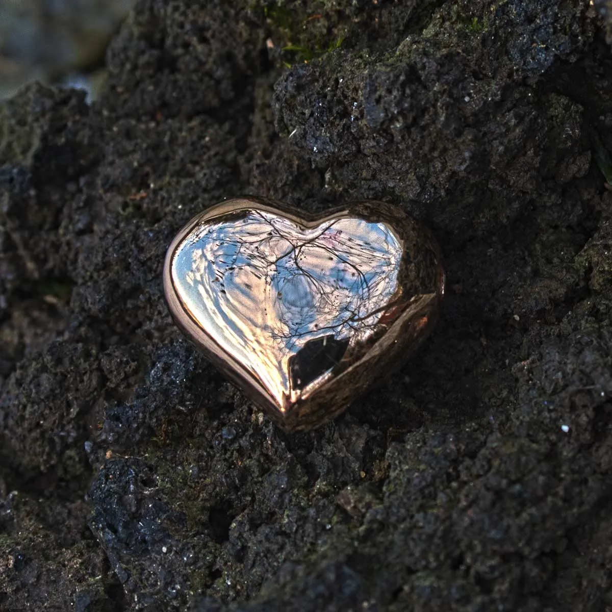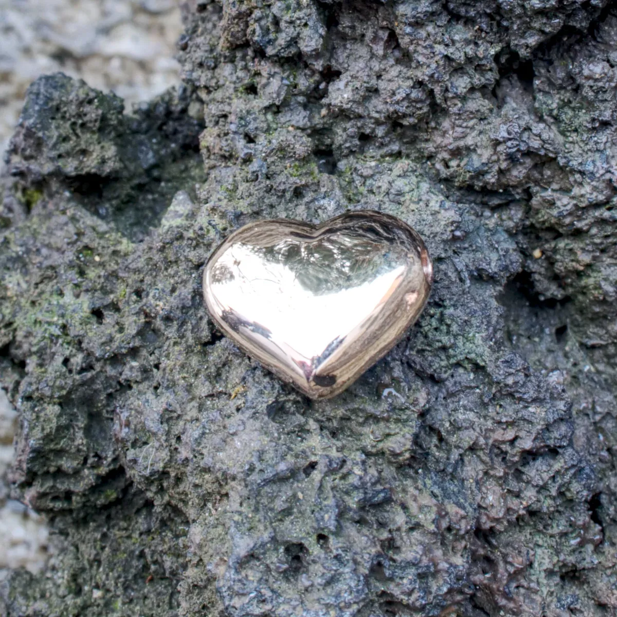 herzförmiger durchgebohrter Anhänger aus Gold, auf einer Seite poliert, auf der anderen Seite mattiert