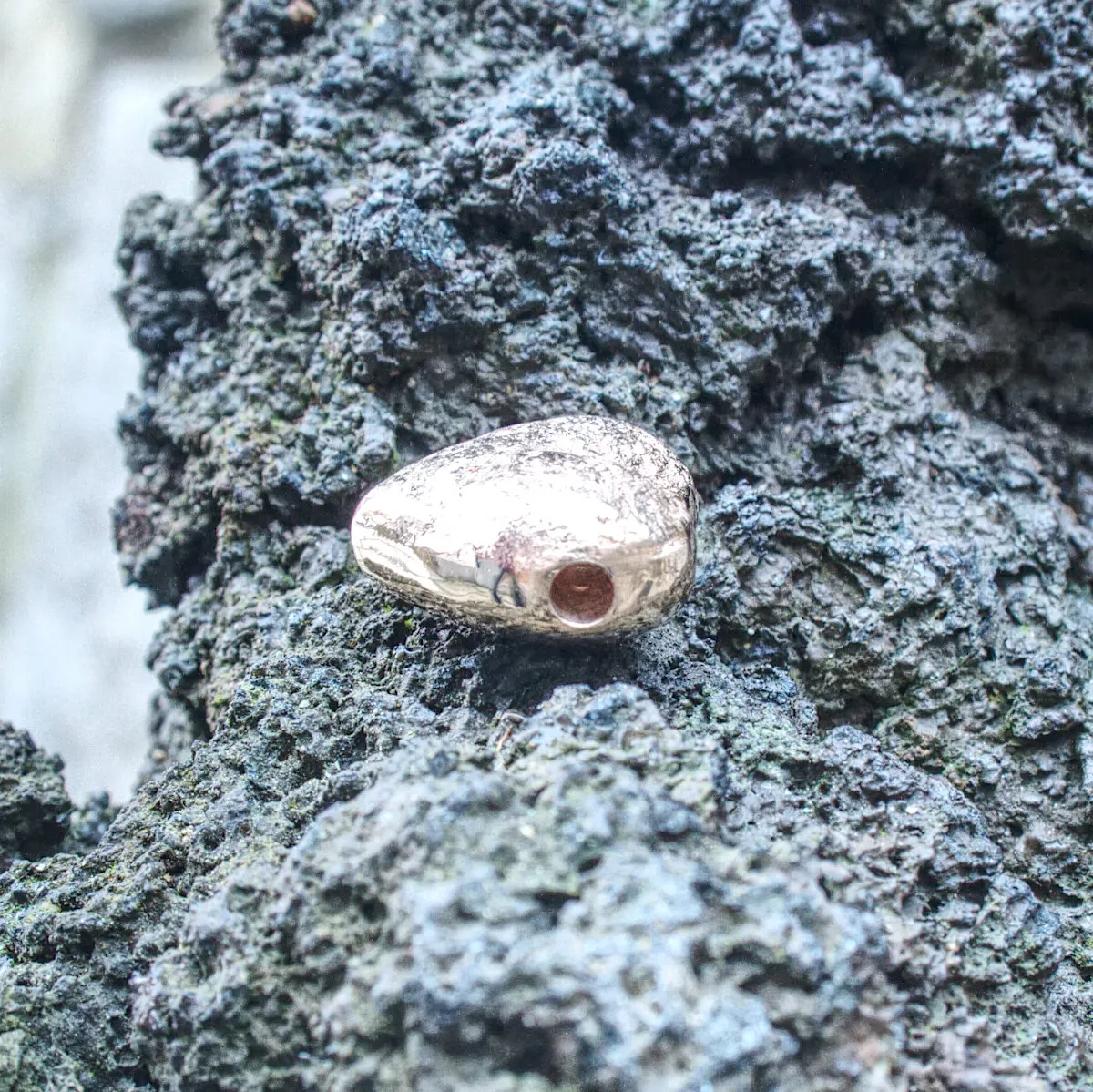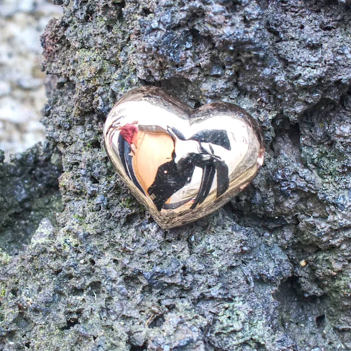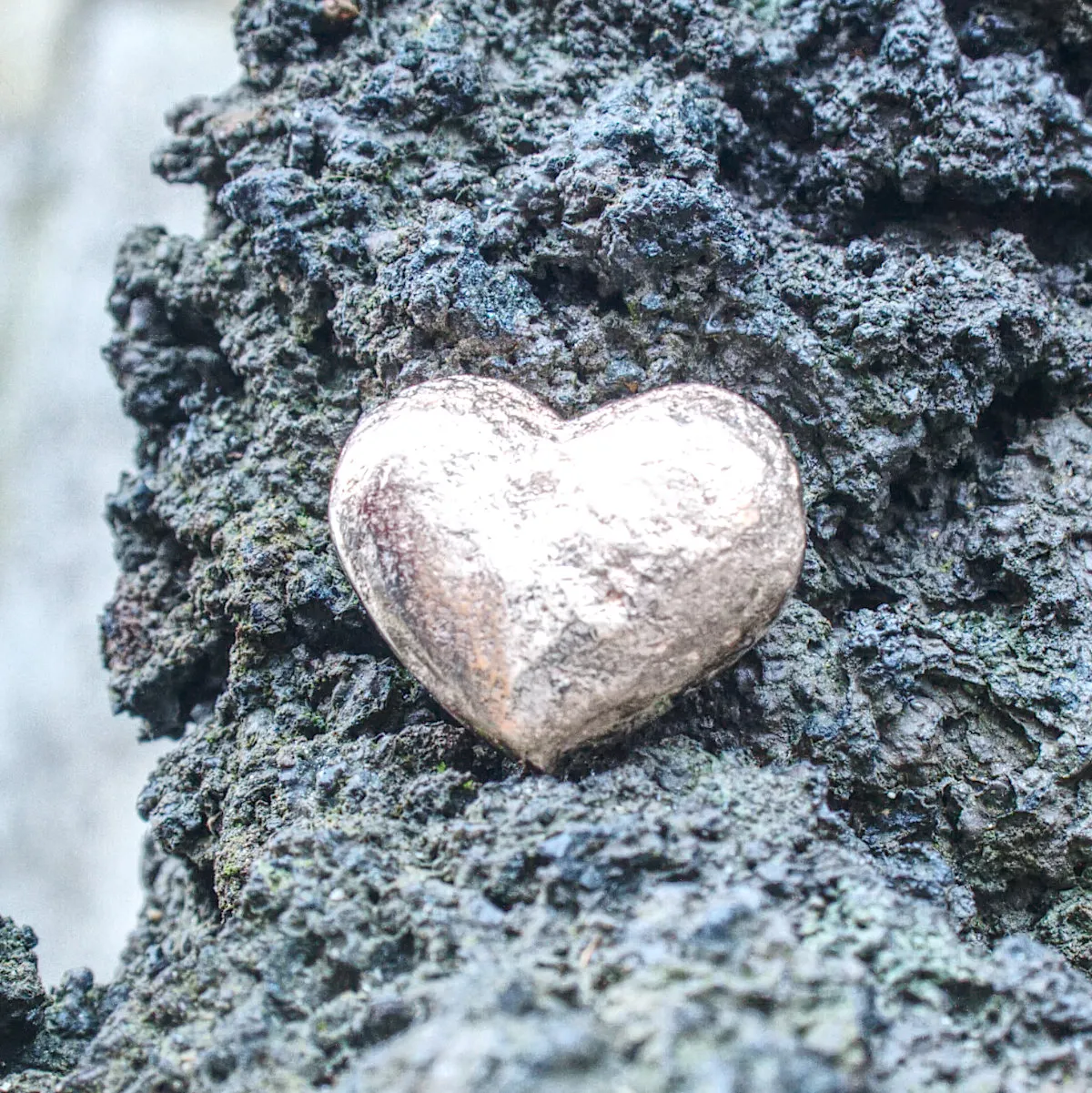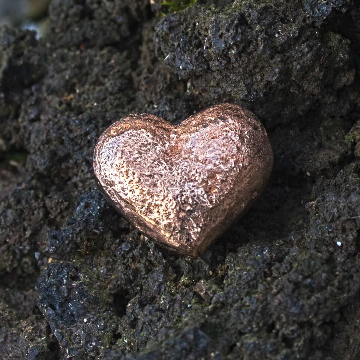 herzförmiger durchgebohrter Anhänger aus Gold, auf einer Seite poliert, auf der anderen Seite mattiert