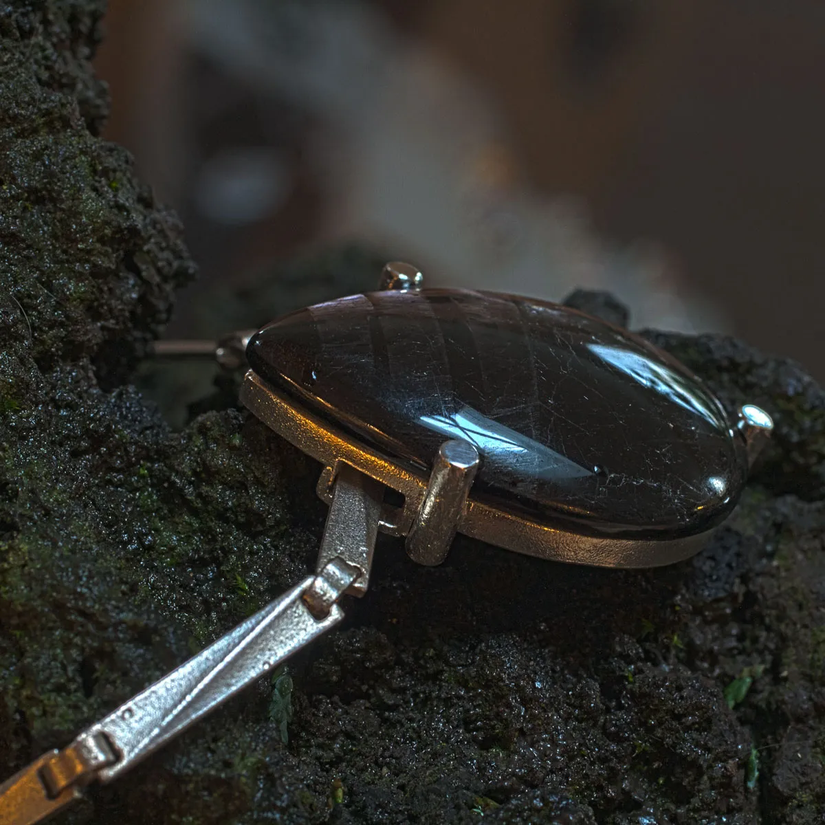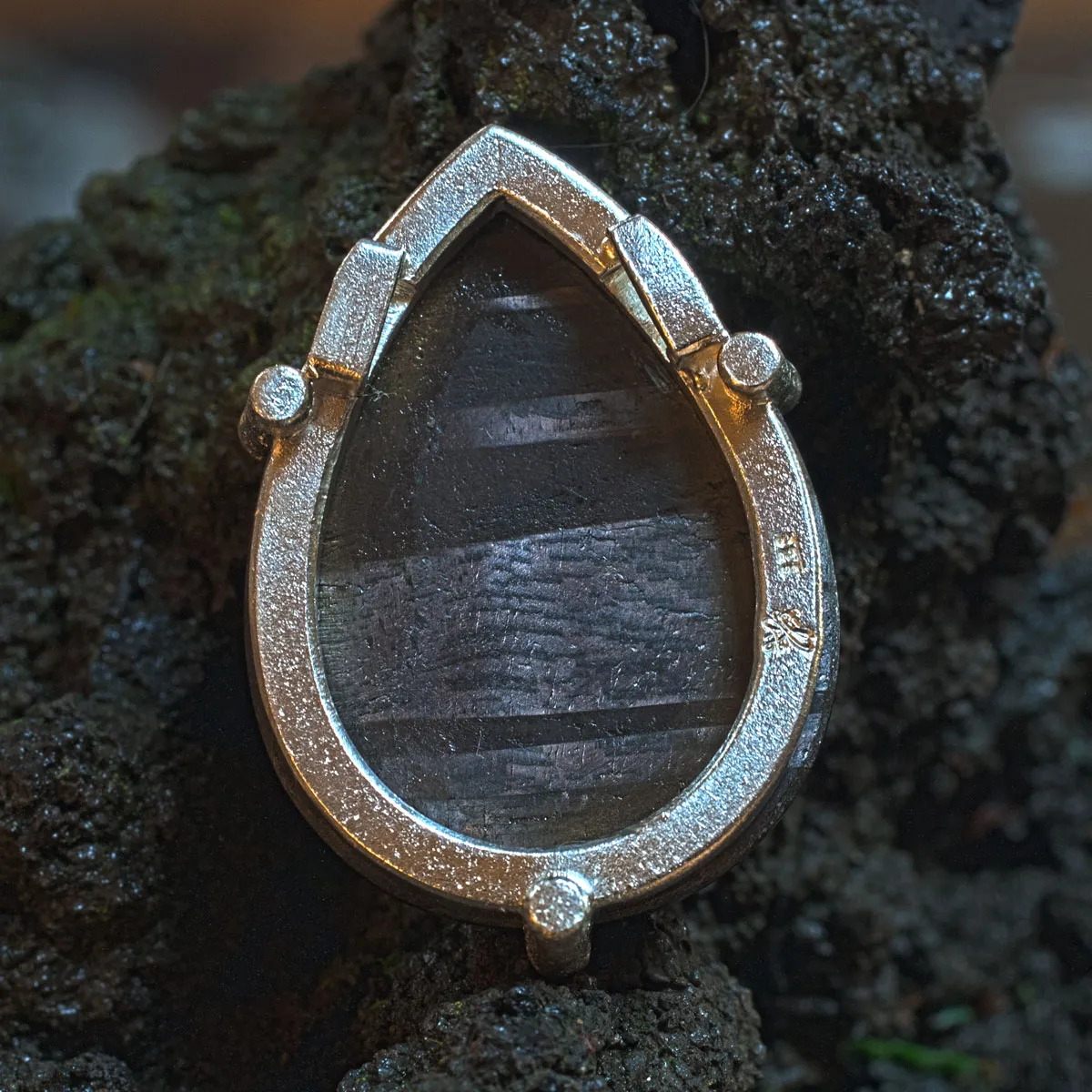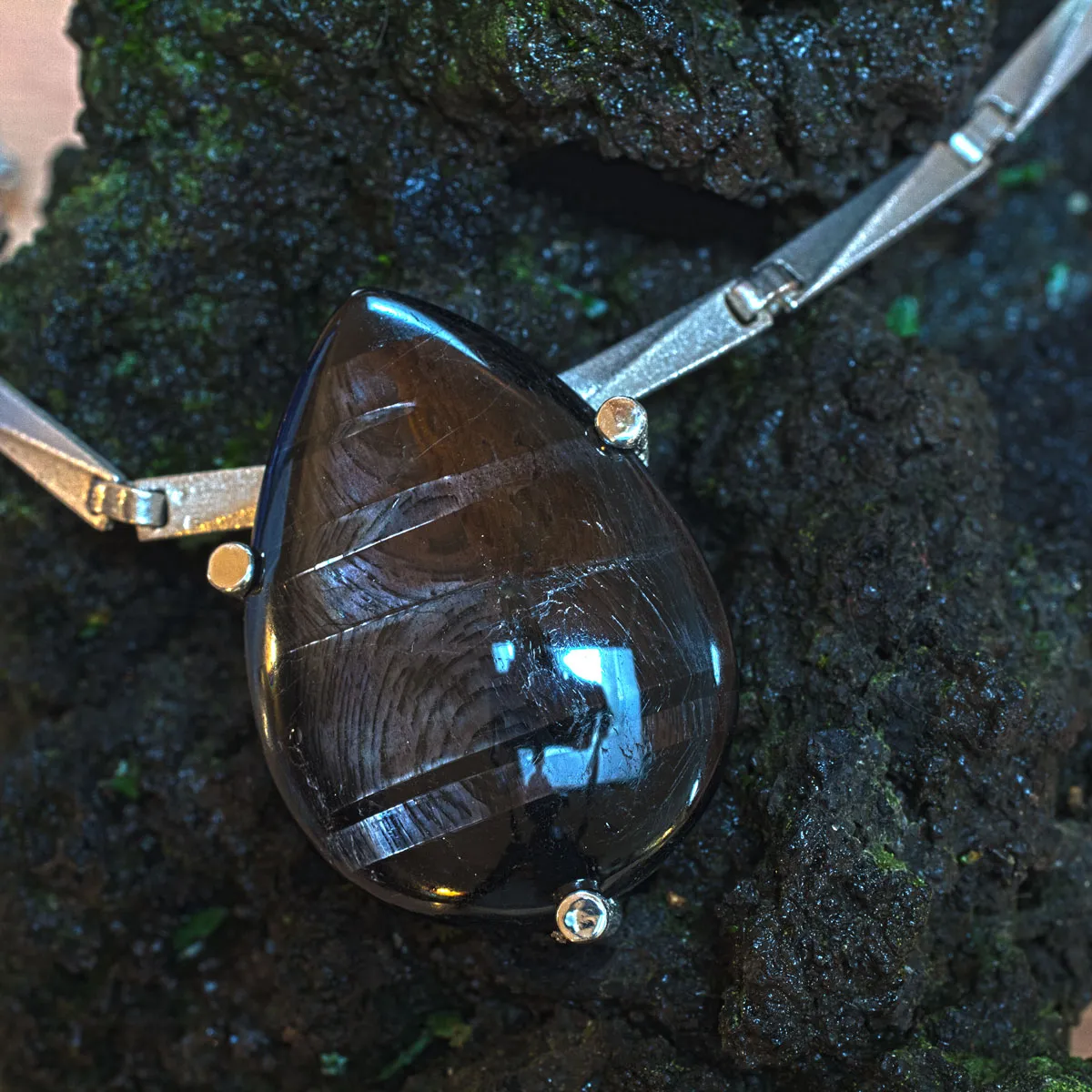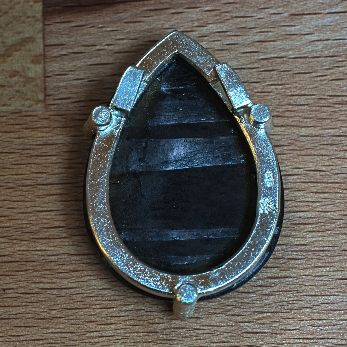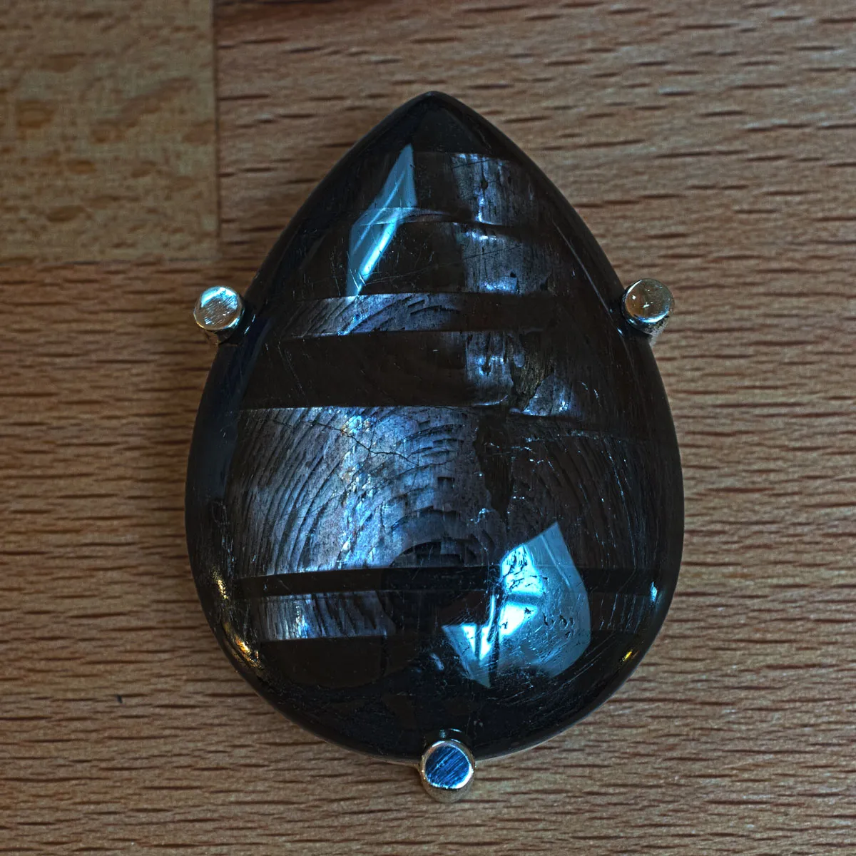 Hypersthen Tropfen in Silber-Krappen-Fassung