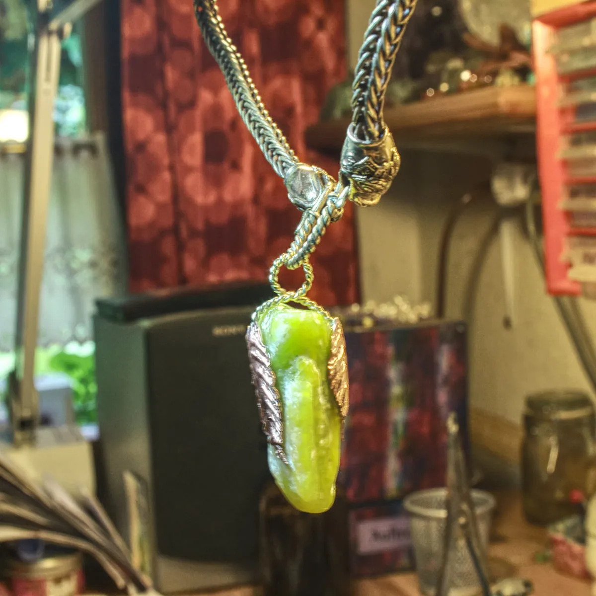 Jade in zwei Silberblättern