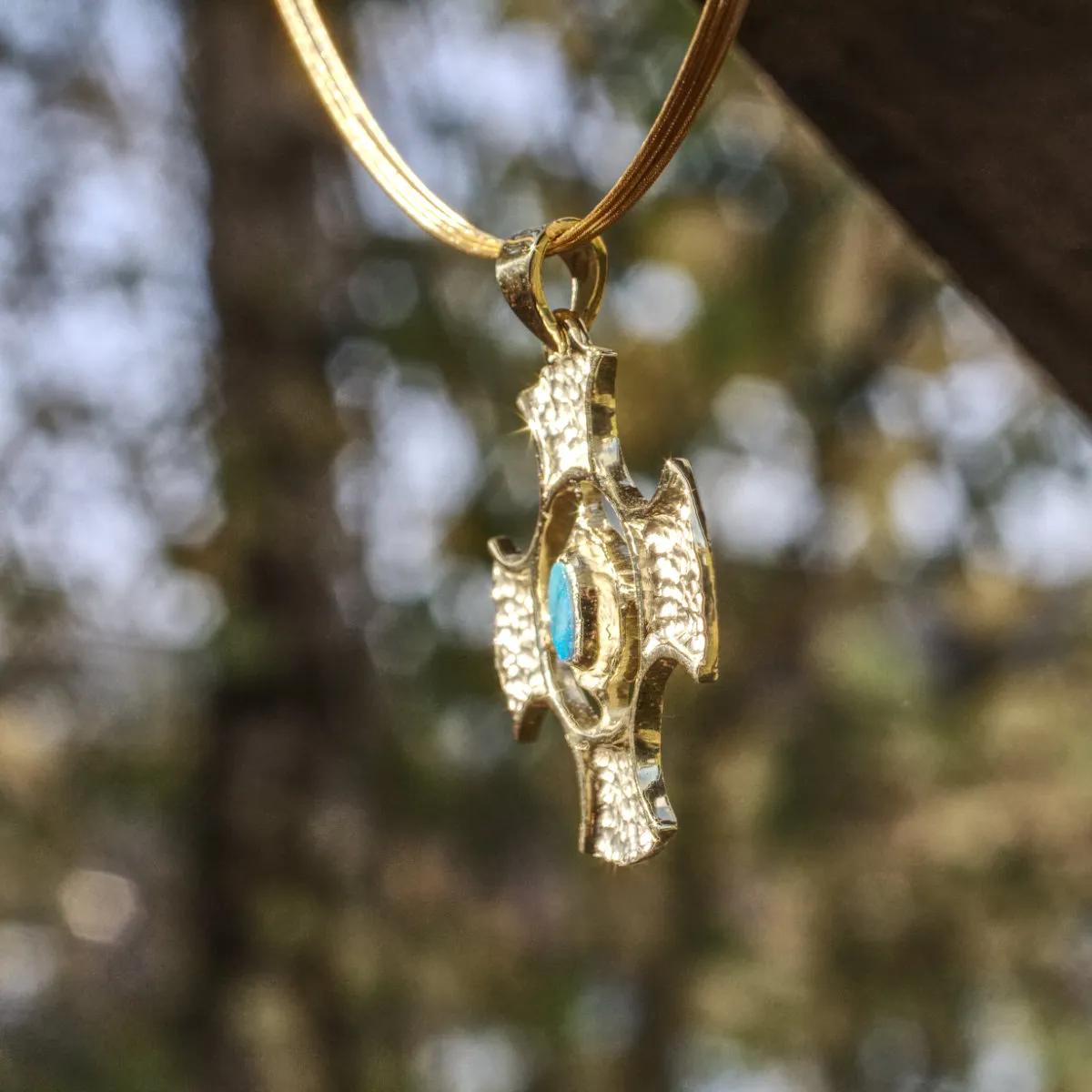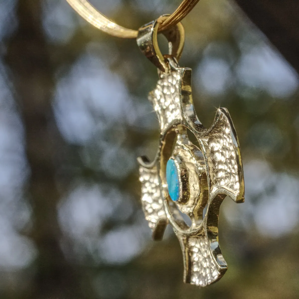 gleichschenkliges keltisches Kreuz mit runder Hammerschlag-Struktur und polierten Kanten an V-Schlaufe,