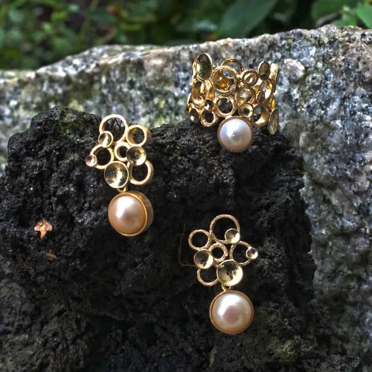 Kreise und Plättchen in Gold mit Perle
