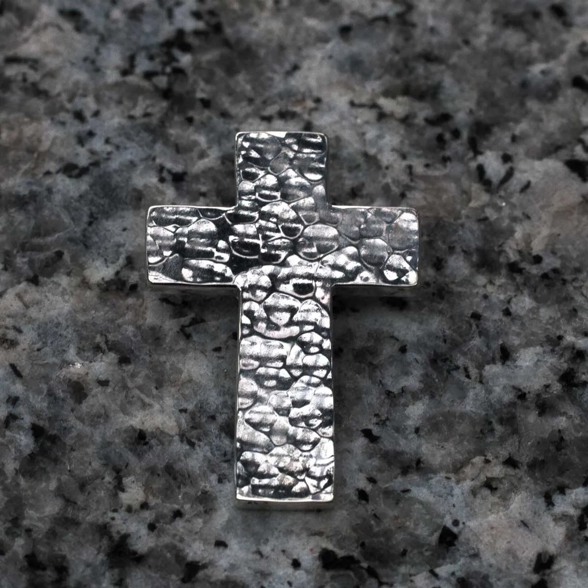 Kreuzanhänger Silber mit rundem Hammerschlag, mit Schlaufen auf der Rückseite
