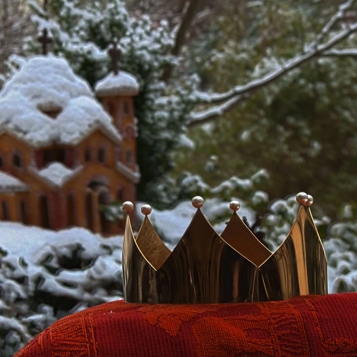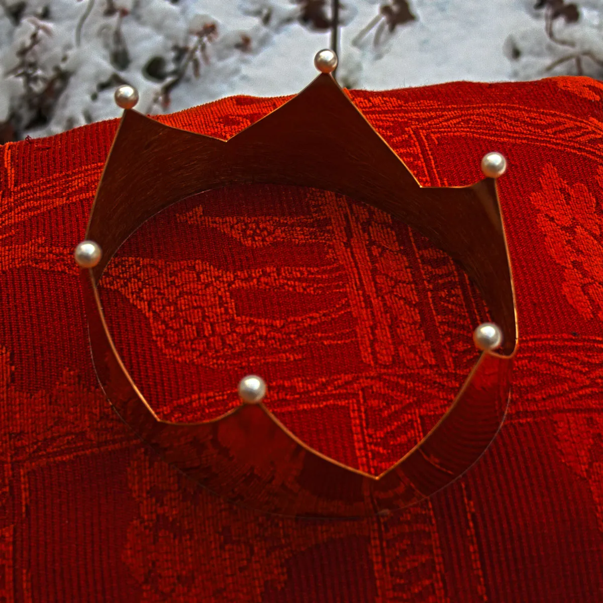 sechszackige Krone aus Messing mit Imitierten Perlen auf den Zacken-Spitzen
