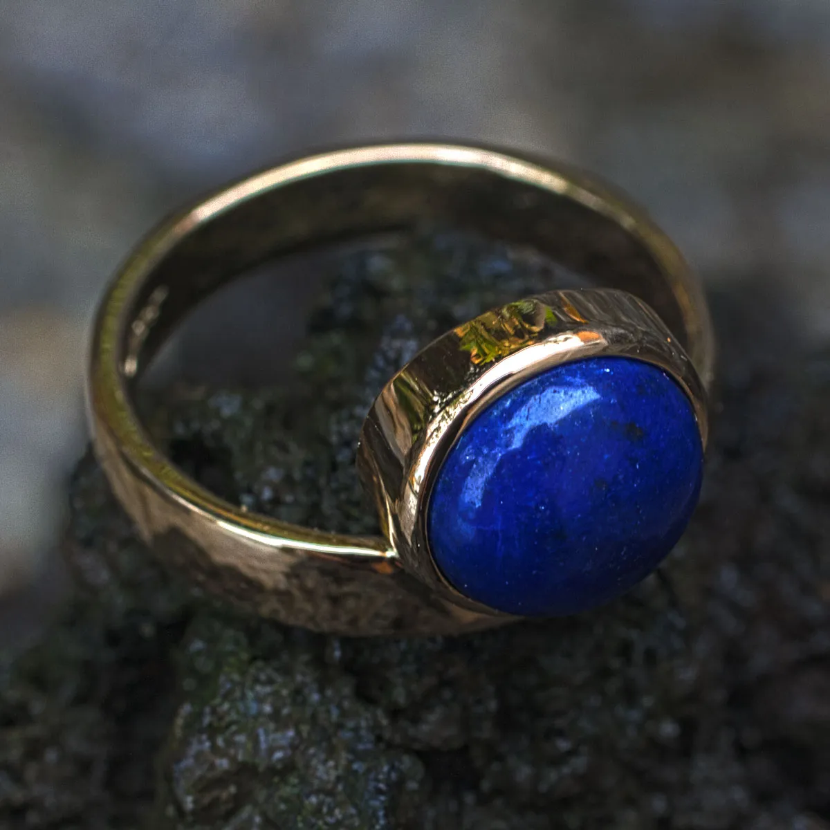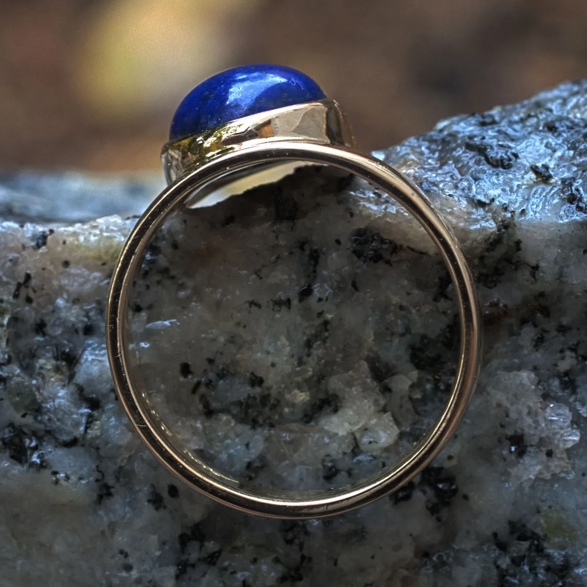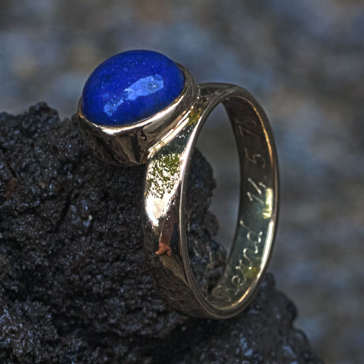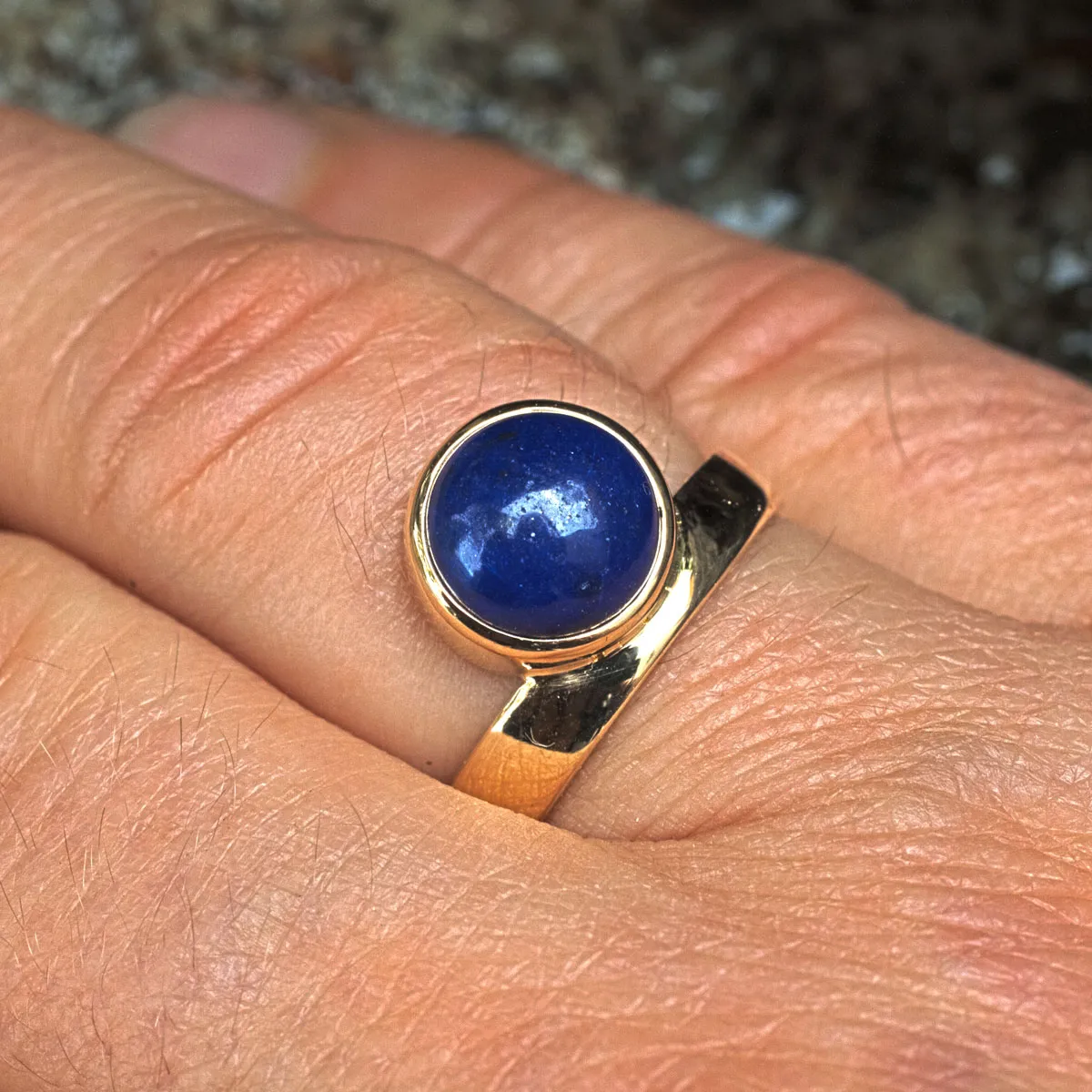 Ehering Gold mit angesetztem Lapislazuli-Cabouchon in Goldfassung Ring mit Stein