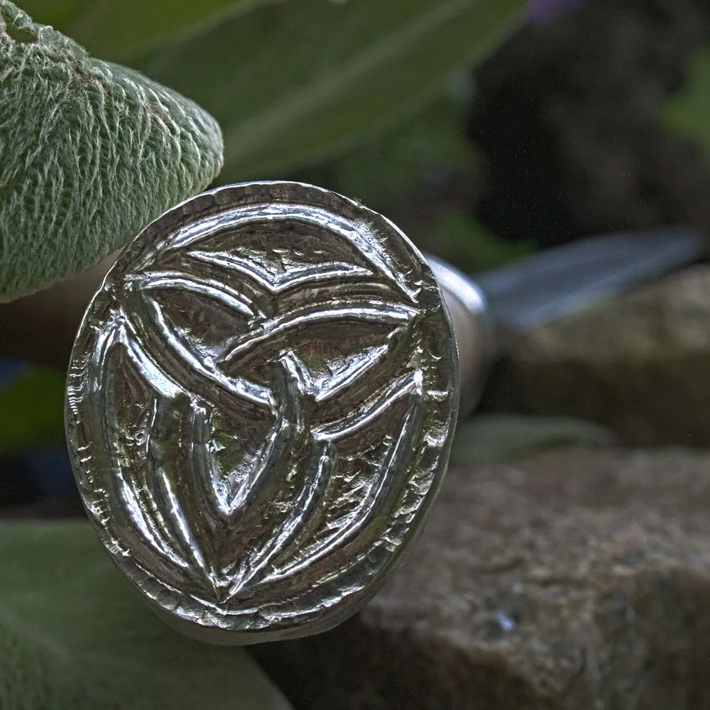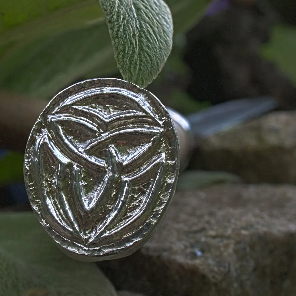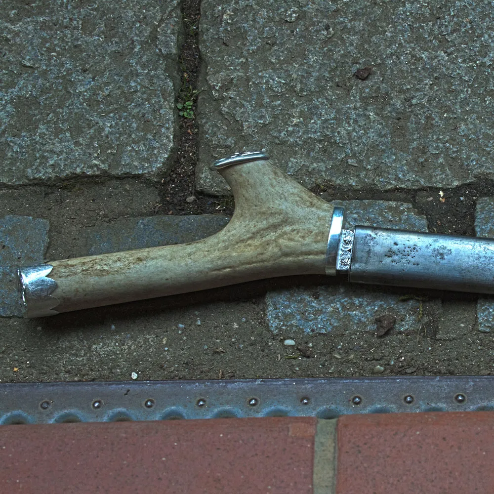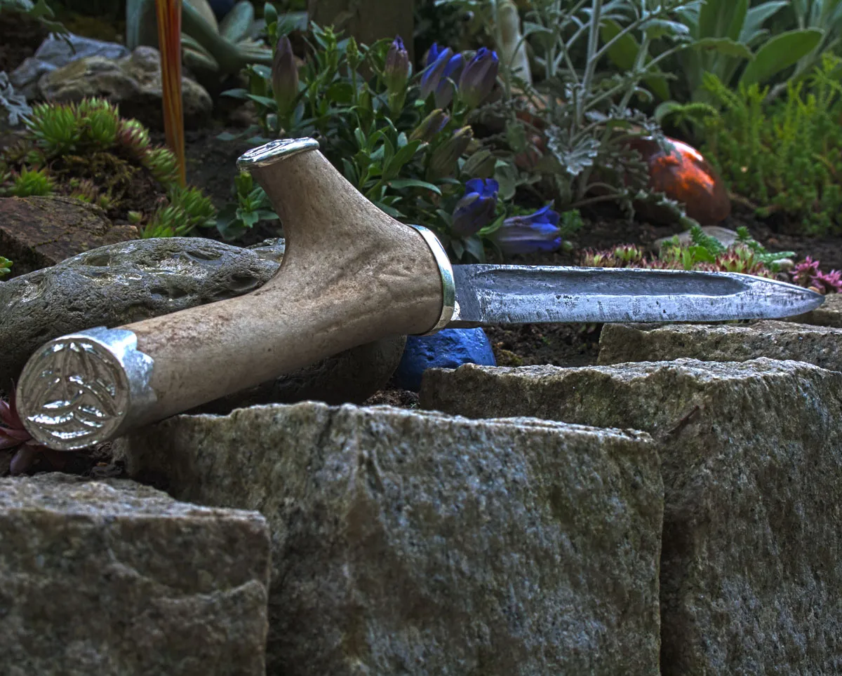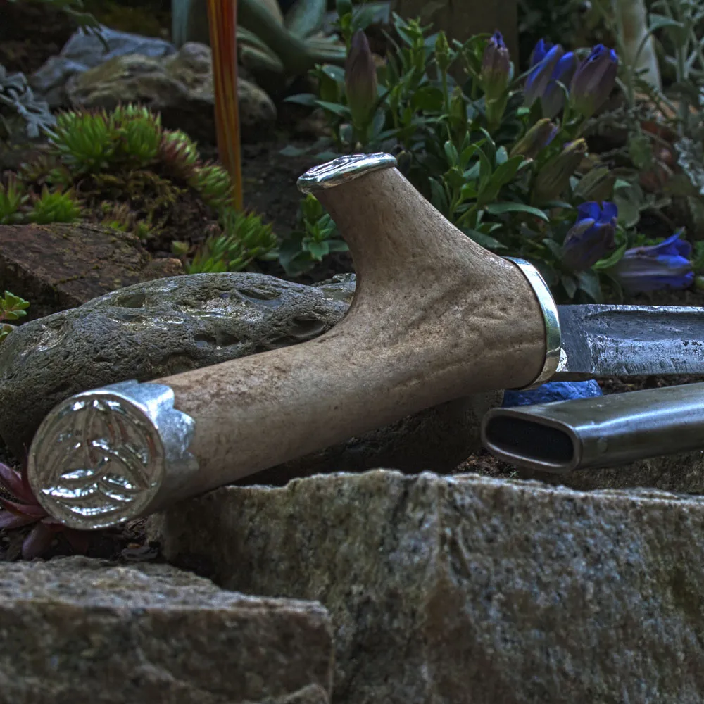 Messergriff aus Hirschhorn mit Endkappen aus Silber mit ziseliertem Wotansknoten