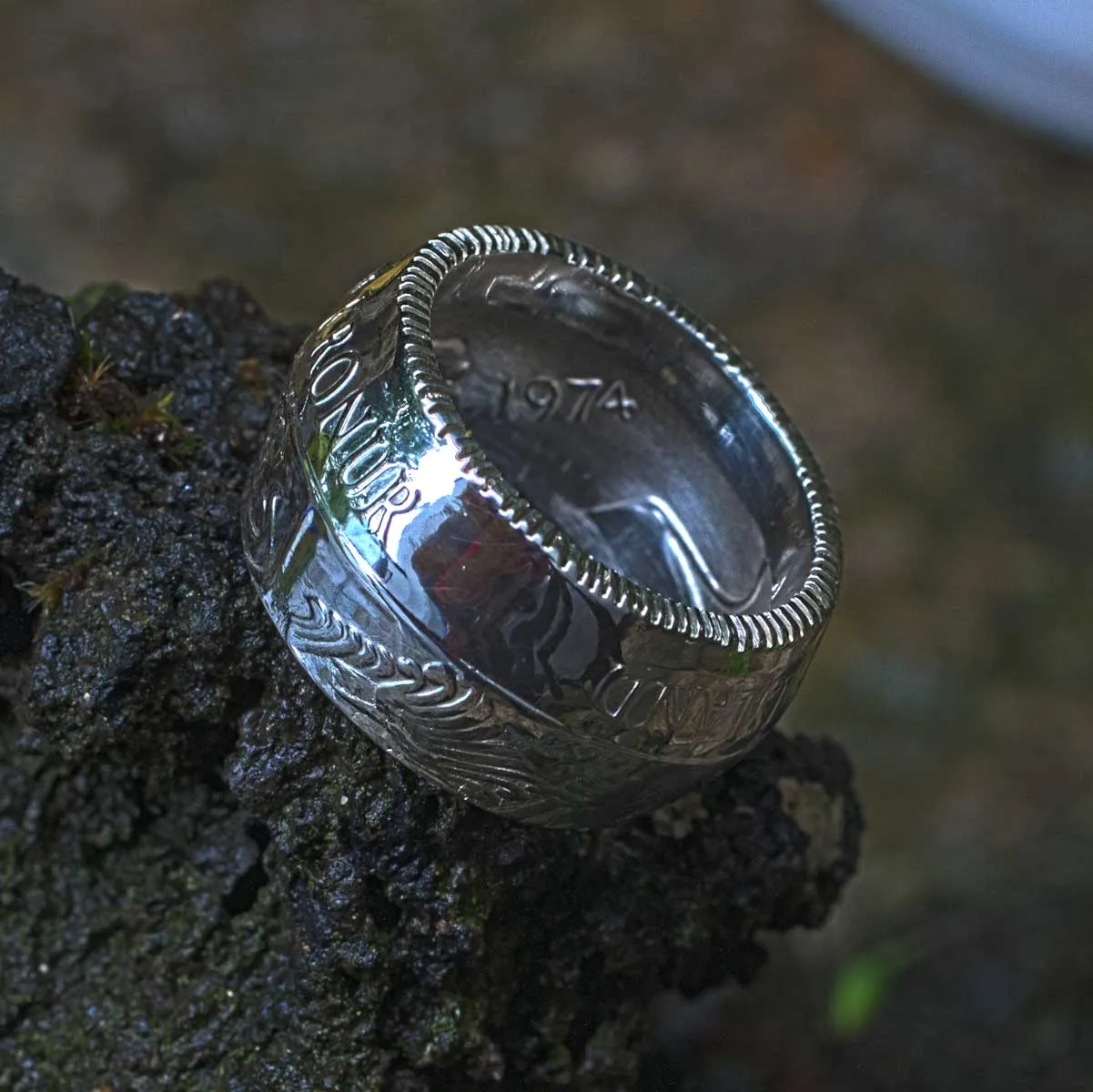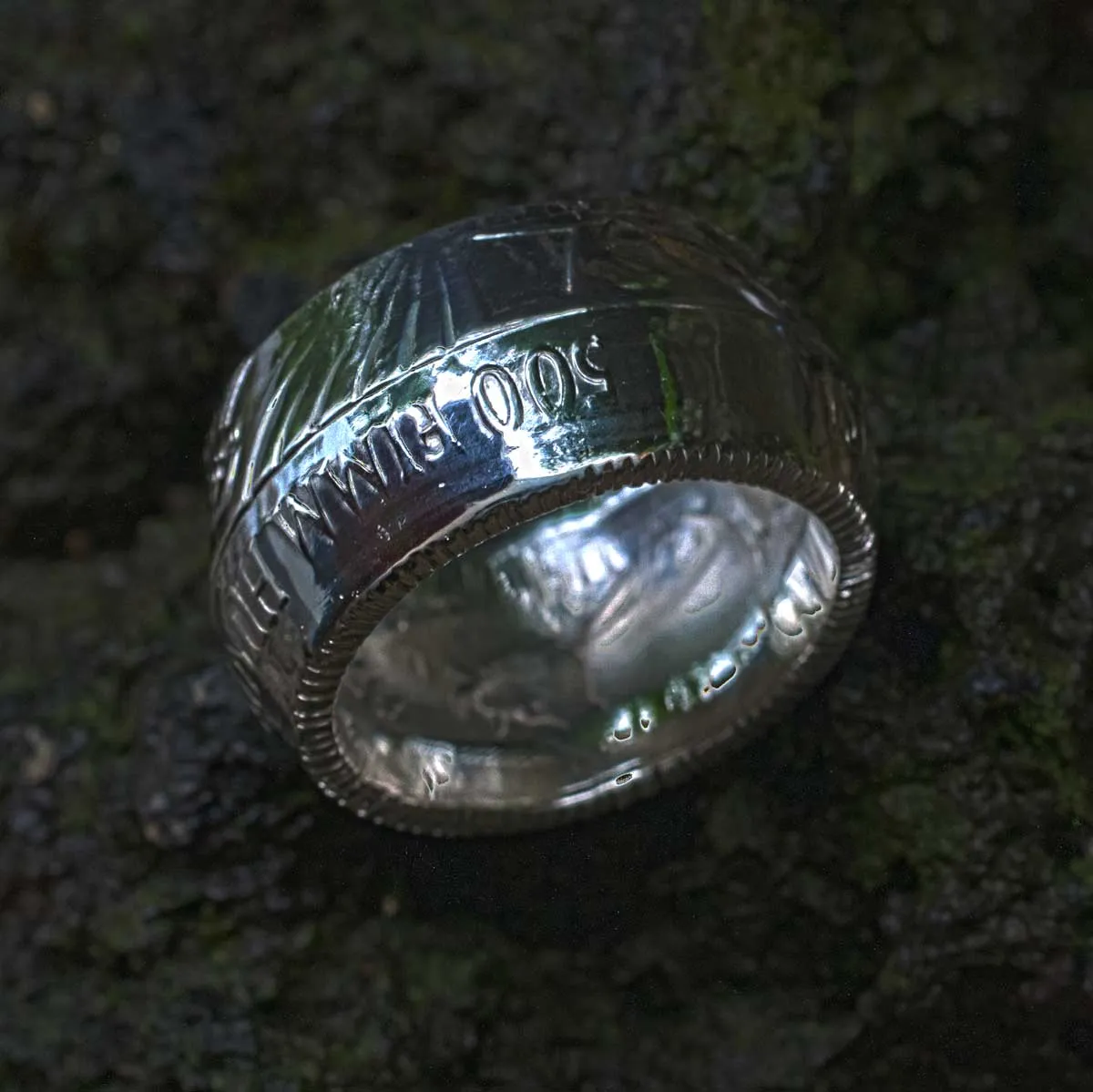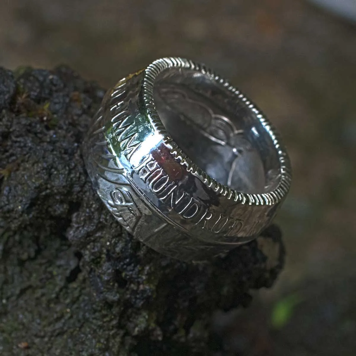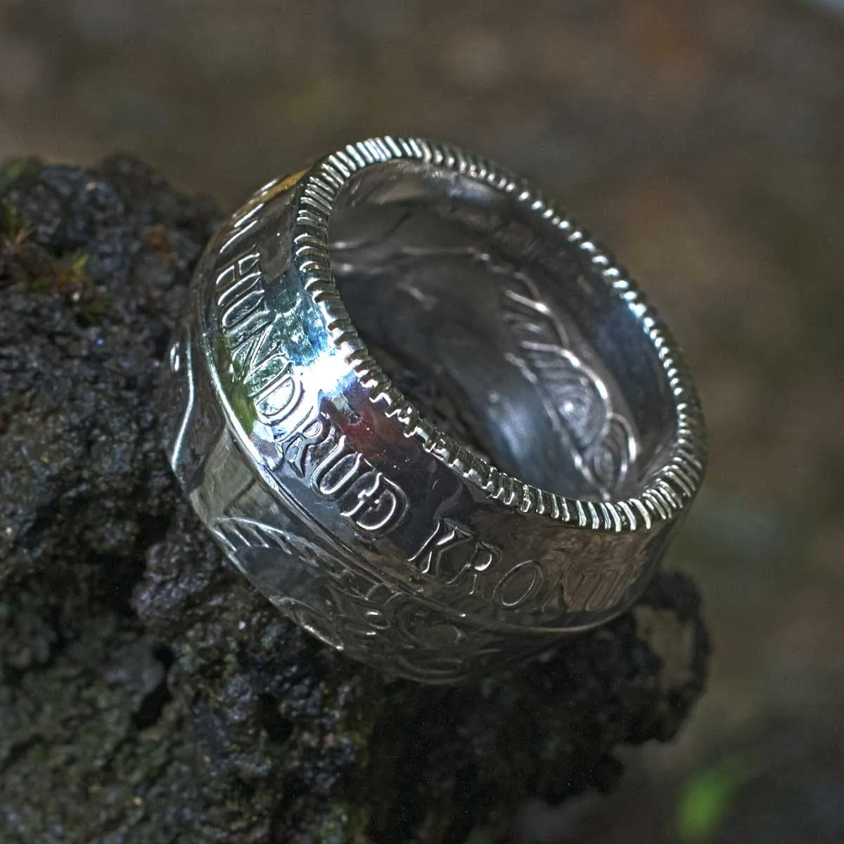 Ring und Anhänger aus einer isländischen Silbermünze als Eheringe