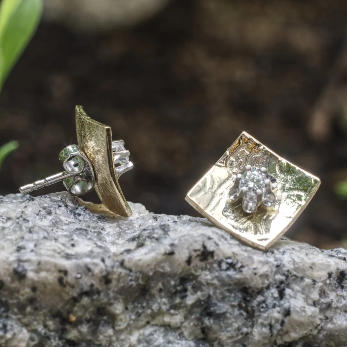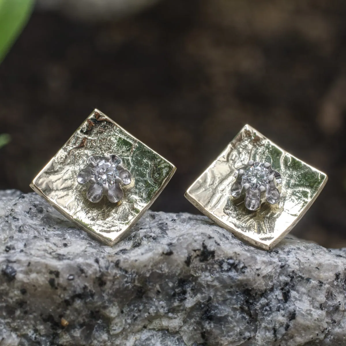 Quadratische Beilagscheiben Gelbgold für Ohrstecker mit Häkeldraht-Muster