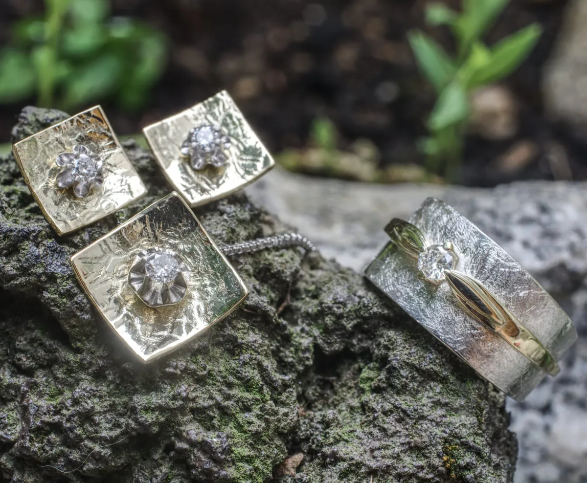 • Weißgoldfassungen mit Stein (vom Kunden)