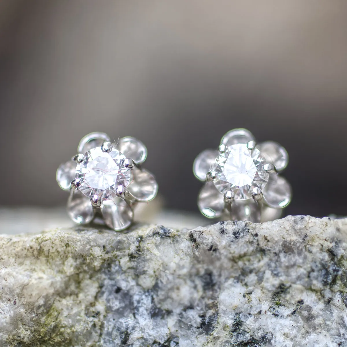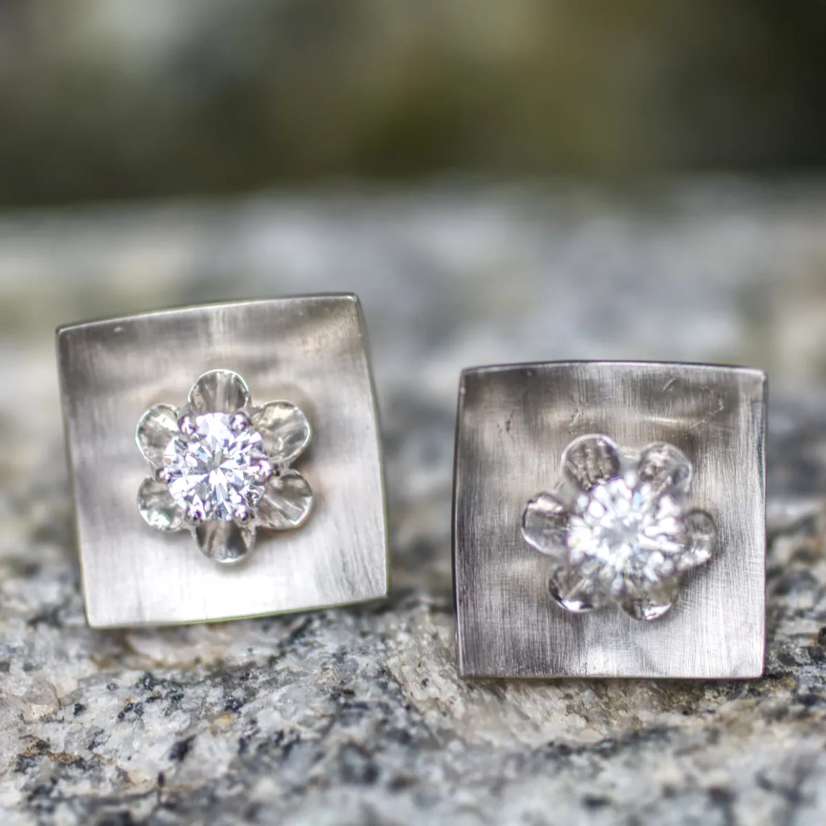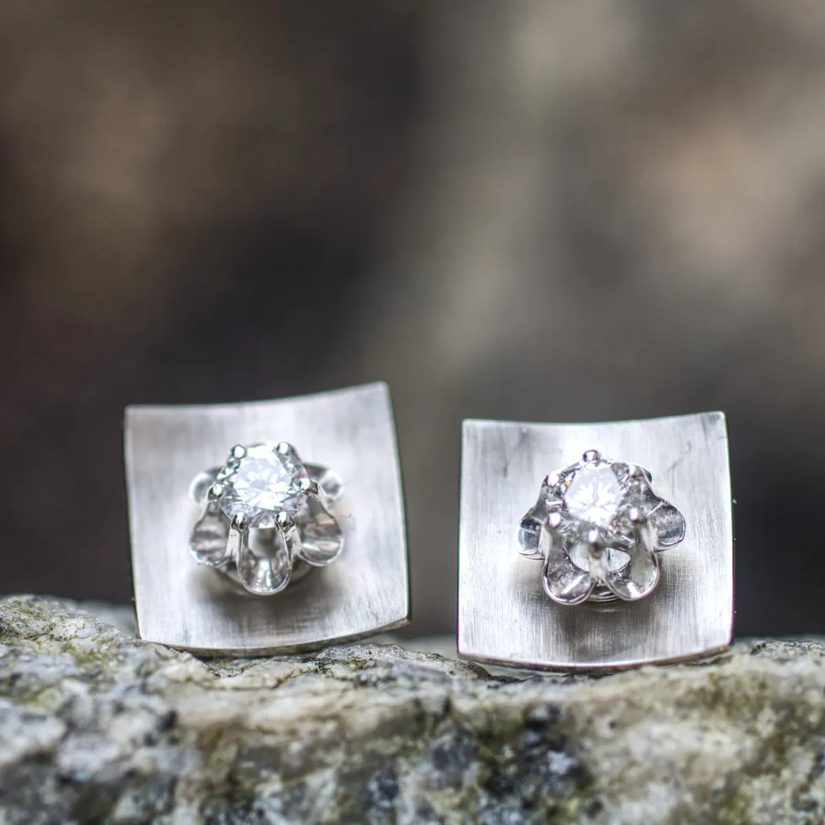 Ohrstecker Brillant in Weißgold-Krappenfassung mit Beilagscheibe quadratisch konkav
