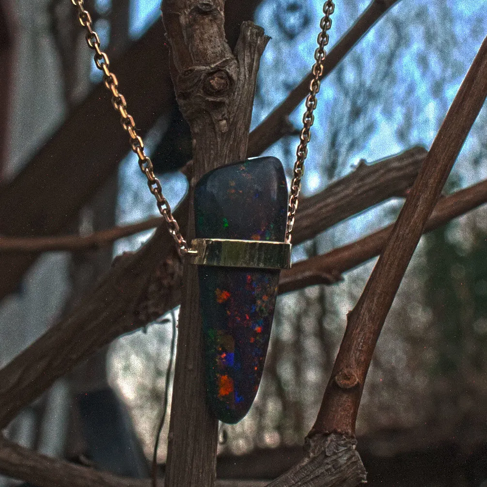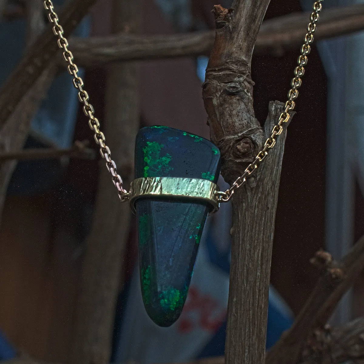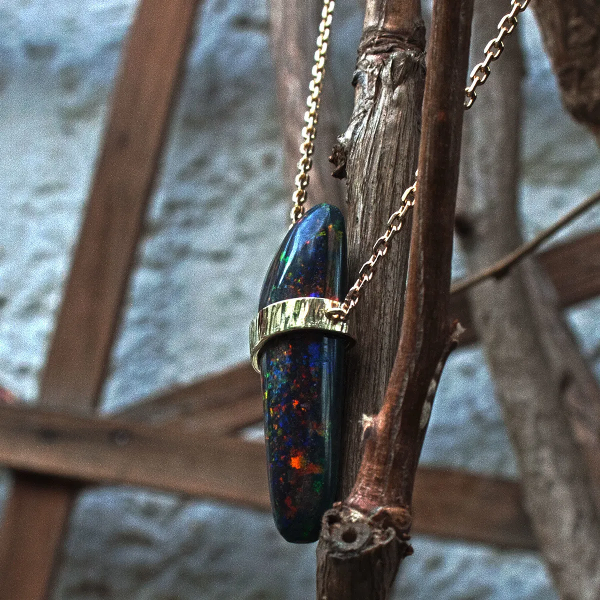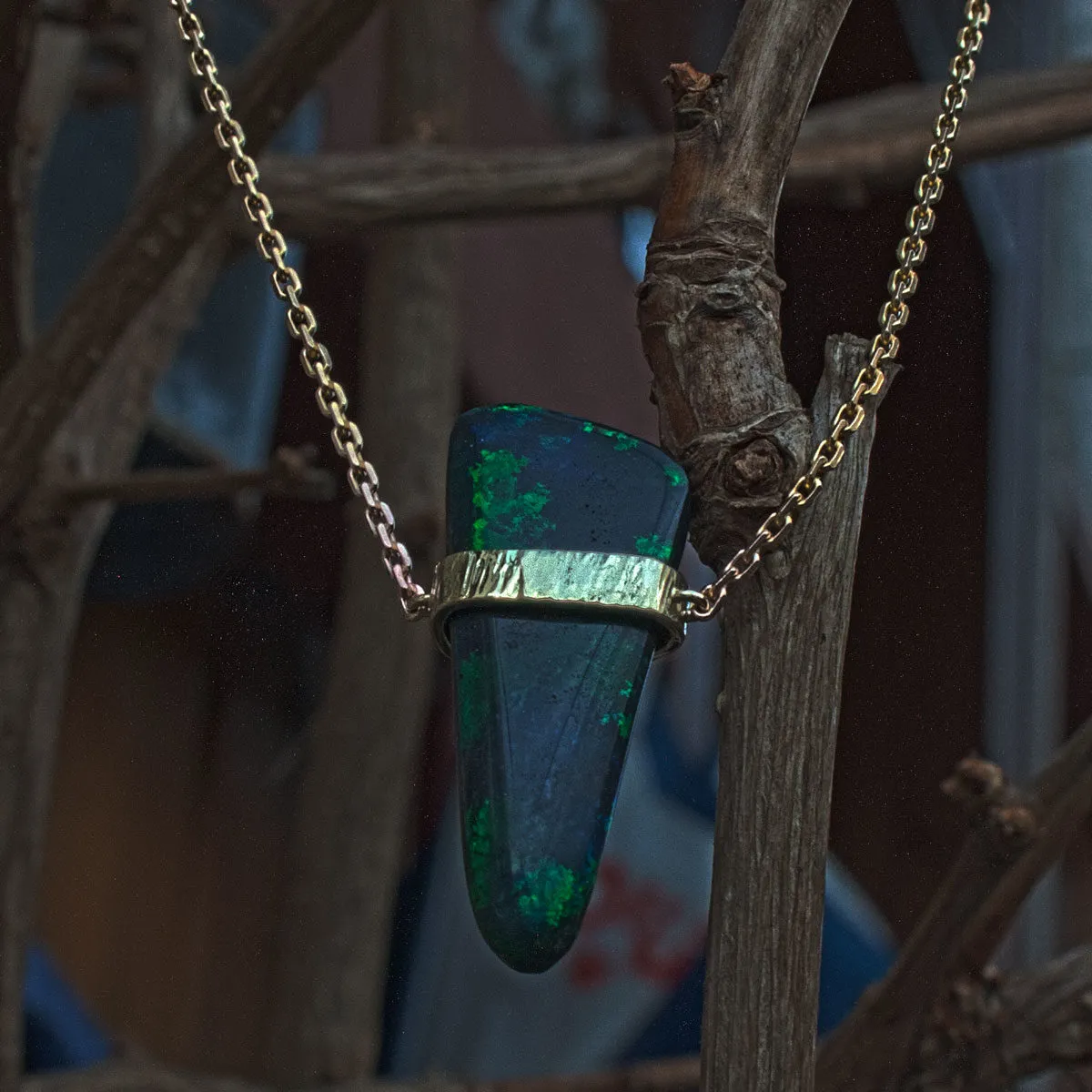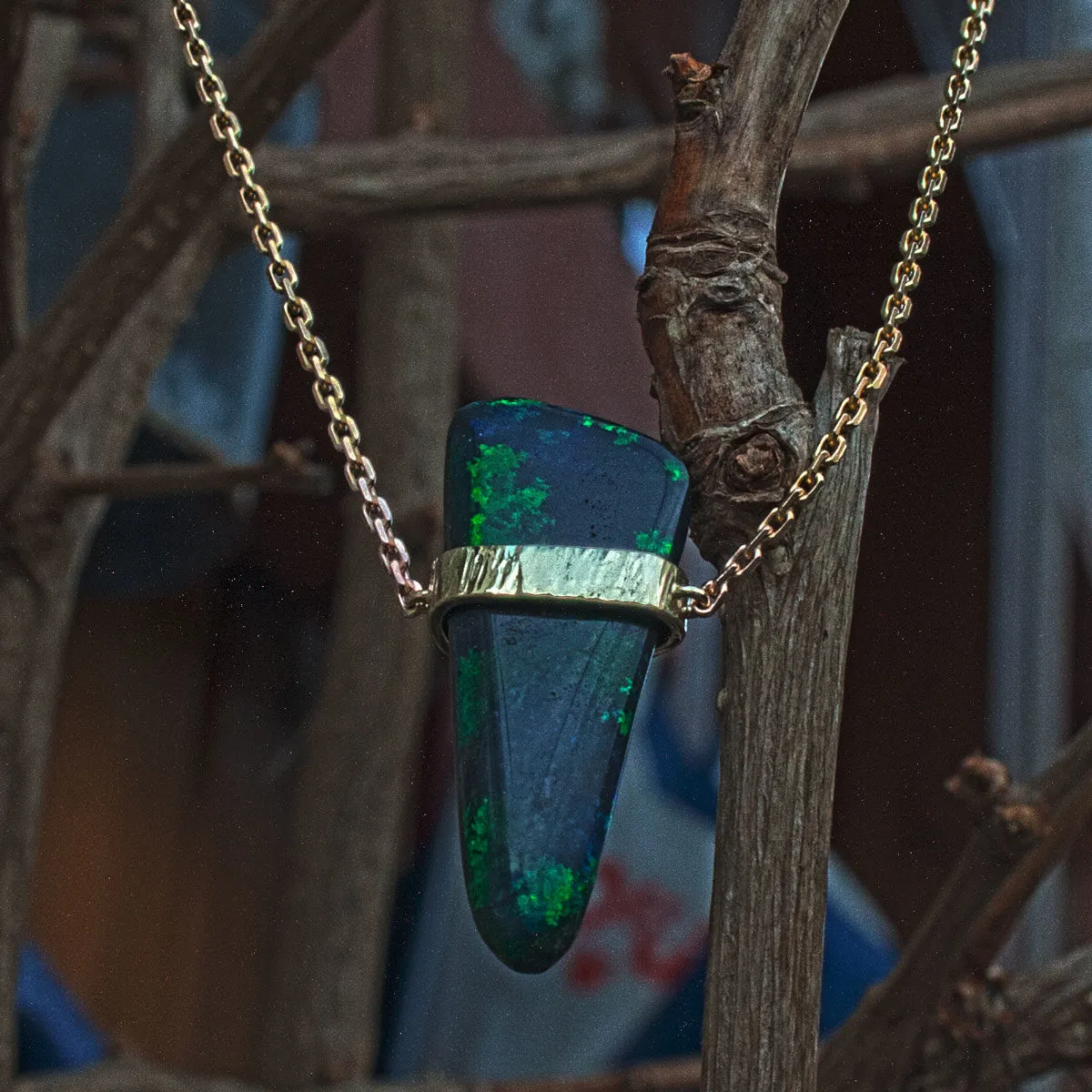 Opal-Cabouchon mit Goldband gefasst als Mittelteil einer Goldkette