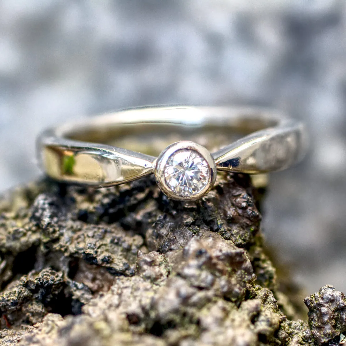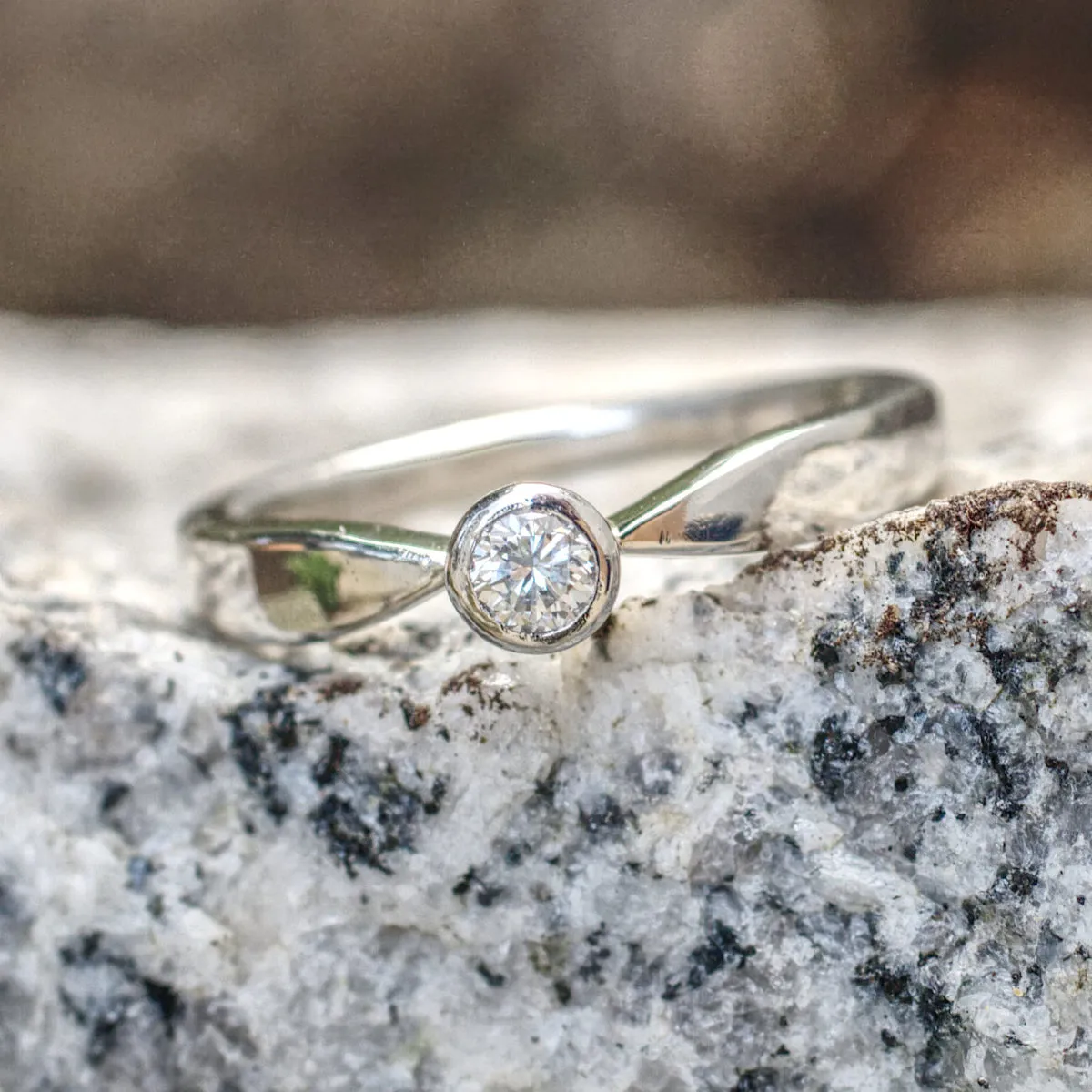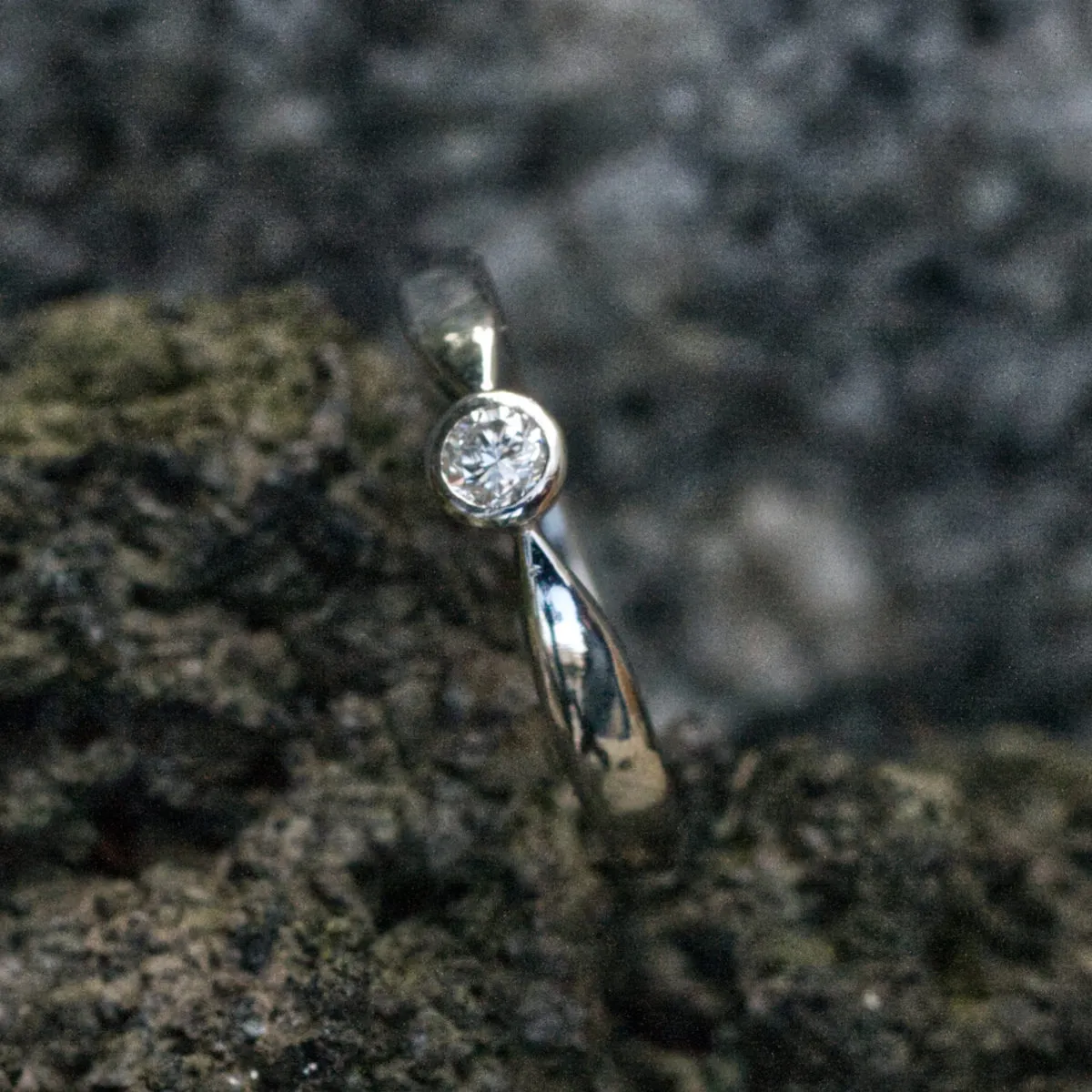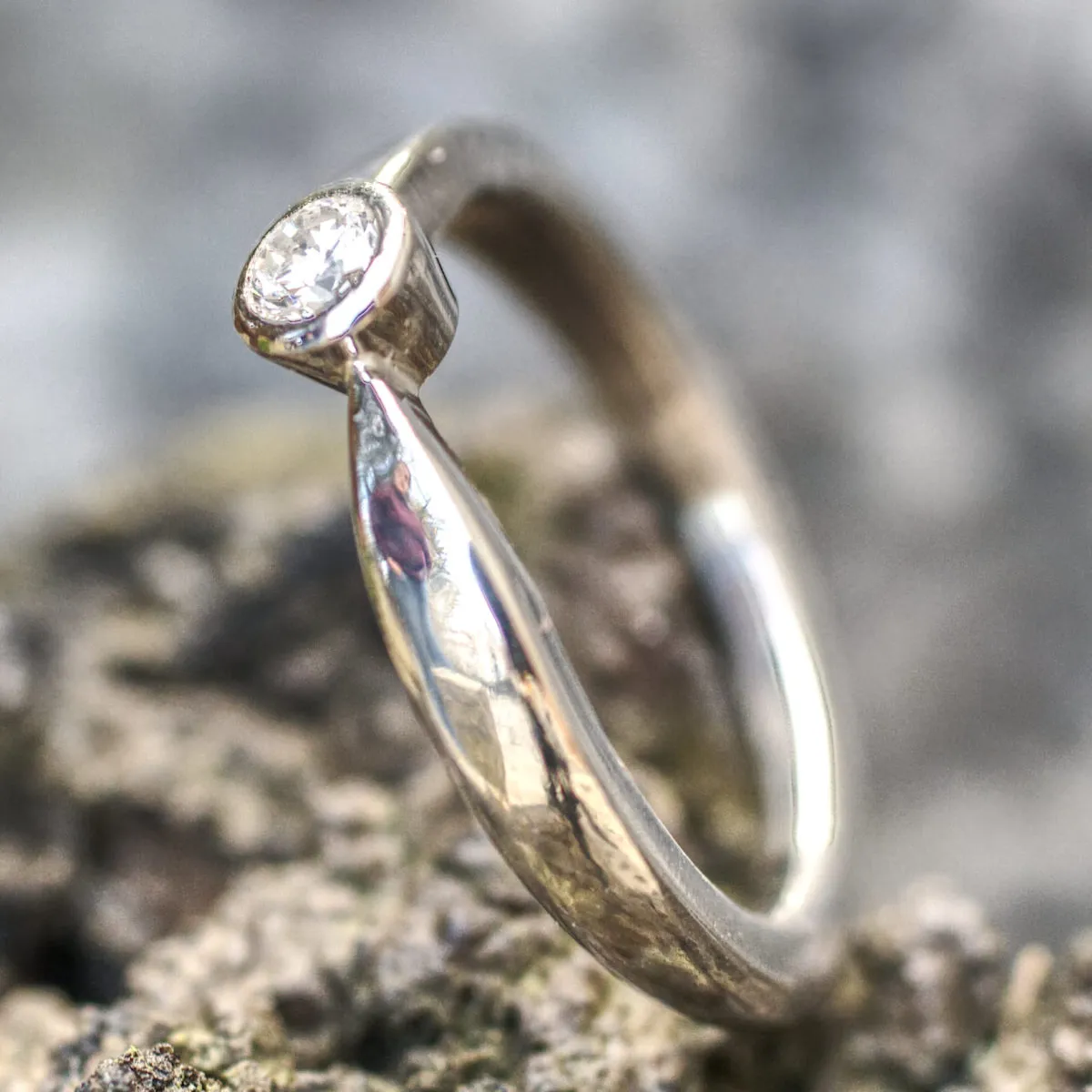 Brillant in konischer Zargenfassung in Zungenschiene mit Verlauf