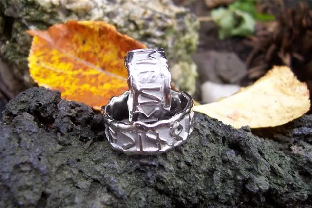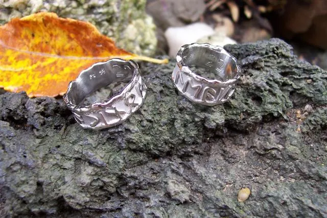 Platinringe mit aufgesetzten Runen und Schmorrand