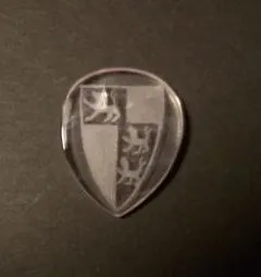 Plektron aus Bergkristall mit graviertem Wappen