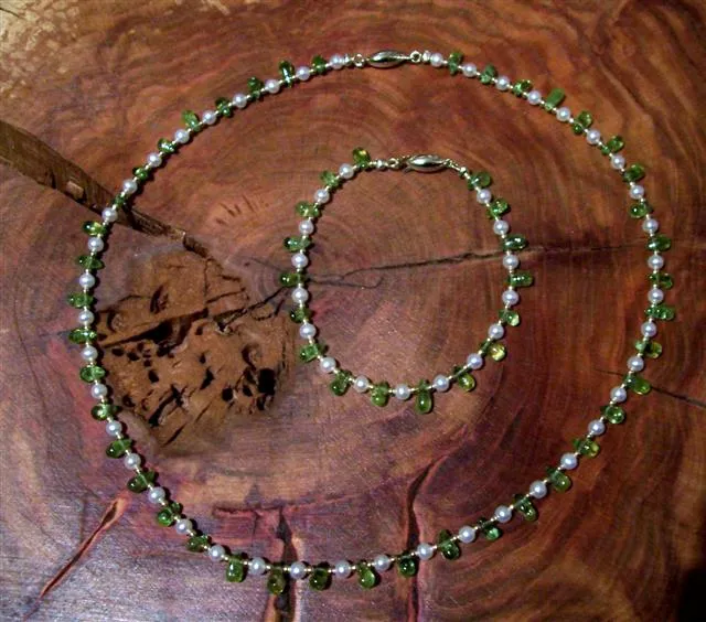 Prenithtropfen-Perlen-collier und Armband mit Goldschließe
