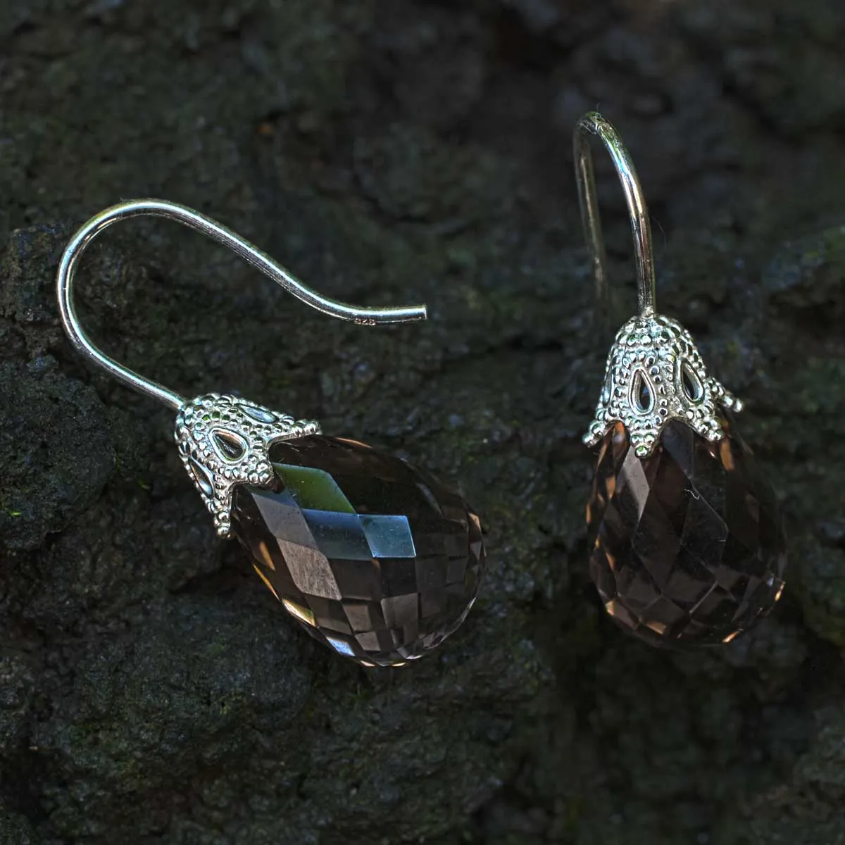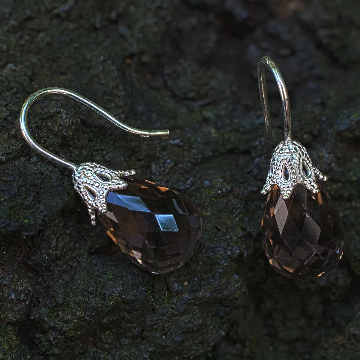Ohrbügel mit Filigrantulpe in Silber mit facettierter Rauchquarz-Pampel