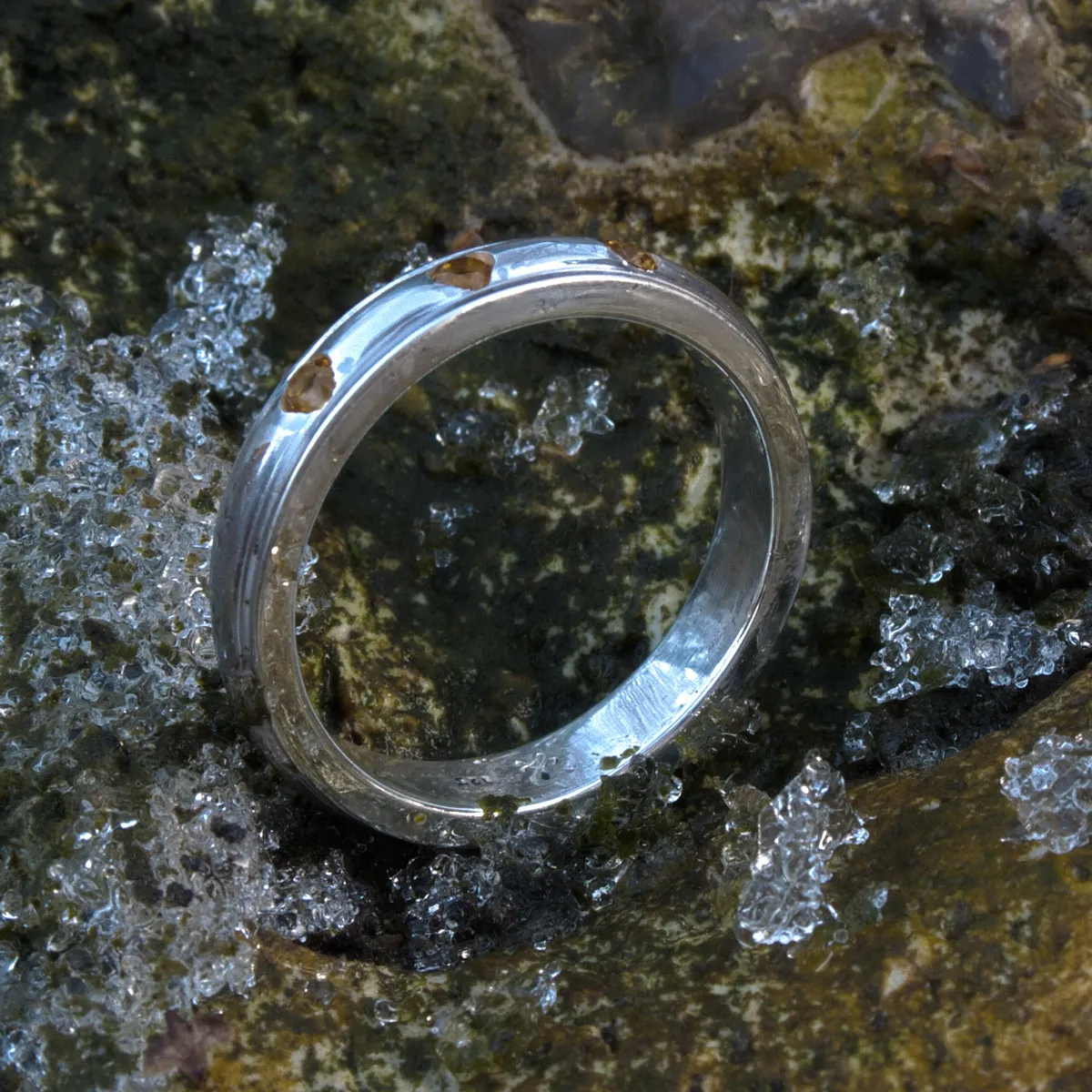 Silberring mit drei eingeriebenen Goldtopasen