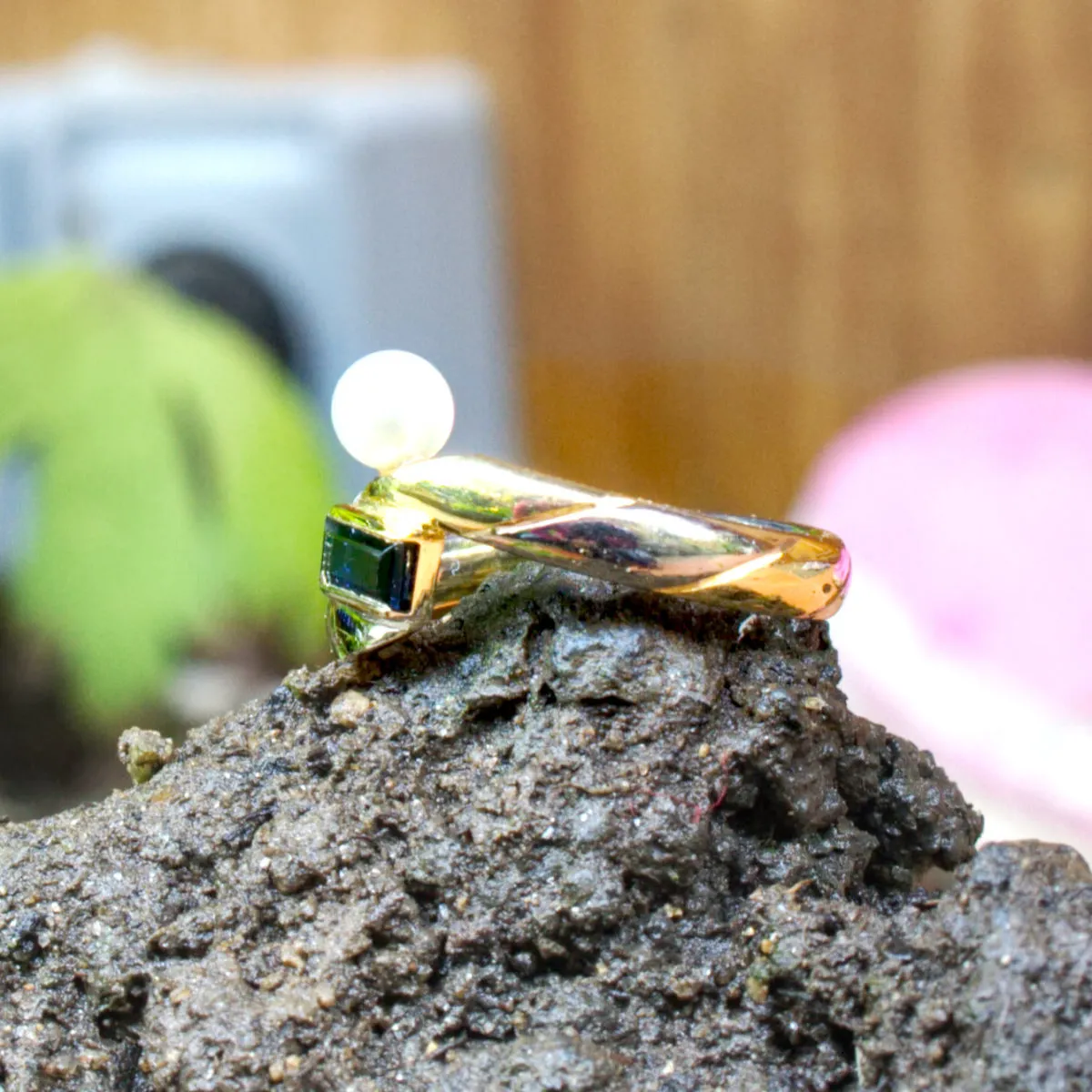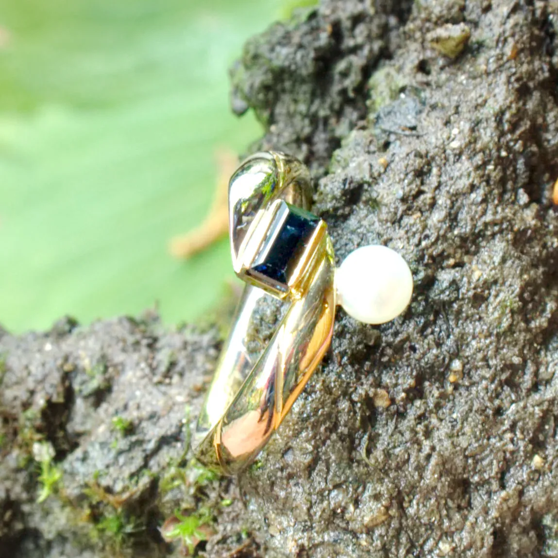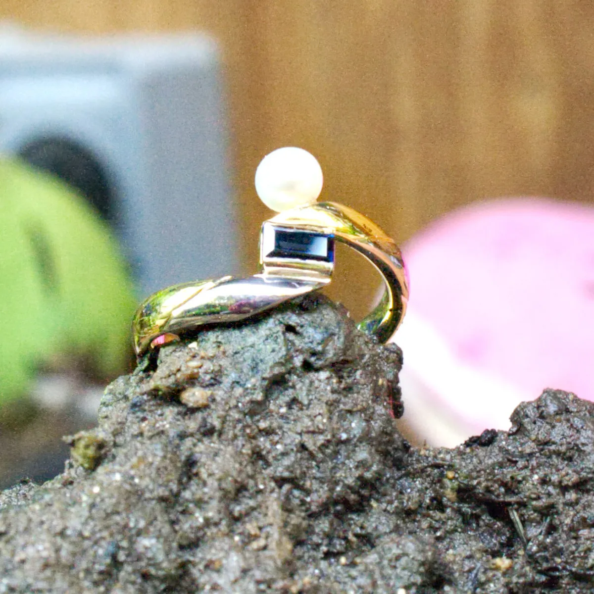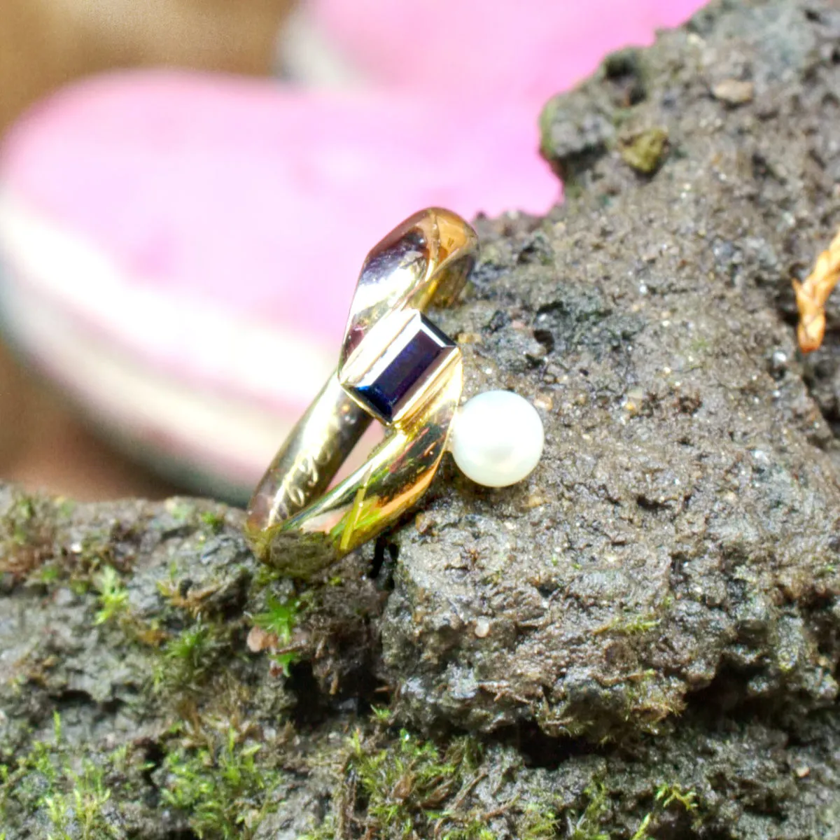 Umarbeitung eines angelieferten Eherings in einen Ring mit Saphir in einer Zargenfassung und eine