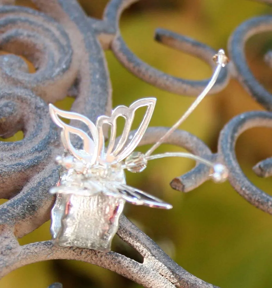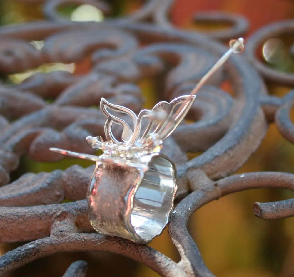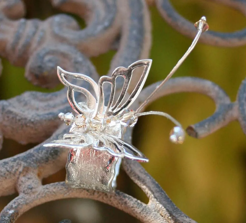 Silberring mit Schmorrand und aufgesetztem Schmetterling mit Swarowski-Rhomben