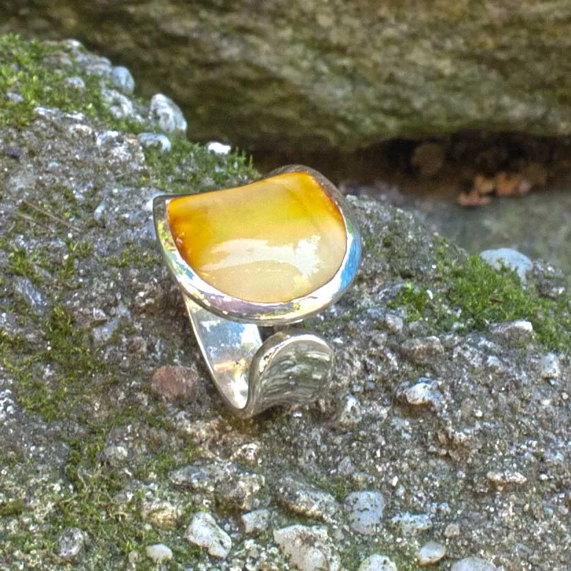 Spannring Silber mit eingeschliffenem Bernstein-Cabouchon