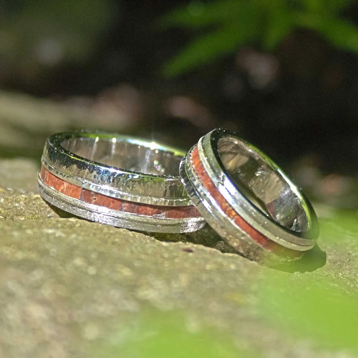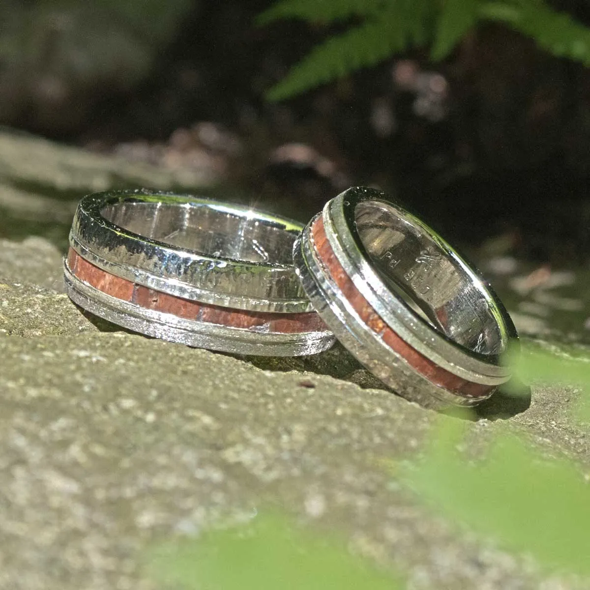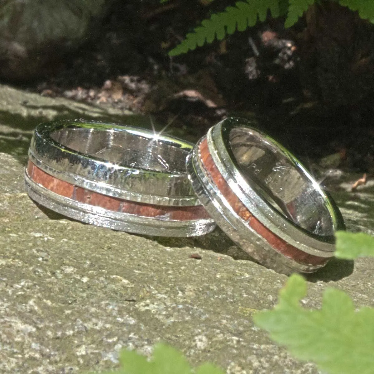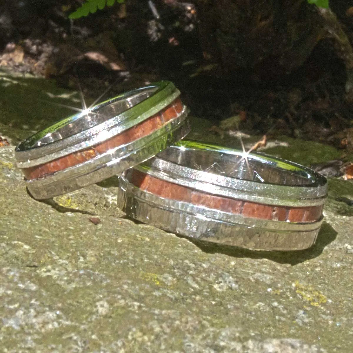 Silberringe mit eingefasstem versteinerten Holz