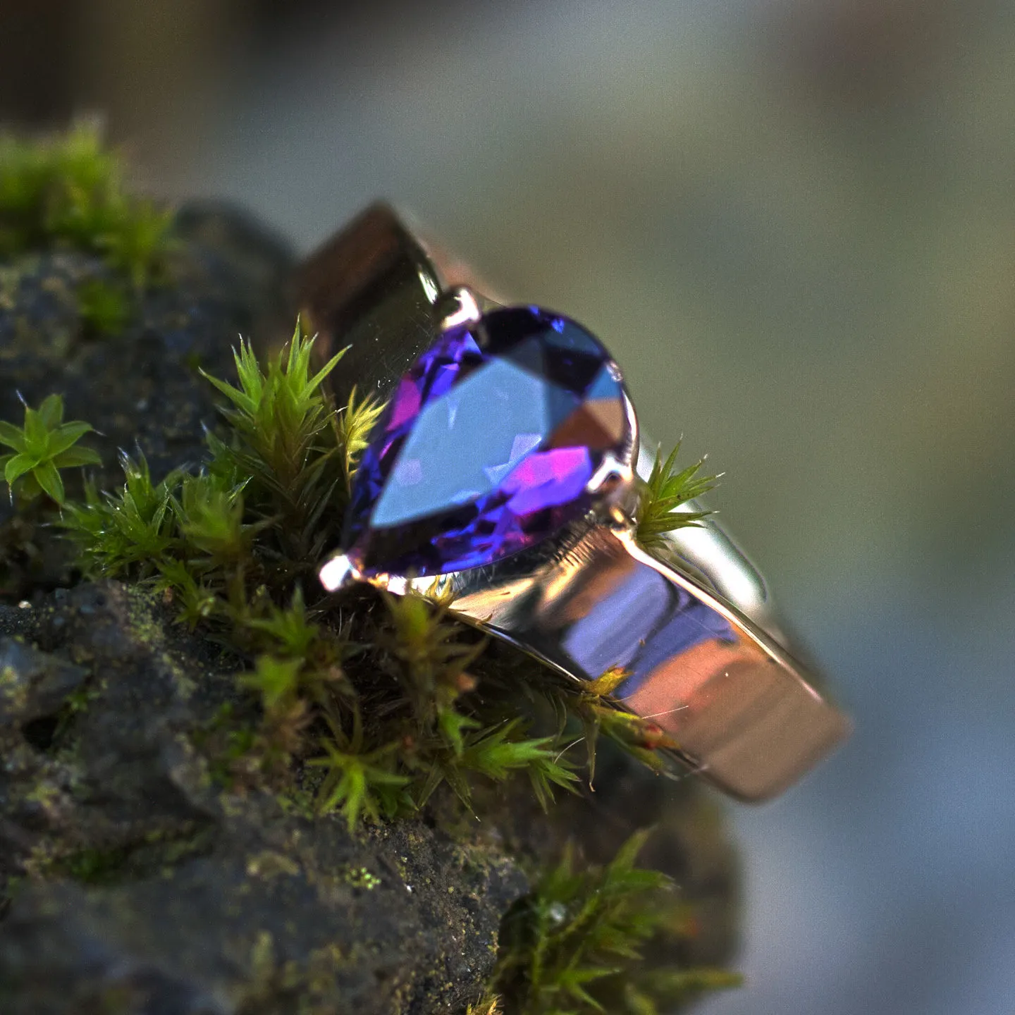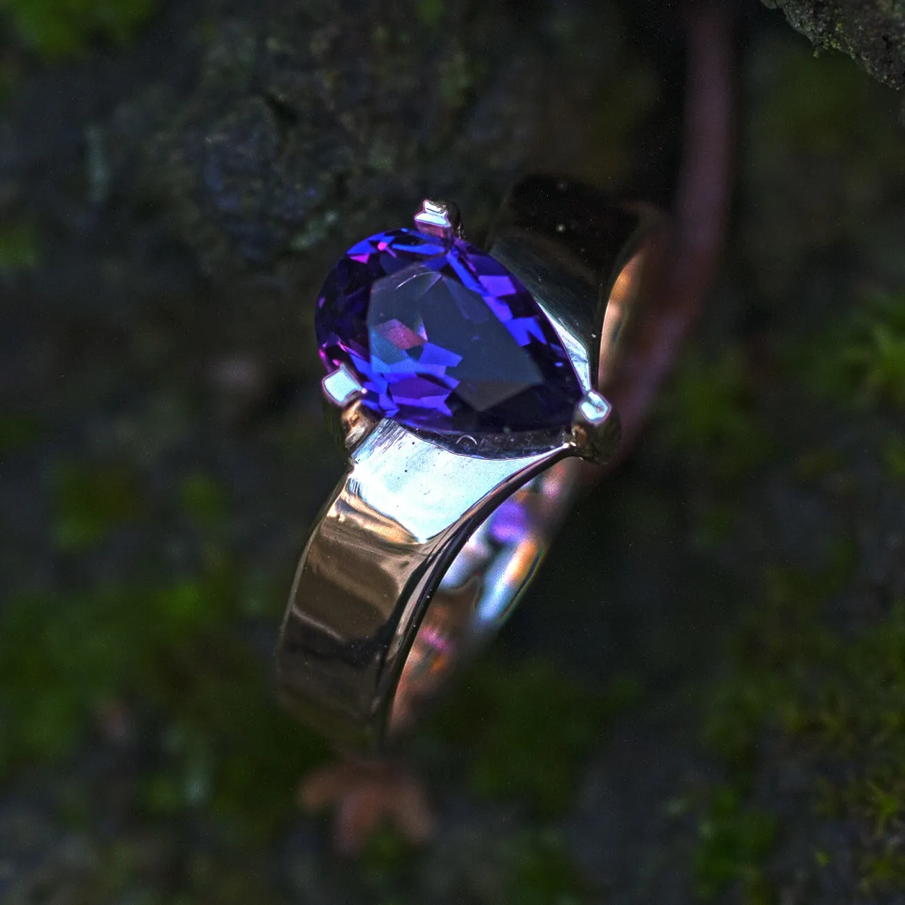 Gelbgoldring 585/°°° mit tropfenförmig facettiertem Amethyst