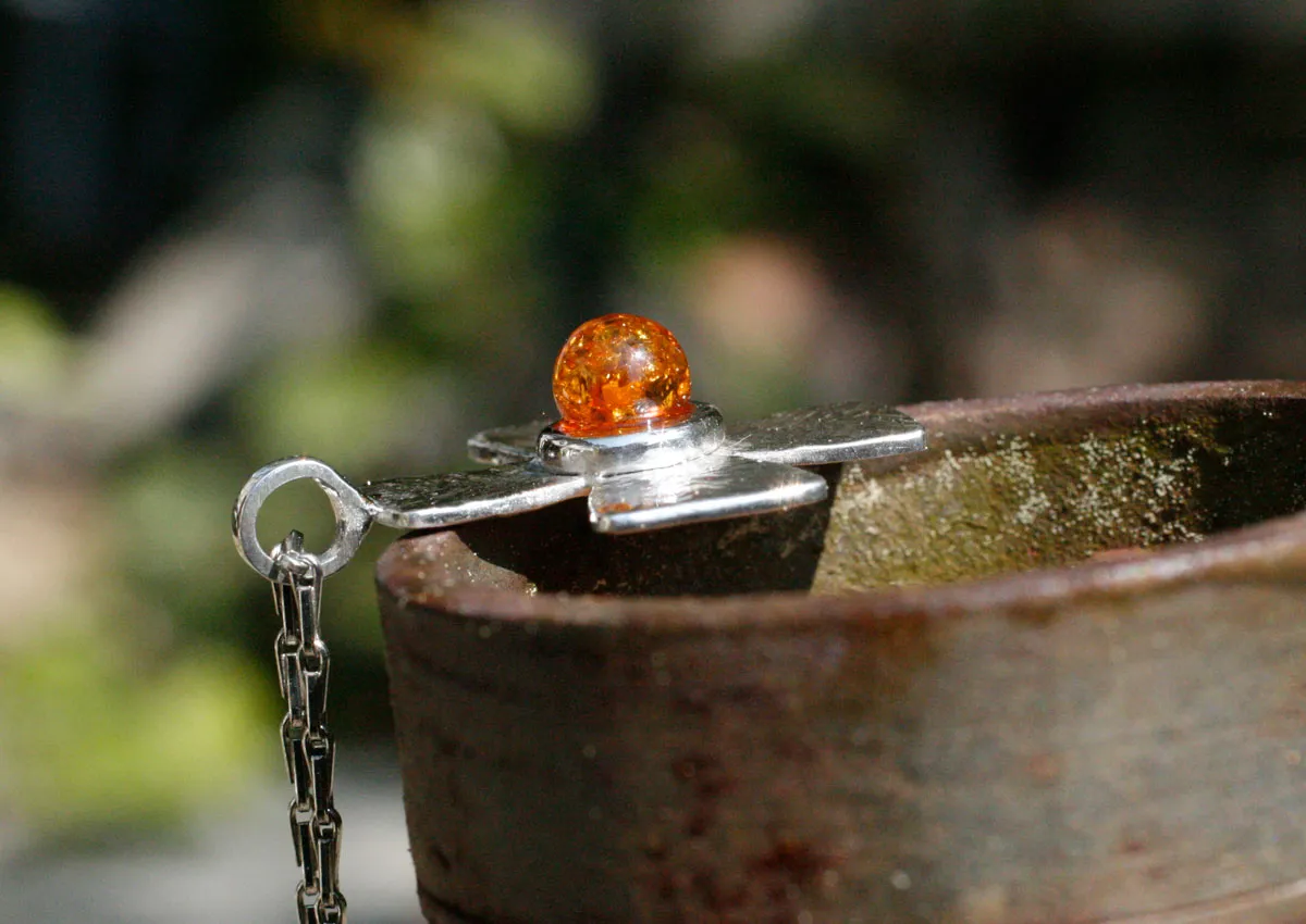 Taufkreuz Silber mit Bernstein,Anhänger/Amulett