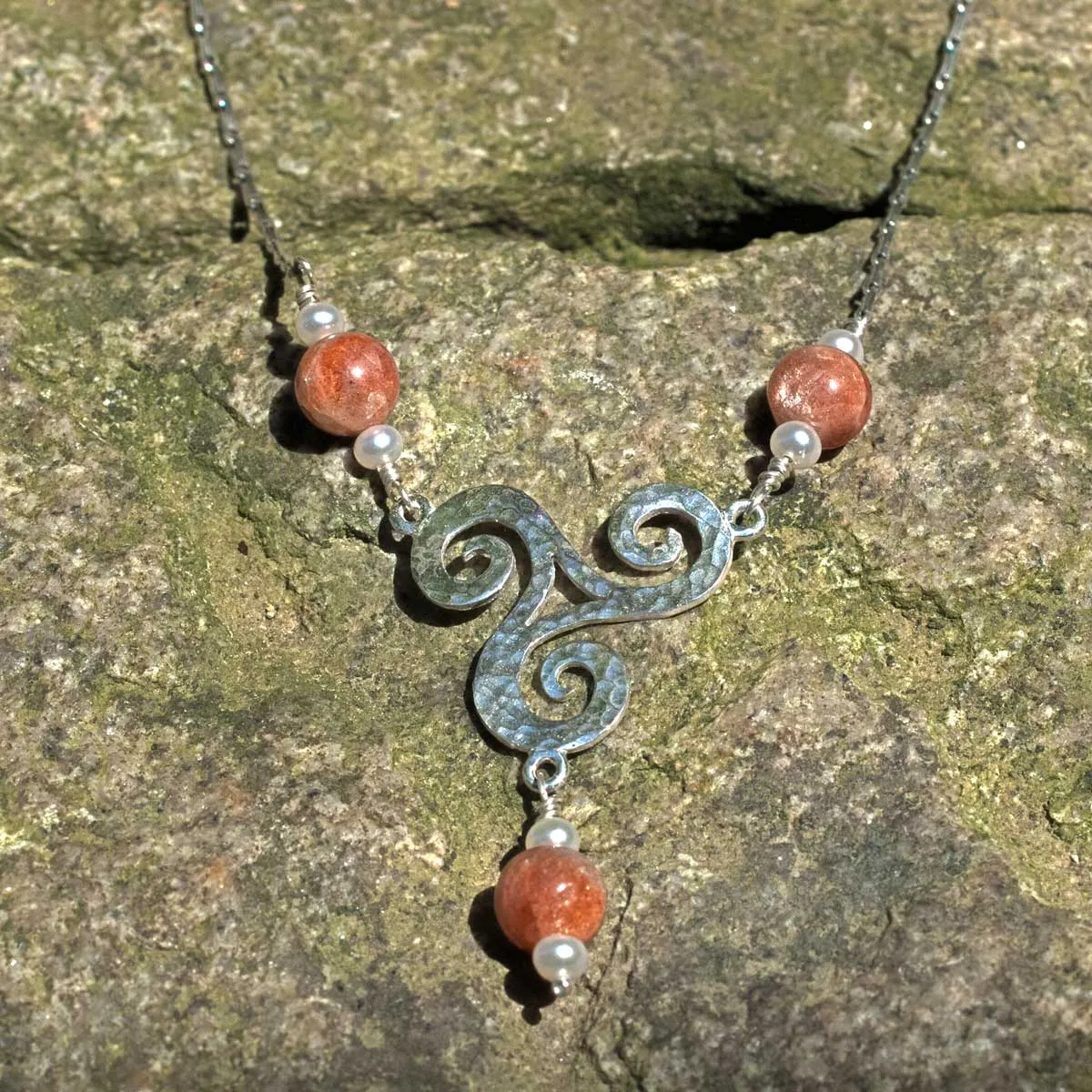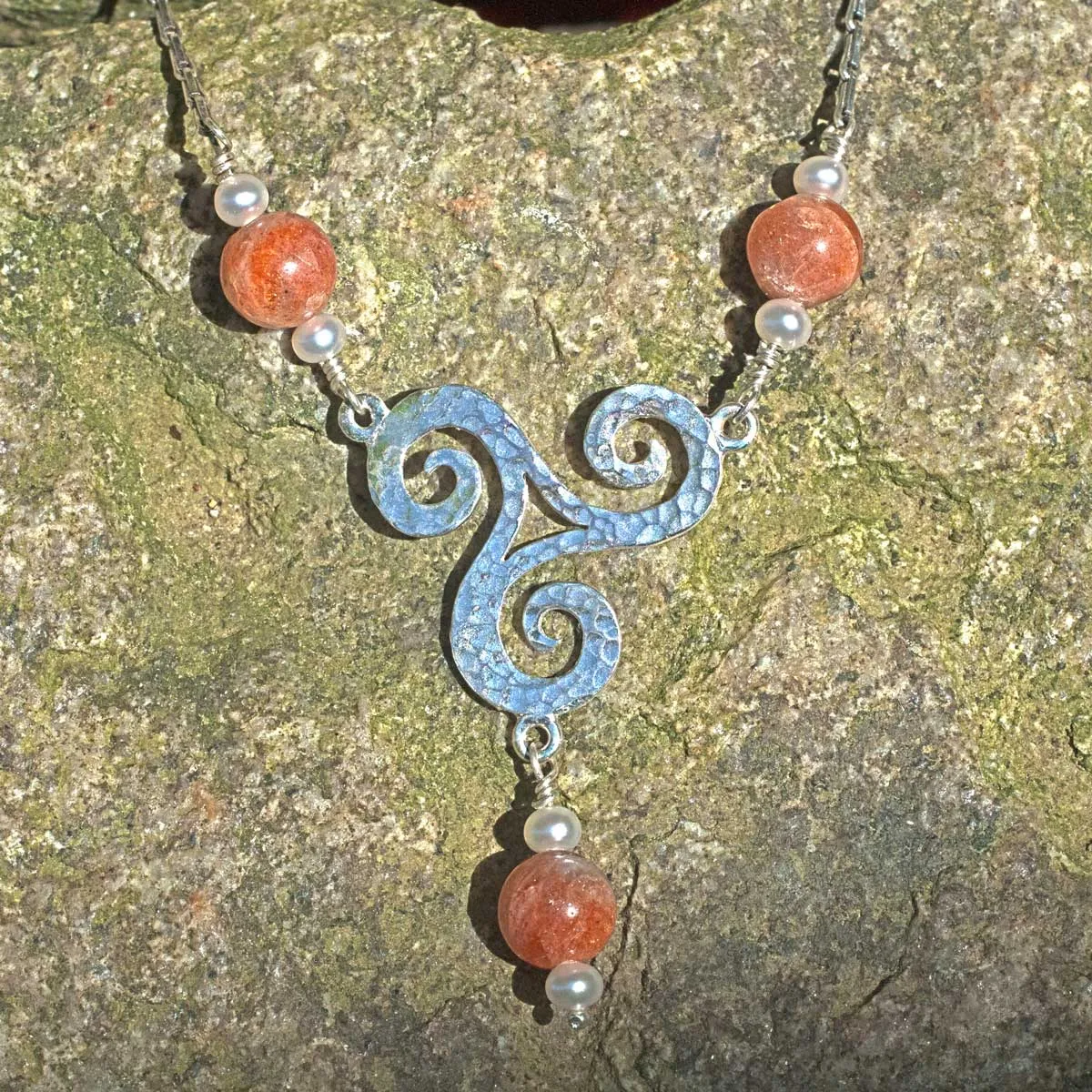 Triscele mit Sonnenstein und Perlen