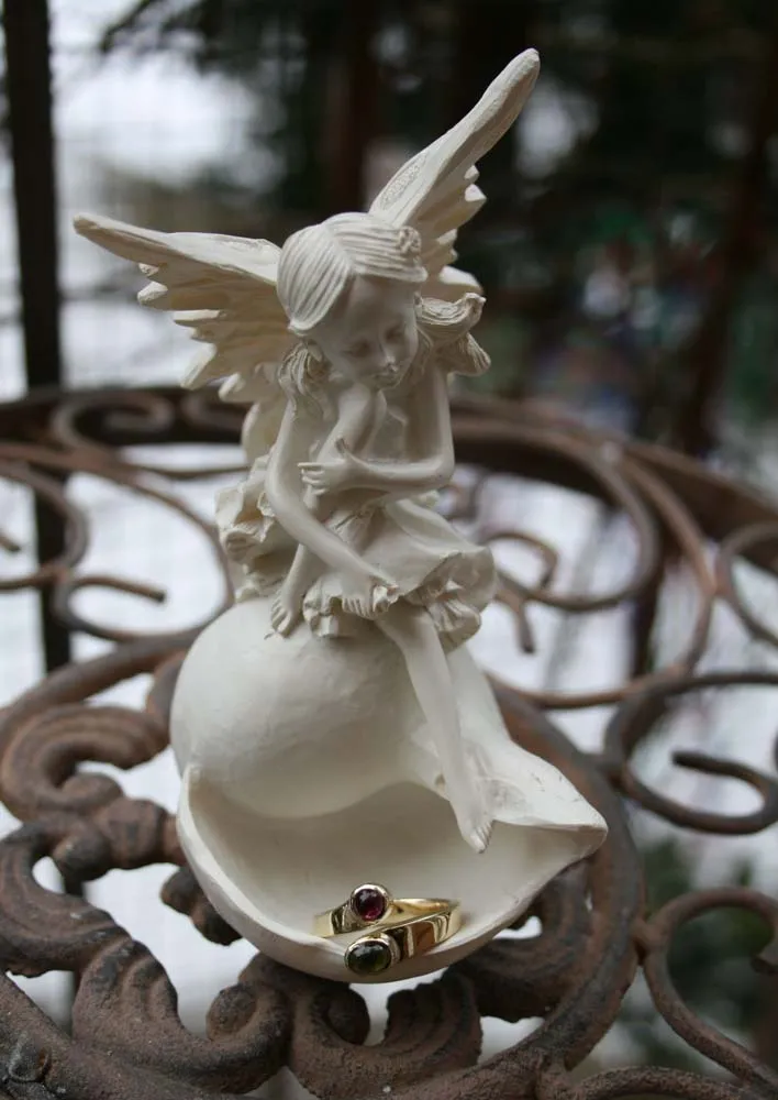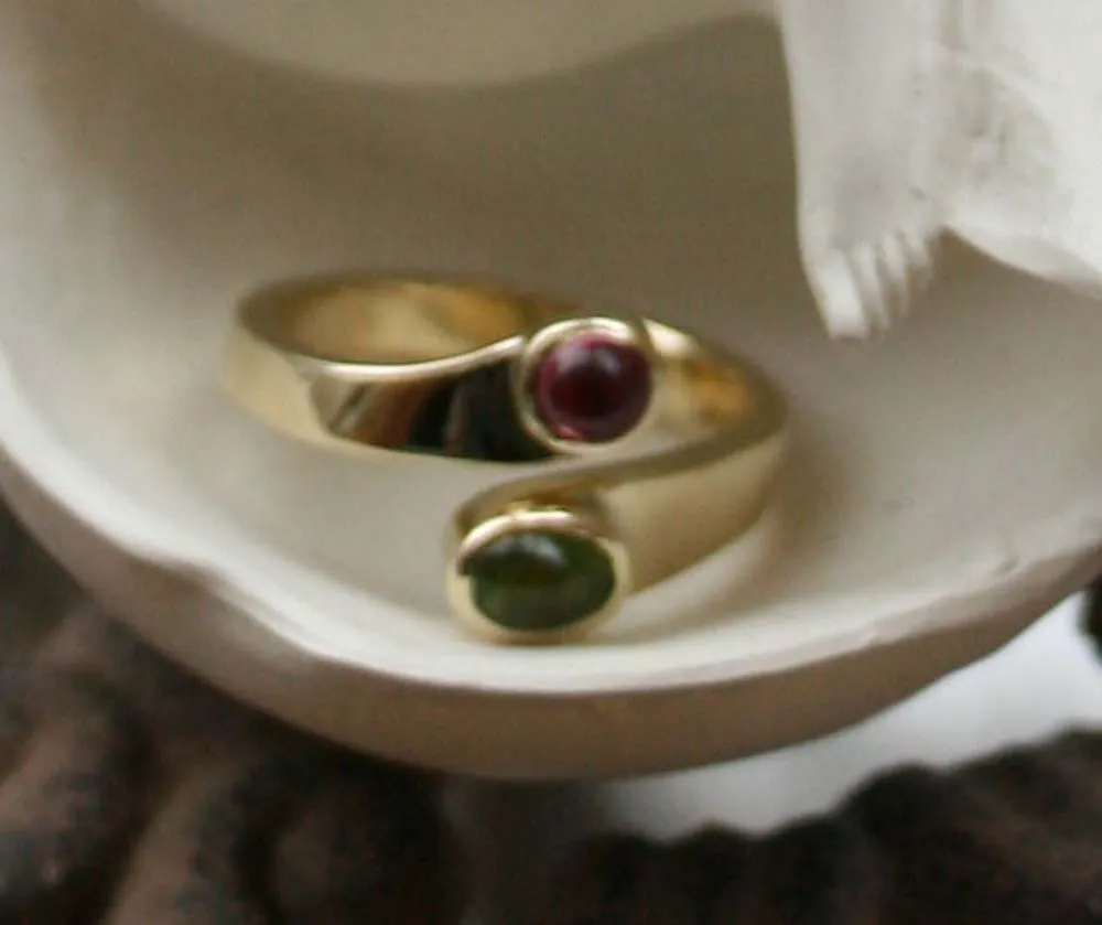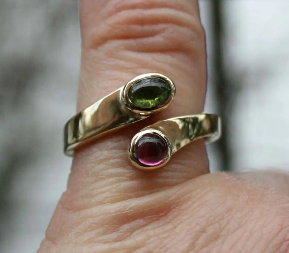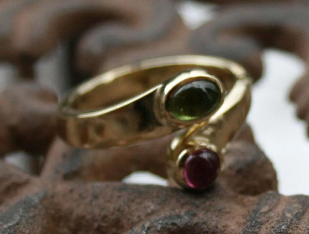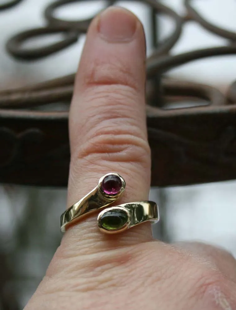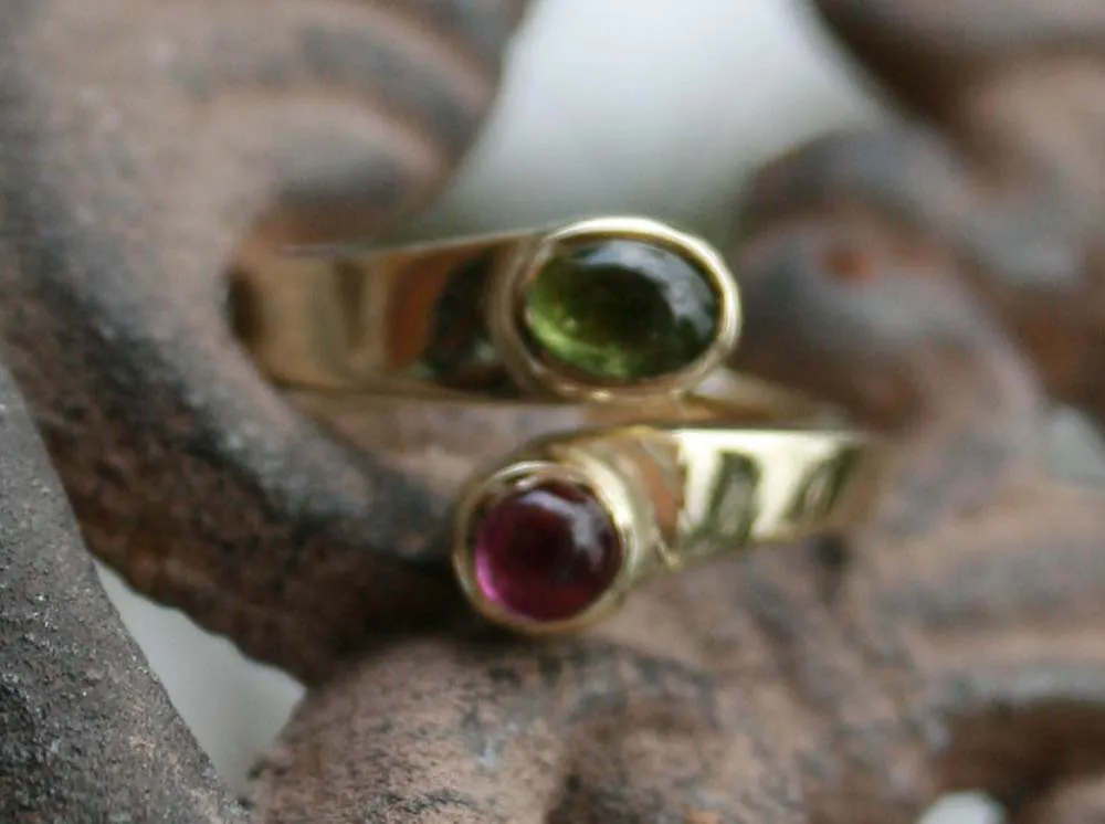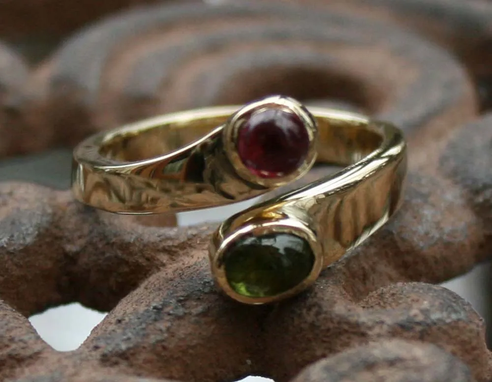 Wickelring Gelbgold mit Verdelith und Rubelith-Cabouchon