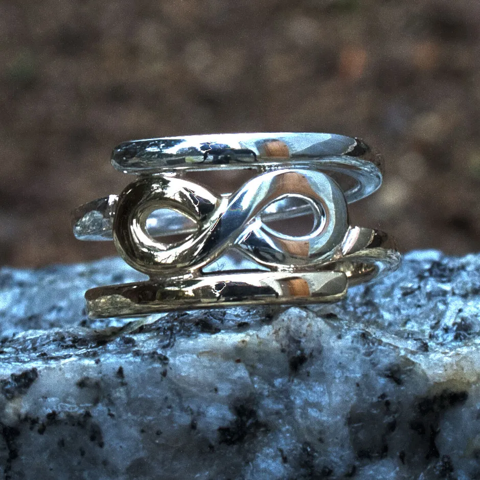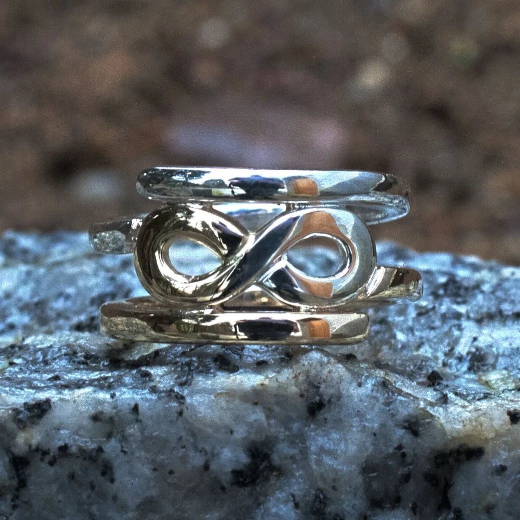zweifarbiger Ring aus Silber und Gold mit Unendlichkeitszeichen