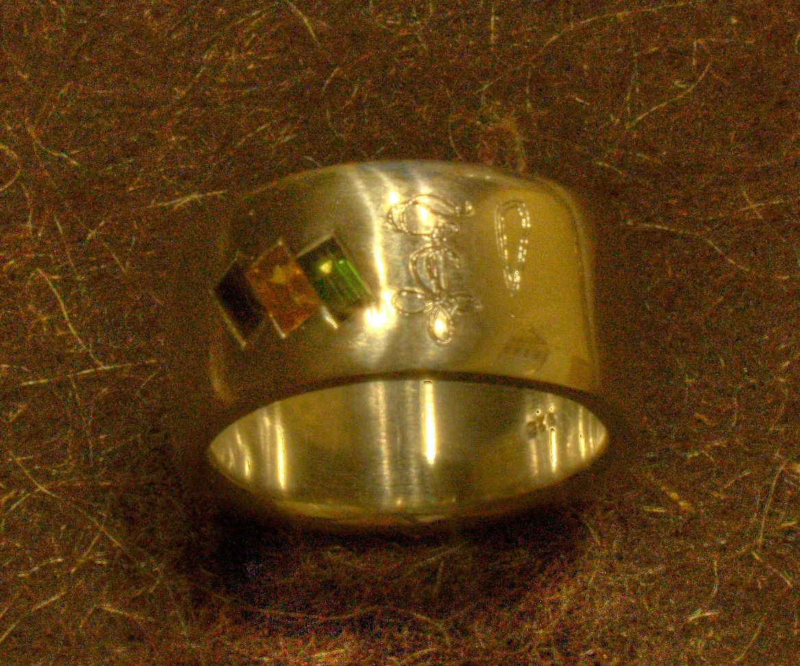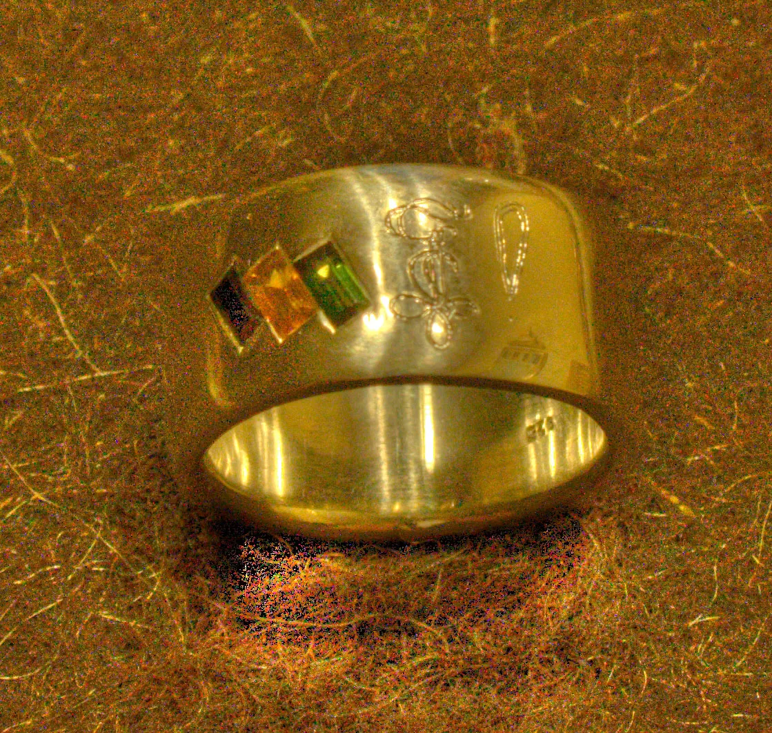 Silberring mit Onyx-,Citrin- und Turmalin-Baquette und Studentenverbindungs-Zeichen