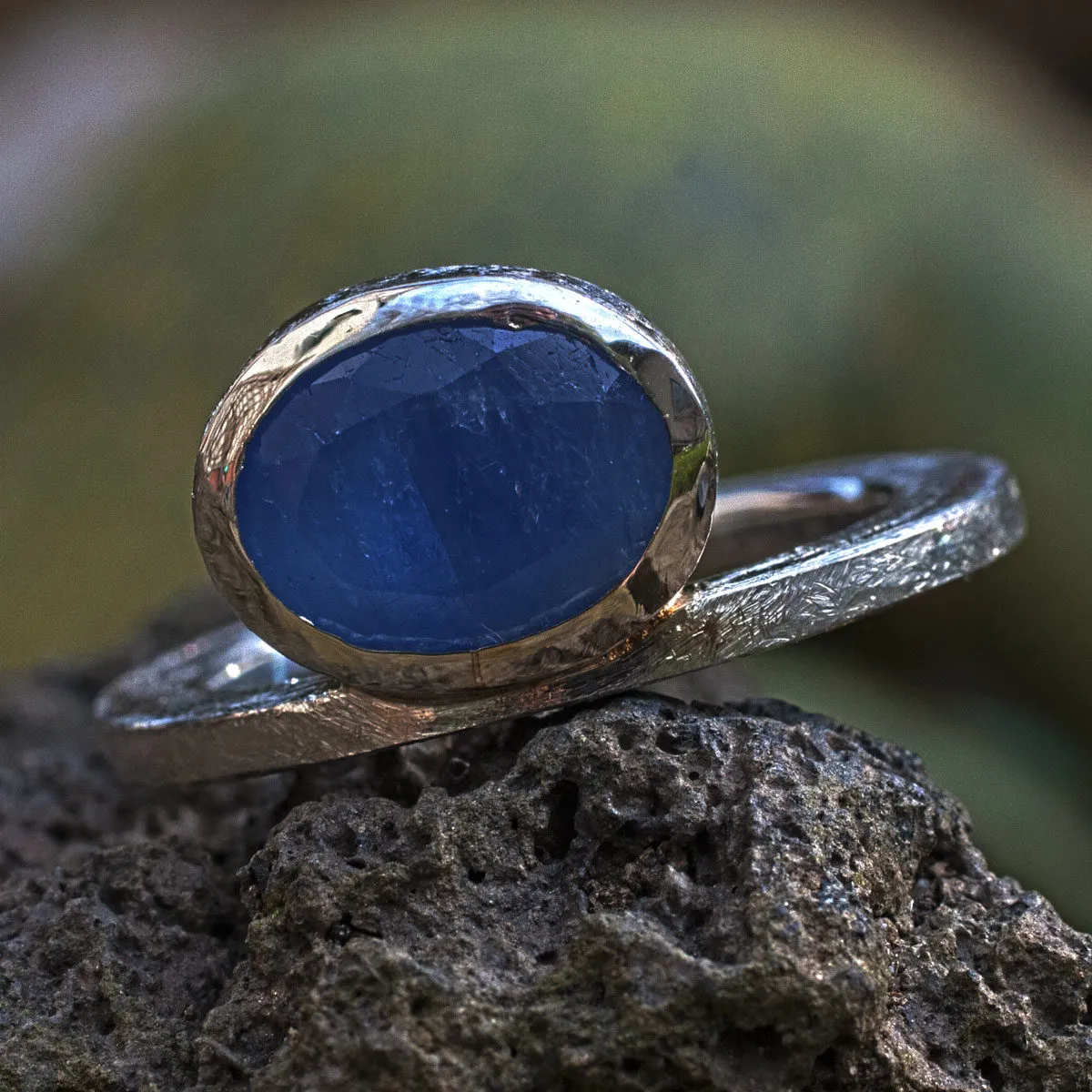 silberner Vorsteckring mit Saphir Solitär Ring mit Stein