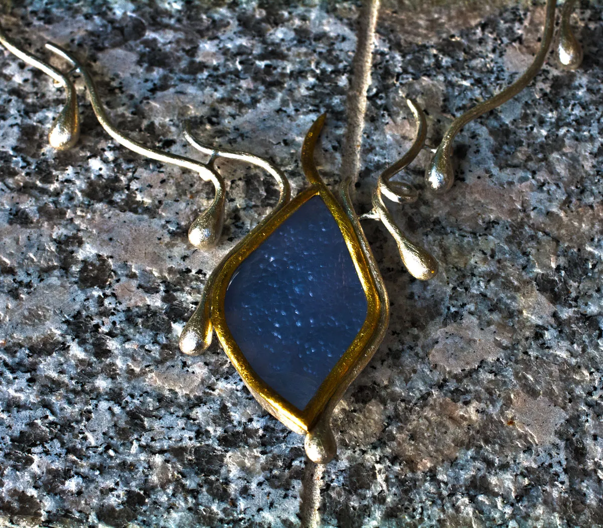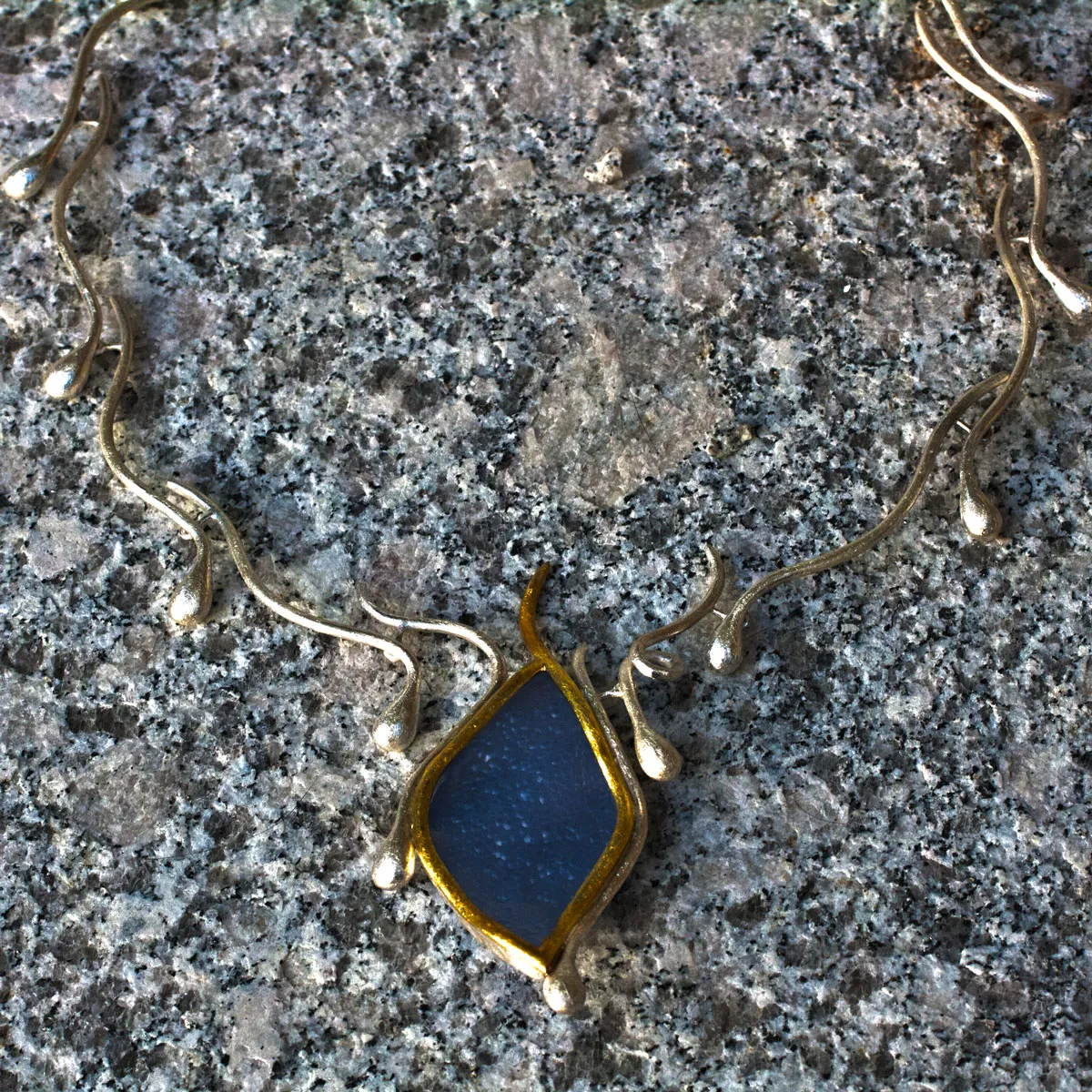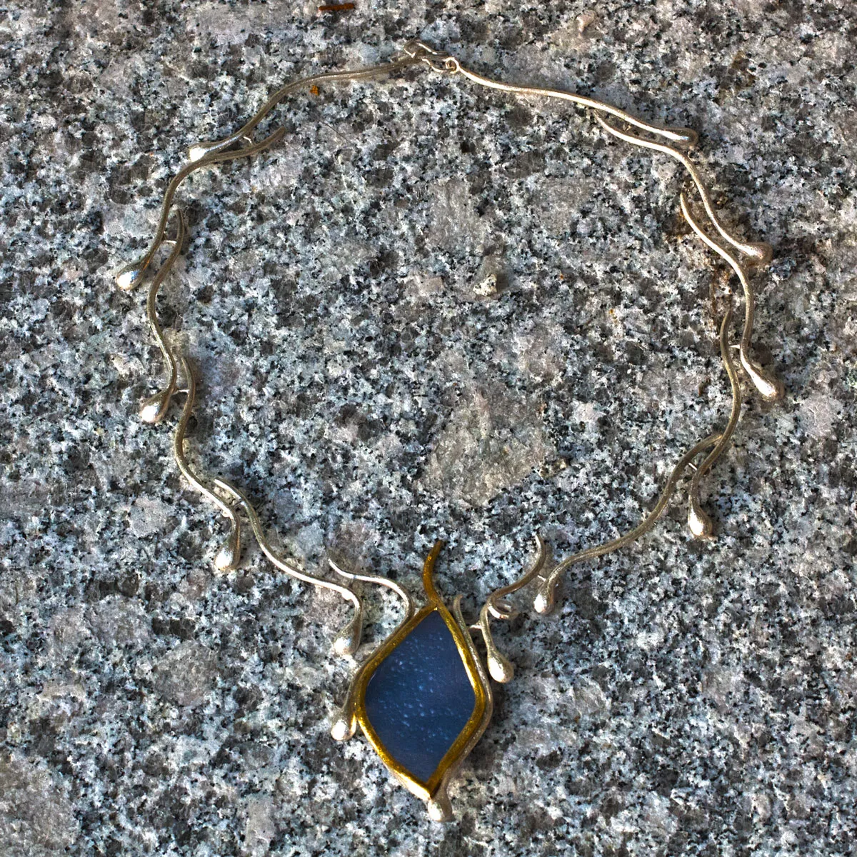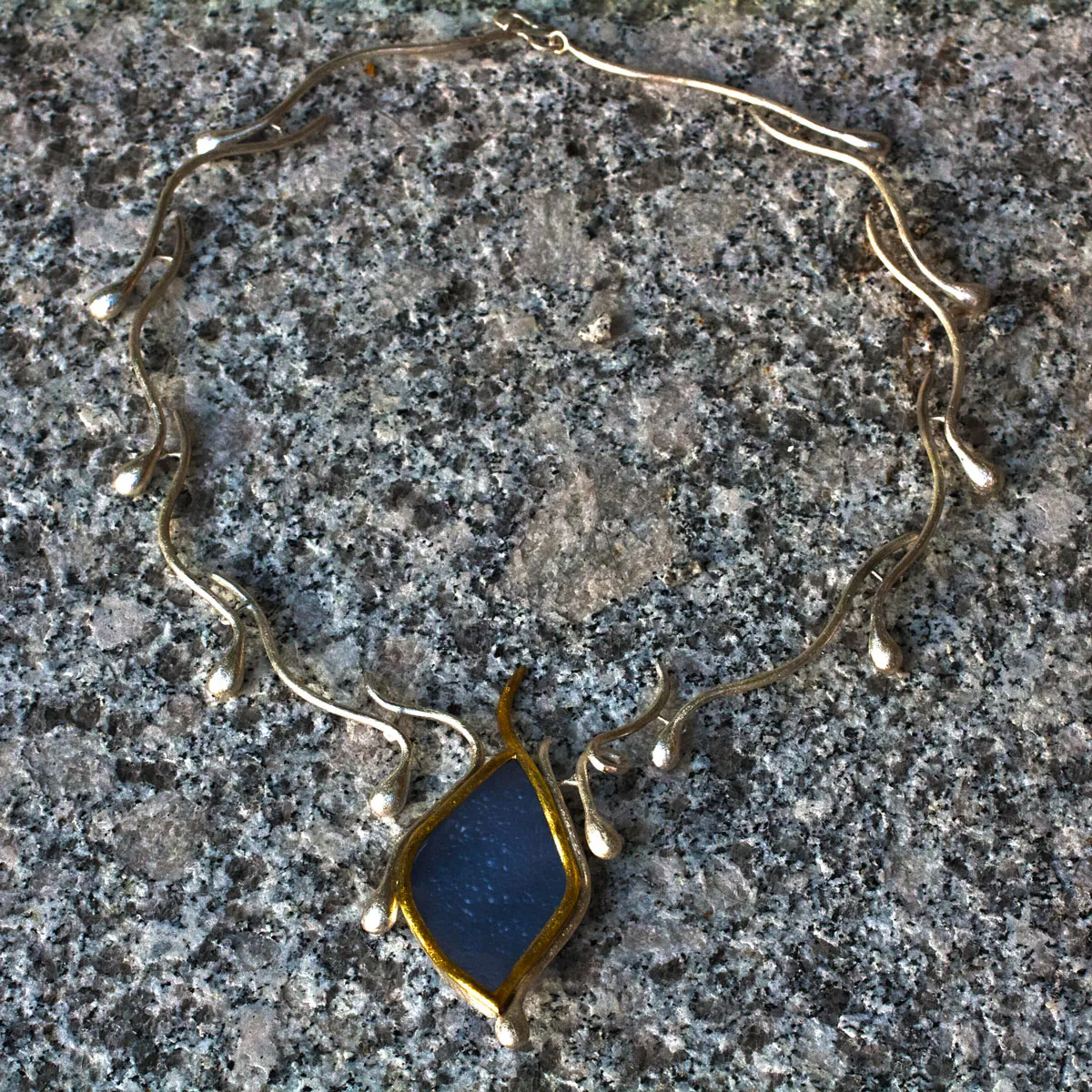 Collier aus Tropfen in Silber mit Chalzedon in Gelbgoldfassung