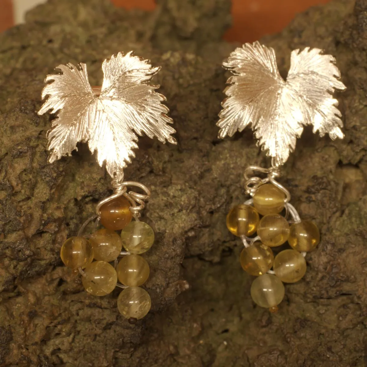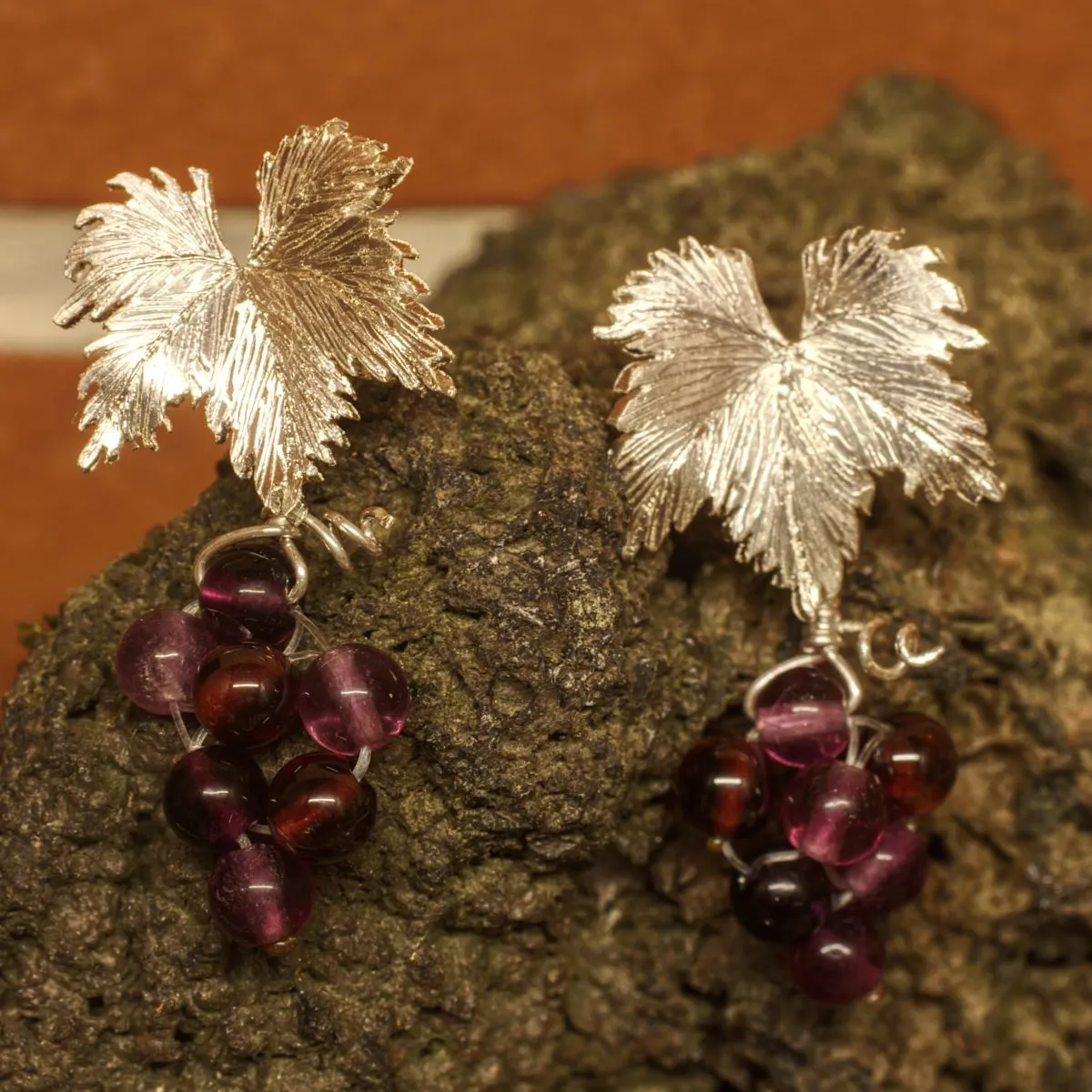 Ohrringe Weinblätter Silber mit roten und weißen Trauben zum einhängen