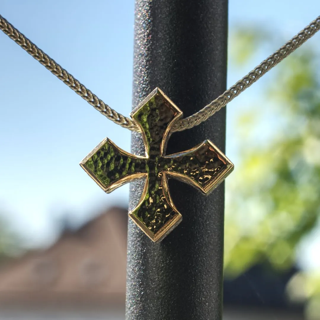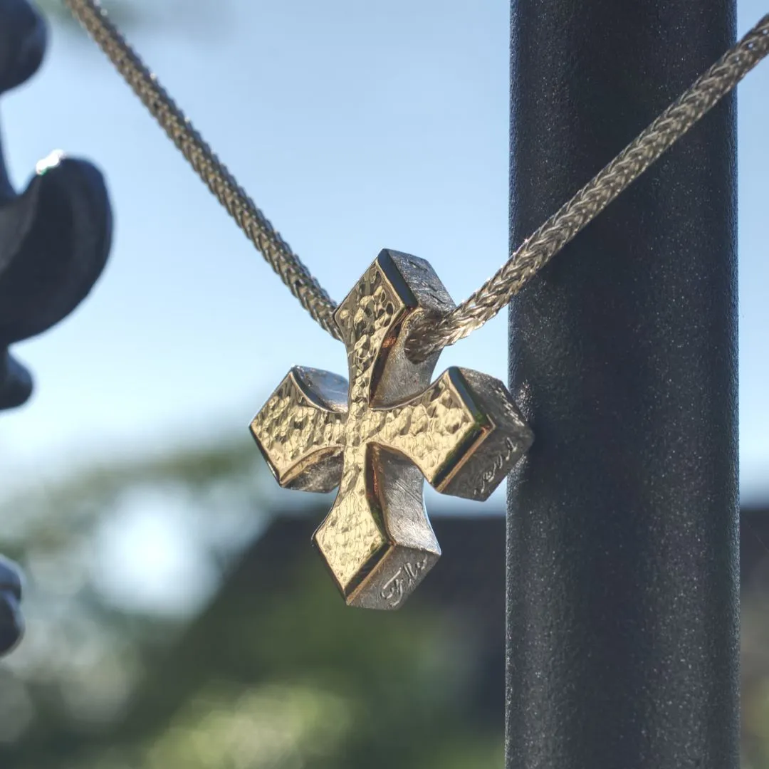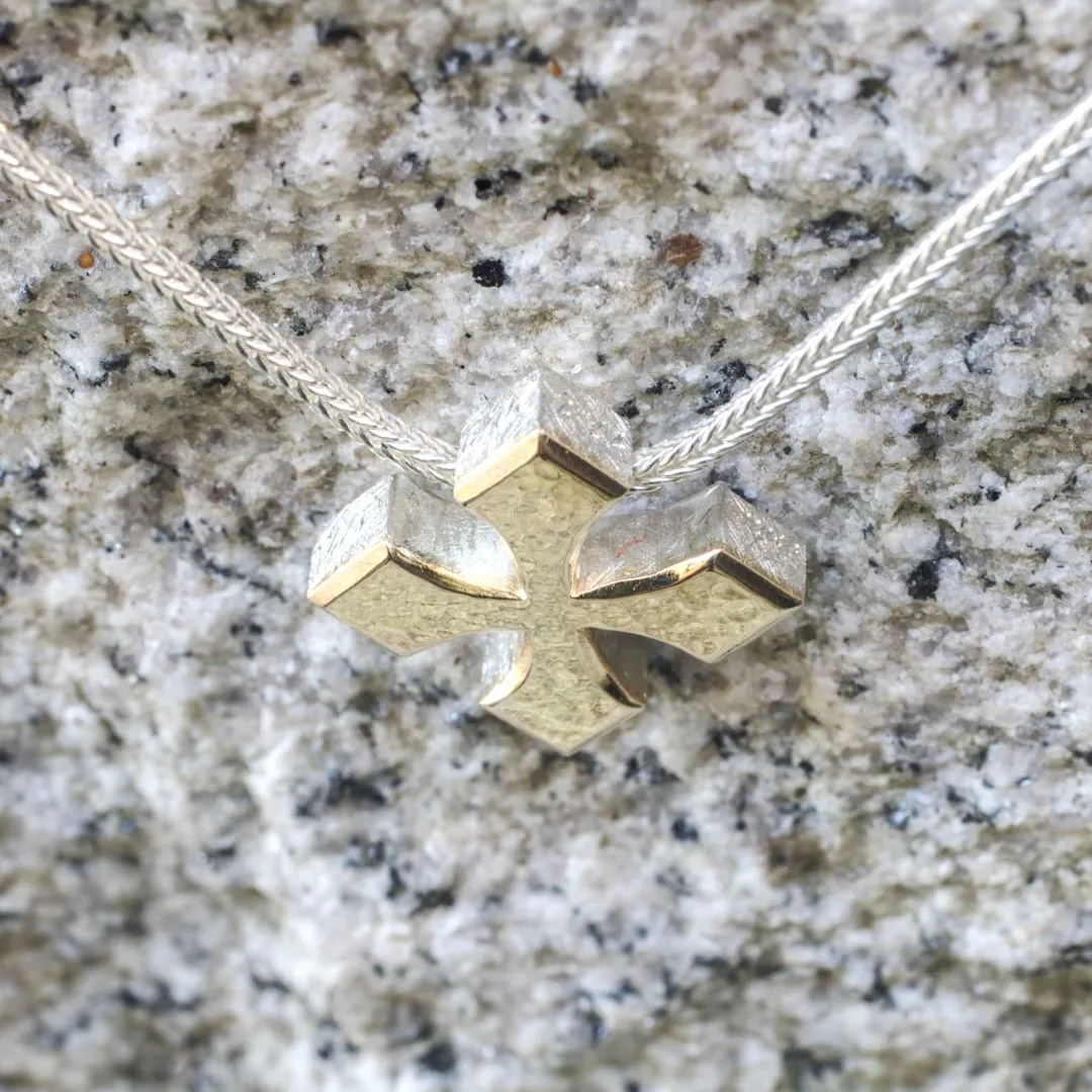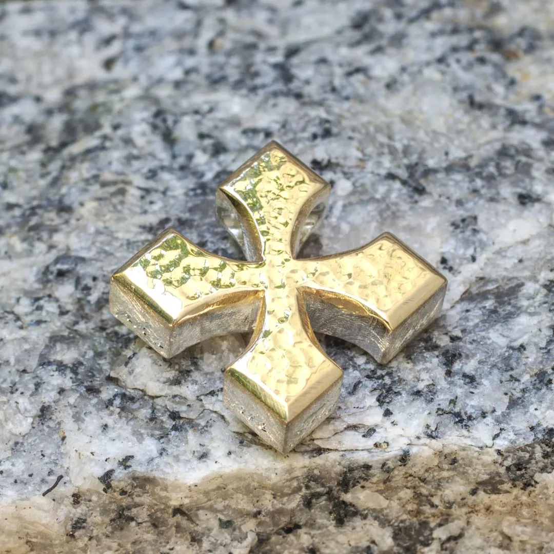 kreuzförmiger Anhänger aus Silber mit Goldplatte poliert mit Hammerschlag auf einer Seite