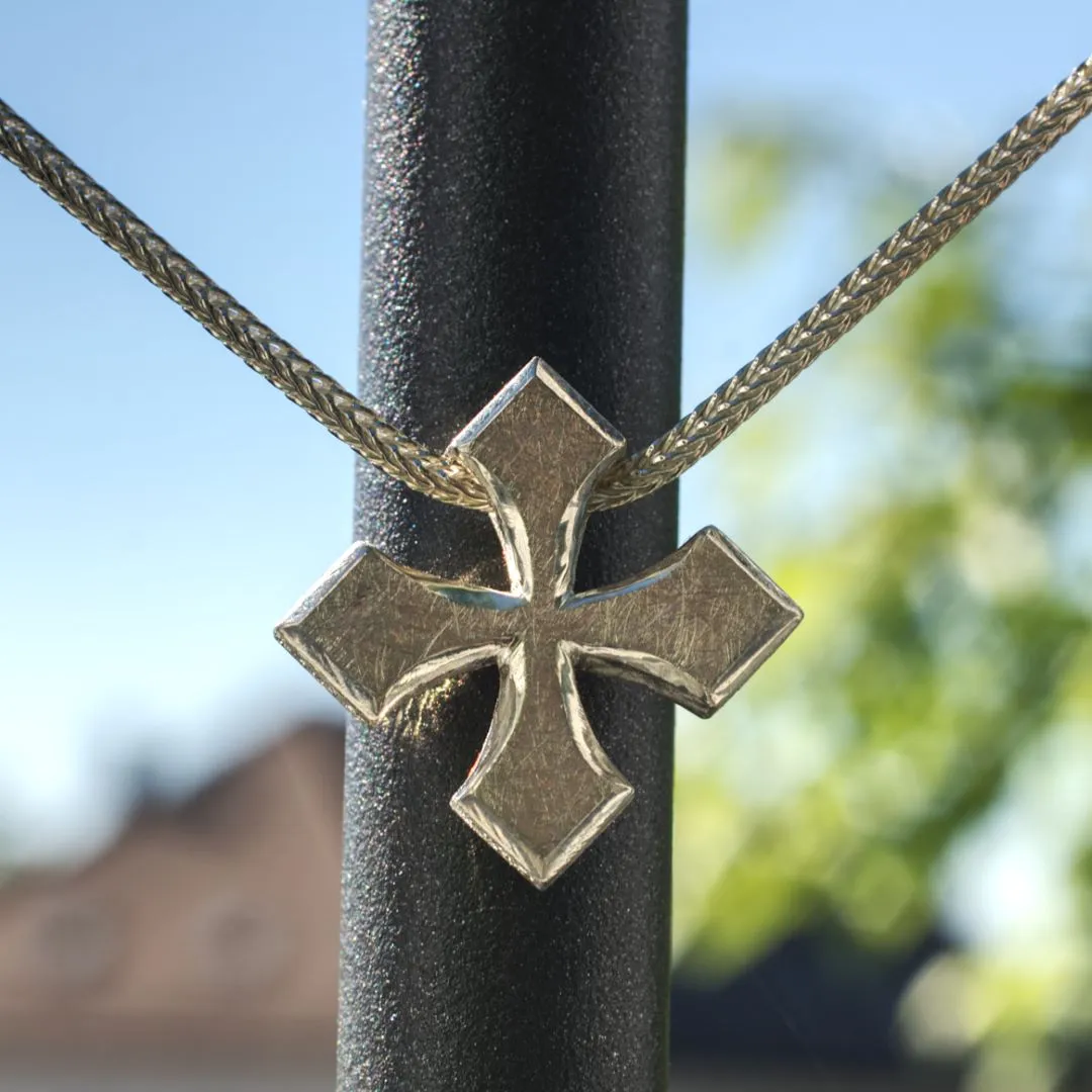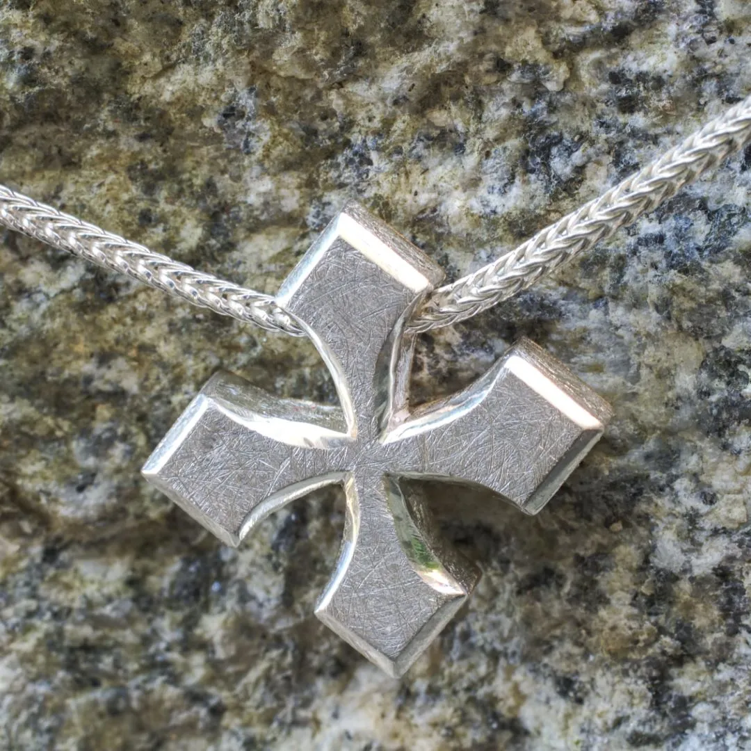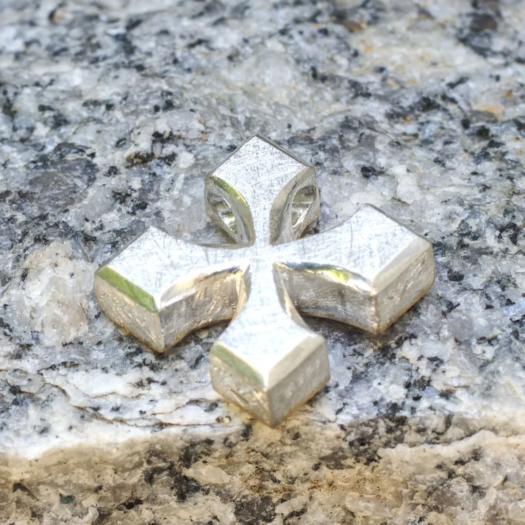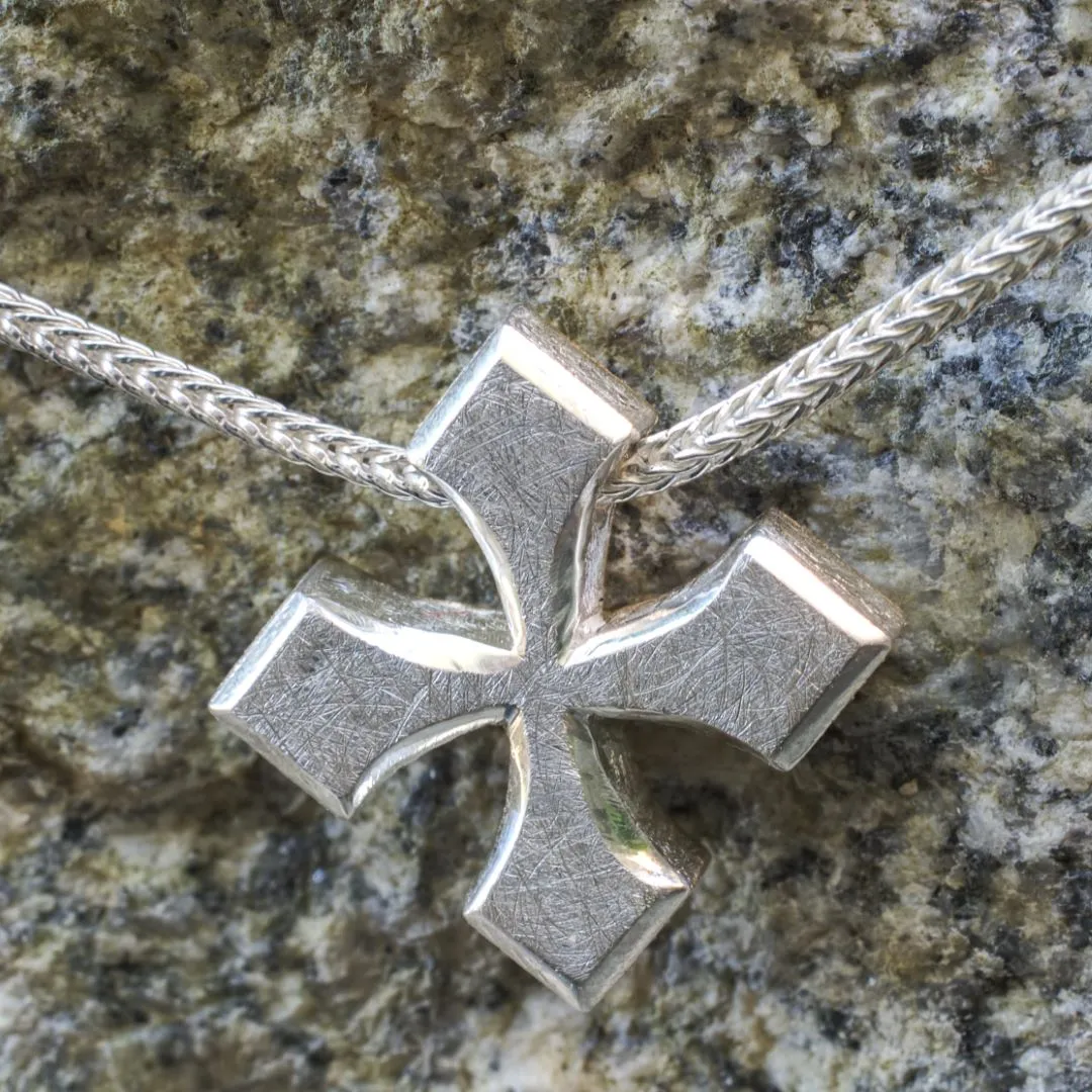 kreuzförmiger Anhänger aus Silber mit Goldplatte poliert mit Hammerschlag auf einer Seite